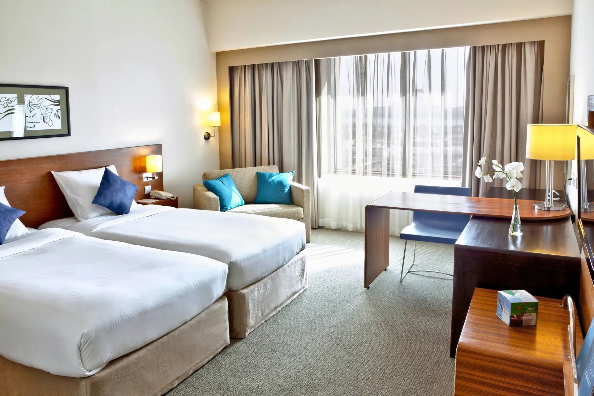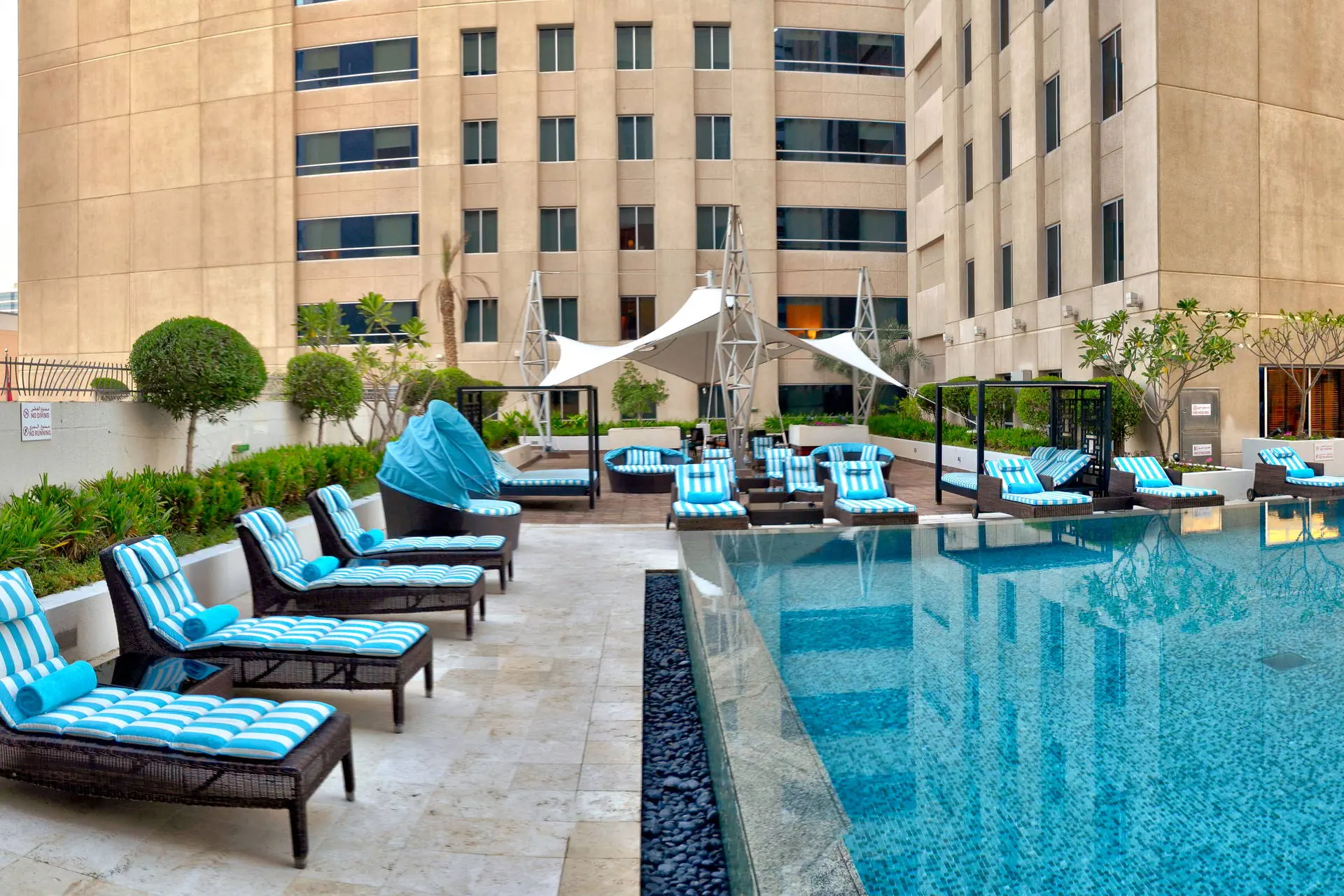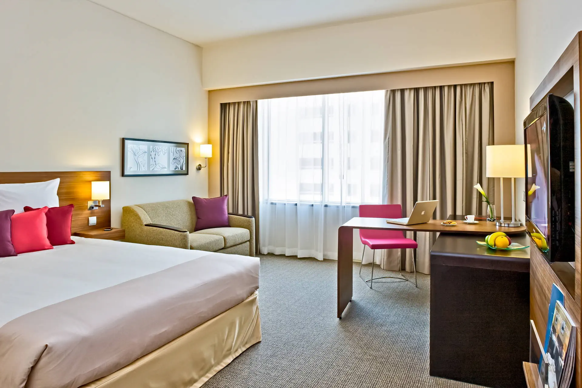 Położenie Hotel znajduje się w sercu starego Dubaju, w dzielnicy biznesowej Deira. Do lotniska Dubai International Airport jest około 5 km, a do lotniska Dubaj-Al Maktoum około 70 km. Blisko hotelu znajduje się Gold Souk, Muzeum Dubaju oraz centrum handlowe Deira City Center. W pobliżu hotelu znajduje się stacja metra. Plaża Przejazd na plażę Jumeirah Beach z niezapomnianym widokiem na Burj al Arab i kompleks wysp "The Palm" trwa ok. 1 godz. komunikacją miejską. Plaża Jumeirah Beach jest szeroka i piaszczysta. Serwis plażowy dodatkowo płatny (ok. 20-25 USD/os.).Bezpłatny bus hotelowy na plażę Al Mamzar Beach Park. Godziny i dni kursowania autobusów dostępne w recepcji hotelowej.Wstęp na plażę Al Mamzar Beach Park odpłatny 5 AED. Do dyspozycji gości Recepcja całodobowa, winda. 1 podgrzewany basen zewnętrzny, brodzik dla dzieci. Atrakcje dla dorosłych: centrum spa, centrum fitness. Restauracje: restauracja a la carte Bistro Domino (kuchnia francuska), restauracja Tala Semplice, kawiarnia Tala Cafe, bar Breeze przy basenie, bar Vertigo. Pokoje Hotel posiada 188 dwuosobowych pokoi Superior z możliwością jednej dostawki. Wszystkie pokoje są nowocześnie urządzone, klimatyzowane i wyposażone w łazienkę (wanna lub prysznic, WC, suszarka do włosów) telewizor z płaskim ekranem oraz sejf (bezpłatny) i mini bar (płatny dodatkowo). Wyżywienie Rodzaje wyżywienia i posiłki: Śniadania serwowane w formie bogatego bufetu. Możliwość dopłaty do obiadokolacji (HB) lub obiadów i kolacji (FB) – serwowane w formie bufetu lub a’la carte. Napoje do posiłków dodatkowo płatne. Pozostałe informacje: Napoje alkoholowe w hotelu sprzedawane są tylko osobom, które ukończyły 21 lat. Program sportowy i animacyjny Dla każdego: dobrze wyposażona siłownia, podgrzewany basen. Dla dzieci: brodzik, klub dla najmłodszych. Internet Bezpłatne Wi-Fi na terenie całego hotelu. Kategoria lokalna **** Naszym zdaniem Ten hotel należący do znanej sieci hotelowej Accor to doskonały wybór dla osób ceniących komfort oraz łatwy dostęp do pełnego atrakcji centrum Dubaju. Profesjonalny serwis oraz smaczna kuchnia będą dodatkowym atutem i sprawią, że Państwa wyjazd będzie udany! Strona www www.accorhotels.com/pl/hotel-6482-novotel-dubai-deira-city-centre/index.shtml