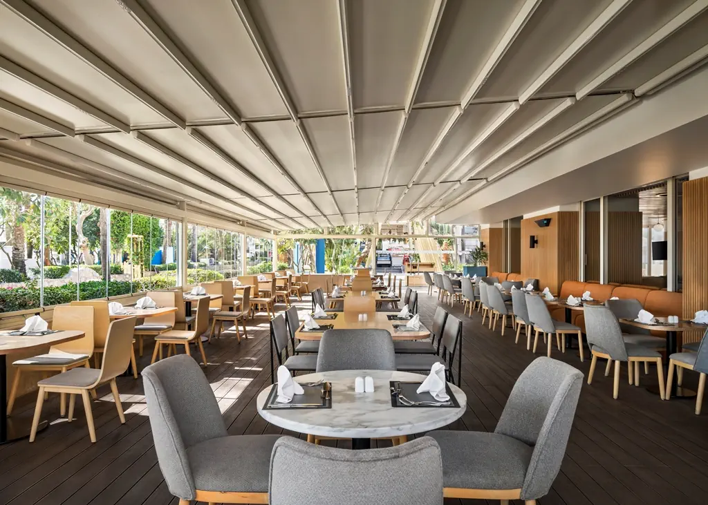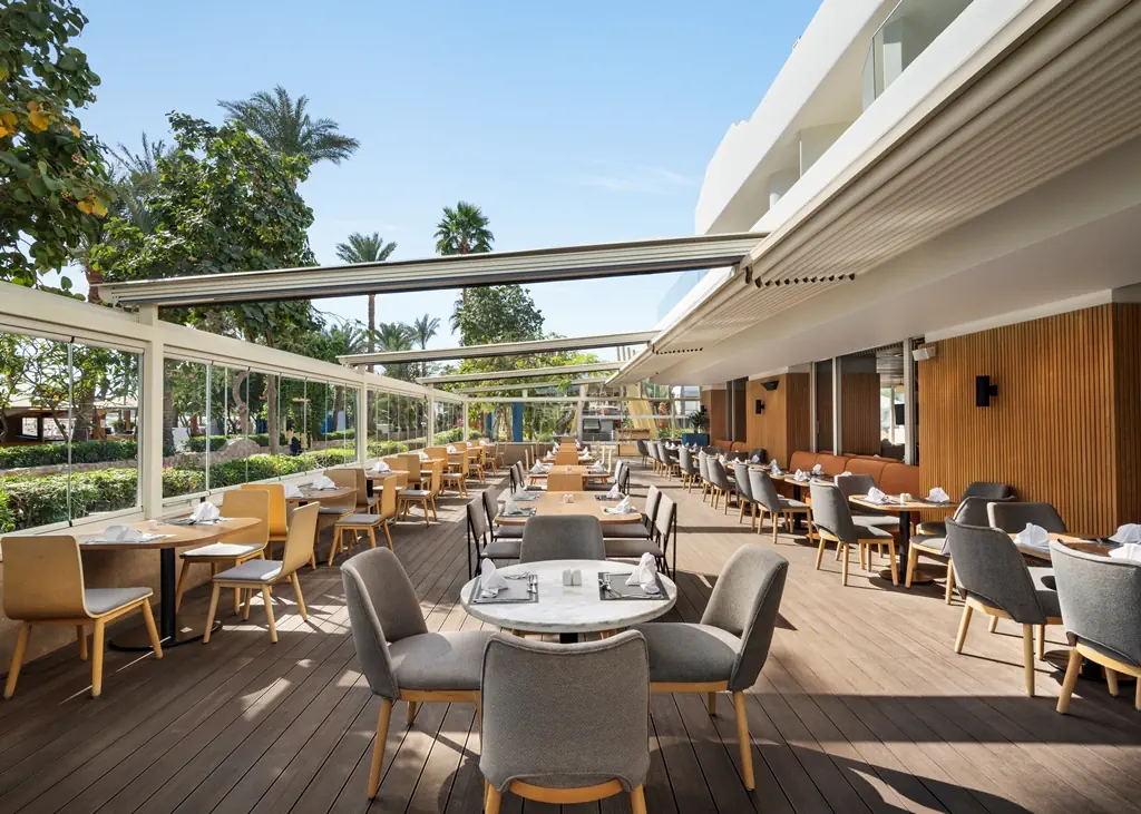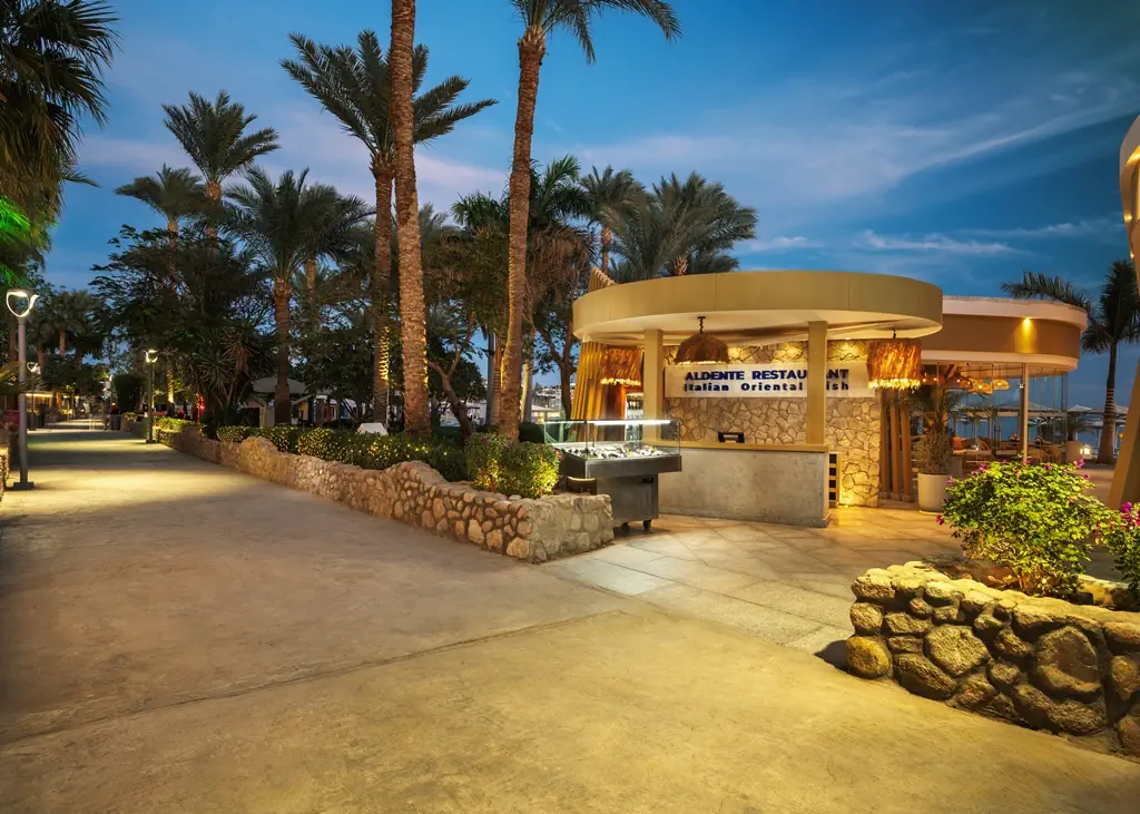 Śniadanie (06:30 - 10:30) - La Palma, stół szwedzki, Obiad (13:00 - 15:00) - La Palma, stół szwedzki, Kolacja (19:00 - 22:00) - La Palma, stół szwedzki, AL DENTE (12:30 - 23:00) (12:30 - 23:00), bez limitu, Kuchnia: Włoska, Egipska, owoce morza , Wymagana rezerwacja: Nie ¹⁾, Bubbles bar (09:00 - 23:00), Napoje: alkohole lokalne, napoje bezalkoholowe (09:00 - 23:00), napoje bezalkoholowe, alkohole lokalne, lody, pakiety dla nowożeńców, pakiety urodzinowe (na życzenie), room service ¹⁾ ¹⁾ - dodatkowo płatne