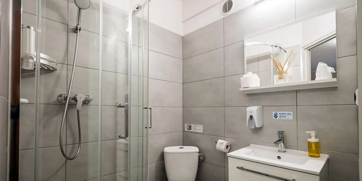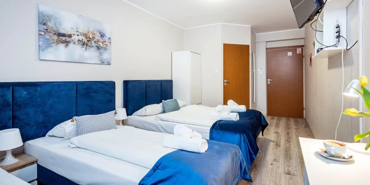 Komfortowy pokój wyposażony w: telewizor, telefon, bezpłatny internet bezprzewodowy oraz łazienkę z kabiną prysznicową.