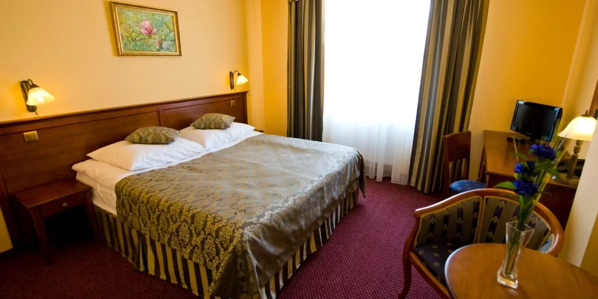 Komfortowy pokój wyposażony w łóżka z antyalergiczną pościelą, TV, minibar, telefon oraz Wi-Fi. W łazience dodatkowo suszarka do włosów, szlafroki i kapcie.