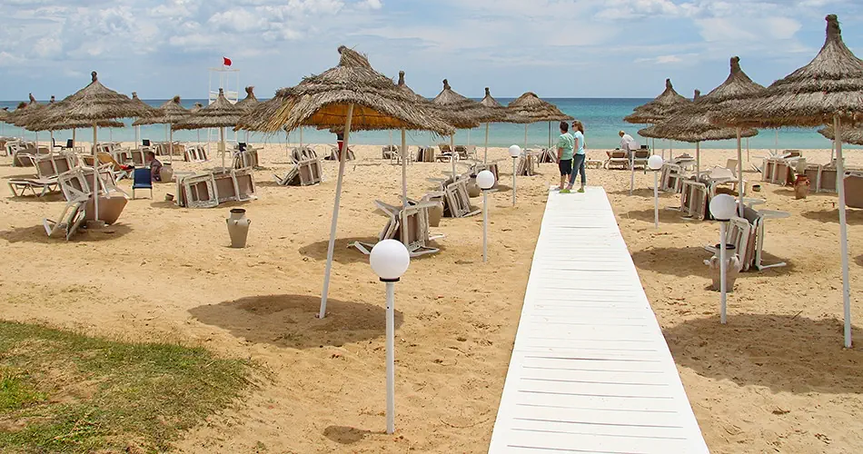 - Szeroka piaszczysta, bezpośrednio przy hotelu - Bar, prysznice i toaleta - Leżaki i parasole - bezpłatne - Ręczniki plażowe dostępne po wpłaceniu depozytu ok. 20 TND - Bar - bezpłatny ( czynny w wysokim sezonie)