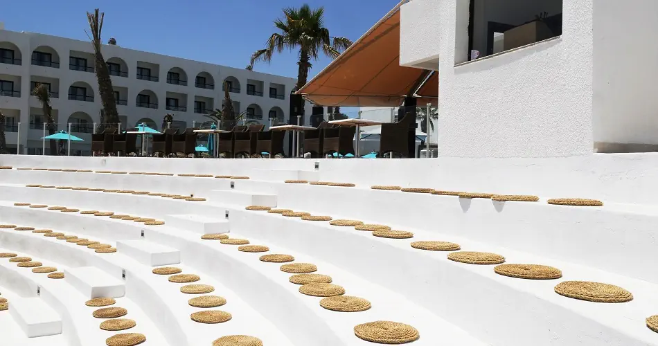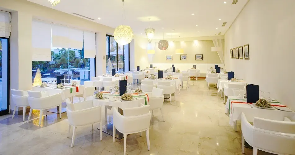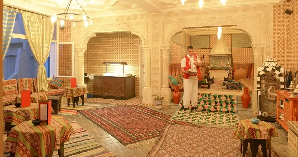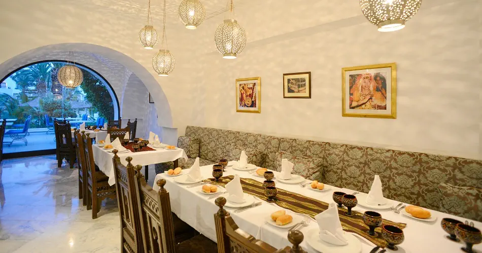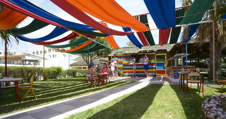 - Recepcja - 5 restauracje ( w tym a'la carte płatne), kilka barów - Kawiarna mauretańska (shisha i kawa turecka płatne) - Basen zewnętrzny dla dorosłych - Brodzik - Zjeżdżalnie - Sala konferencyjna - Kantor - Centrum welness (wszystkie zabiegi płatne) - Sklepy - Oficjalna kategoria hotelu 4*