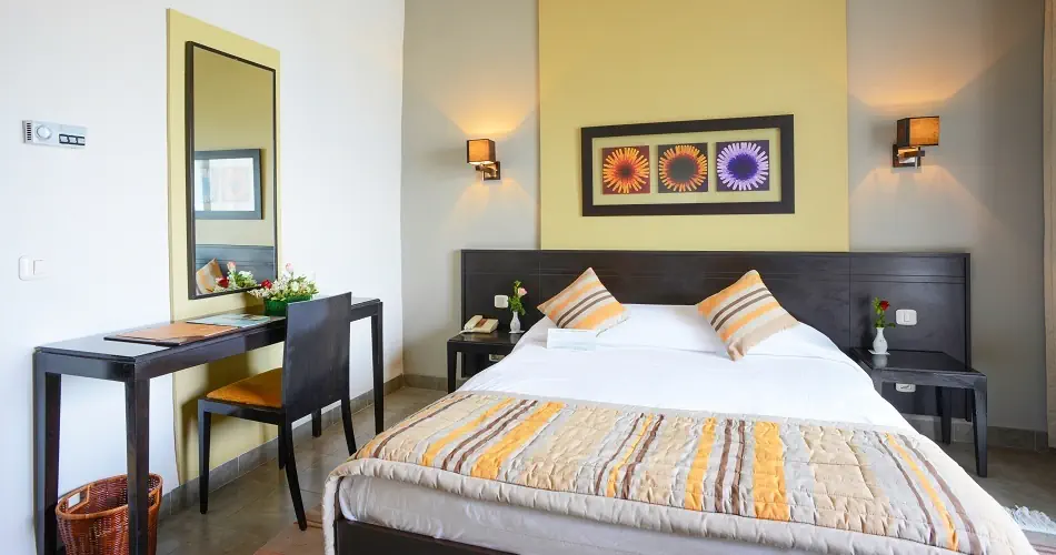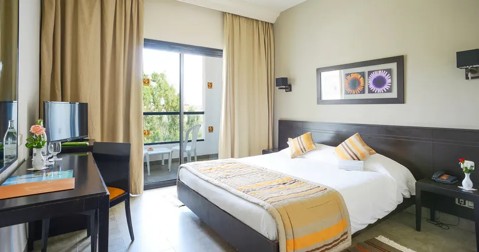 Pokój Standard: - Klimatyzacjad (15.06-15.09) - Łazienka z prysznicem lub wanną, WC - Suszarka do włosów - TV-Sat, telefon - Sejf - płatny (2 TND/ dzień) - Minilodówka (na zapytanie) - płatna ok. 7 TND/ dzień - Łóżeczko dla dzieci (w miarę dostępności) - bezpłatne - Balkon lub taras Pokój Family: - Wyposażenie jak w pokoju Standard - 2 sypialnie, 1 łazienka Pokój Connecting: - Wyposażenie jak w pokoju Standard - 2 połączone pokoje