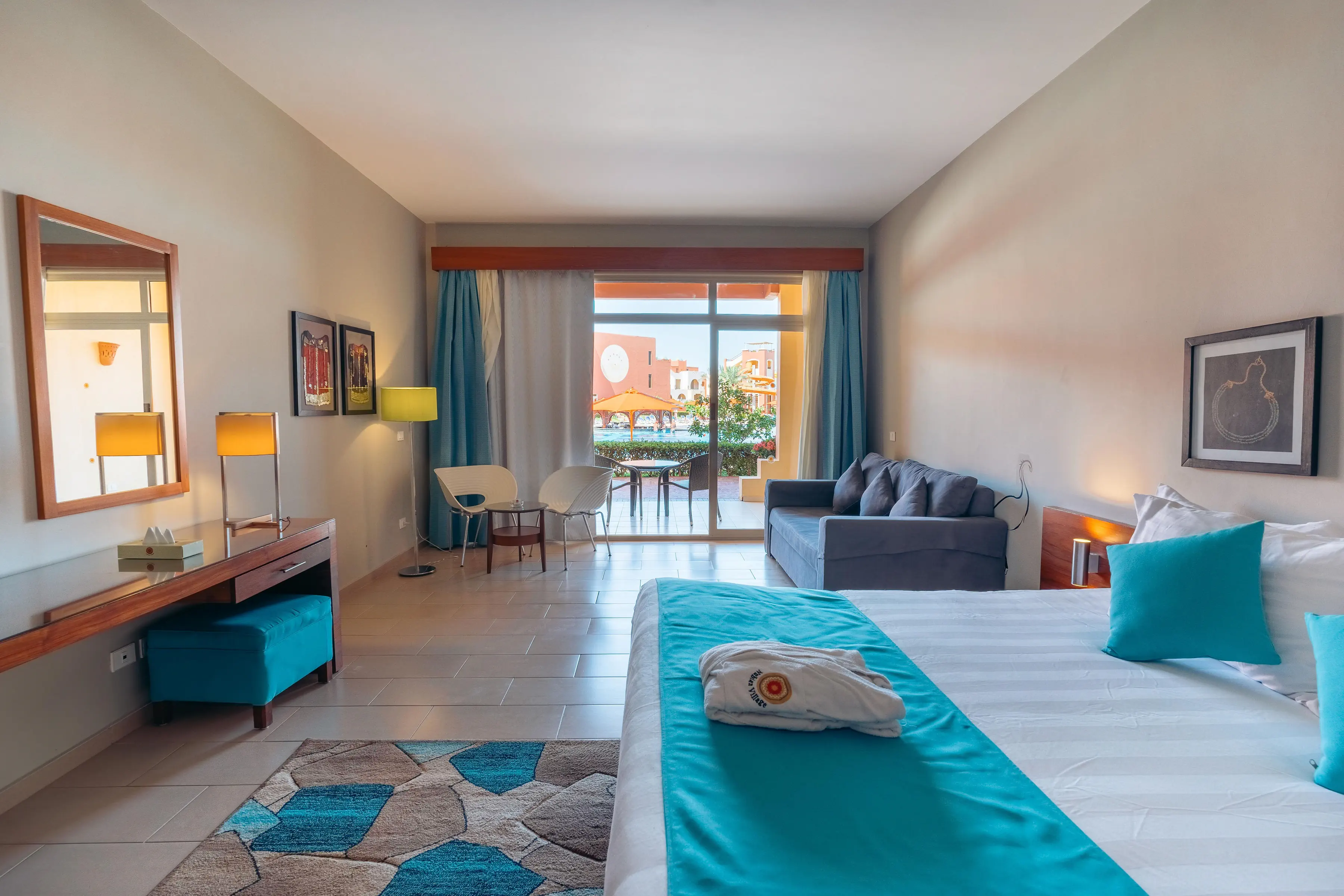 Dla max. 4 osób, Przestrzeń zewnętrzna: Balkon lub taras, Kanały telewizji: Polski, Angielski, Telefon w pokoju, wanna, prysznic, Powierzchnia pokoju: ok. 35 - 45 m2, Dostawka: sofa, Rodzaj podłogi: płytki, Sprzątanie codziennie, 1 sypialnia, Maksymalna liczba osób dorosłych: 3, Maksymalna liczba dzieci: 2, Widok na basen, Liczba łazienek: 1, Liczba toalet: 1, Zestaw do parzenia kawy i herbaty, Klimatyzacja: Klimatyzacja indywidualna