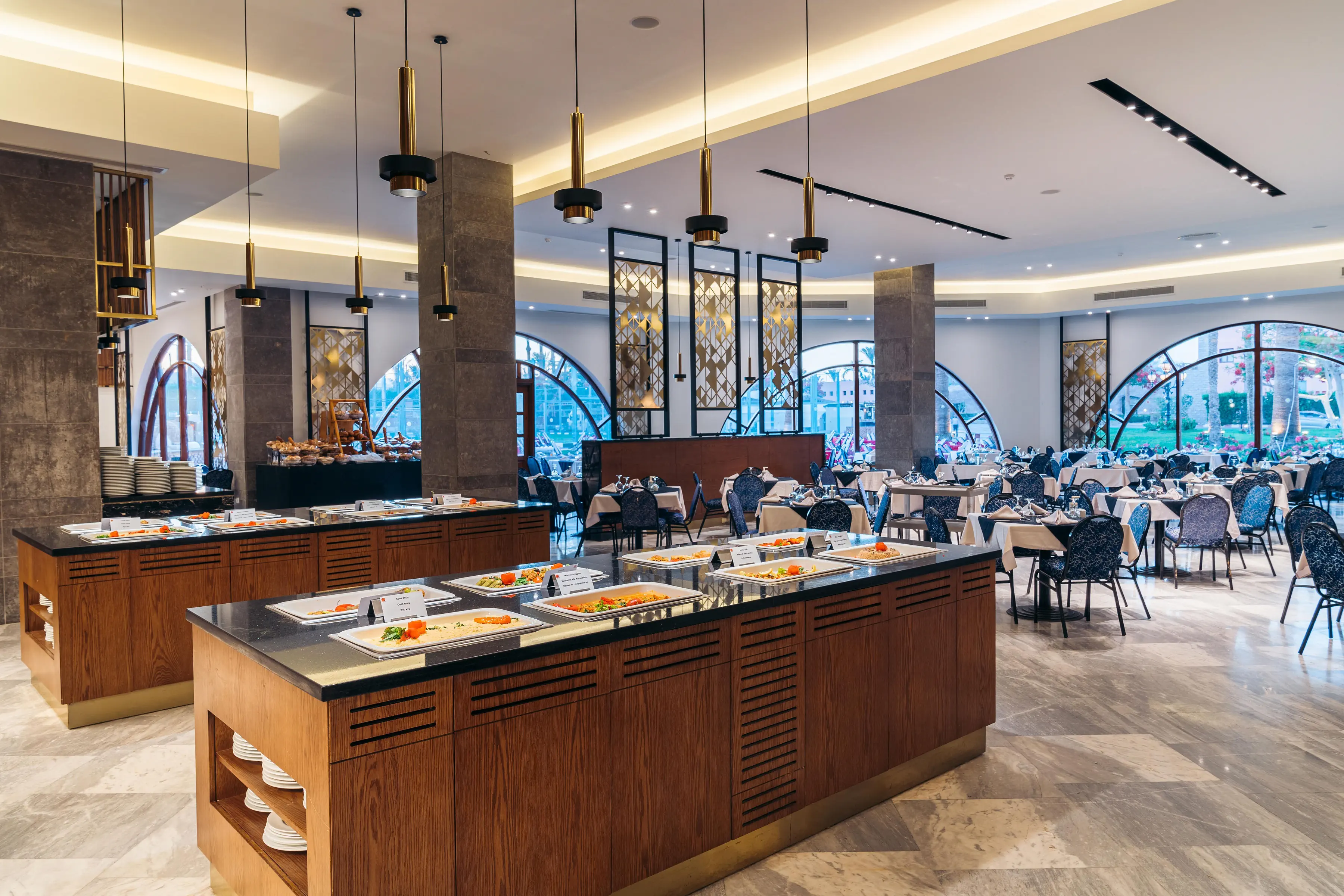 Śniadanie (07:00 - 10:00) - Main Resturant, stół szwedzki, Późne śniadanie (10:30 - 12:00) - Lobby Bar, określone menu, Obiad (12:30 - 14:30) - Main Resturant, stół szwedzki, Obiad (12:30 - 14:30) - Italian Resturant, stół szwedzki, Przekąski (15:00 - 17:00) - La Vista Beach Bar, określone menu, Kolacja (19:00 - 22:00) - Main Resturant, stół szwedzki, Kolacja (19:00 - 00:00) - Italian Resturant, a la carte, Późna kolacja (22:30 - 00:00) - Lobby Bar, Nieznany, (19:00 - 21:00) (19:00 - 21:00), bez limitu, Kuchnia: owoce morza , Wymagana rezerwacja: Tak ¹⁾, (19:00 - 21:00) (19:00 - 21:00), bez limitu, Kuchnia: Włoska, Wymagana rezerwacja: Tak, Lobby Bar (09:00 - 00:00), Napoje: alkohole lokalne, napoje bezalkoholowe (09:00 - 00:00), Pool Bar 1 (09:00 - 17:00), Napoje: alkohole lokalne, napoje bezalkoholowe (09:00 - 17:00), Pool Bar 2 (09:00 - 17:00), Napoje: alkohole lokalne, napoje bezalkoholowe (09:00 - 17:00), Beach Bar (09:00 - 17:00), Napoje: alkohole lokalne, napoje bezalkoholowe (09:00 - 17:00), Lobby Bar (24h), Napoje: alkohole lokalne, wybrane alkohole importowane, napoje bezalkoholowe (24h), napoje bezalkoholowe, alkohole lokalne, wybrane alkohole importowane ¹⁾, lody, pakiety urodzinowe (na życzenie), room service ¹⁾ ¹⁾ - dodatkowo płatne