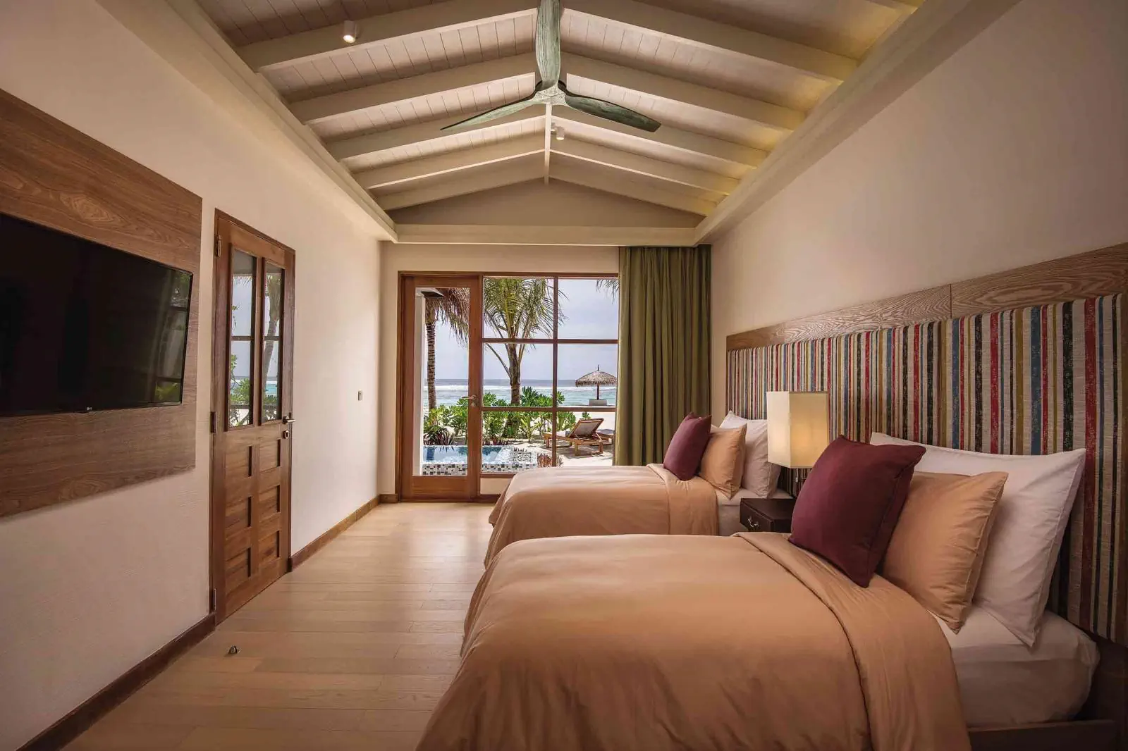 Dla max. 3 osób, Przestrzeń zewnętrzna: Taras, Kanały telewizji: Angielski, Telefon w pokoju, wanna i prysznic , Powierzchnia pokoju: ok. 101 m2, Dostawka: sofa, Rodzaj podłogi: drewno, Sprzątanie codziennie, 1 sypialnia, Maksymalna liczba osób dorosłych: 2, Maksymalna liczba dzieci: 1, Frontalny widok na plażę, Bezpośredni dostęp do plaży, Prywatny basen, Liczba łazienek: 1, Liczba toalet: 1, Zestaw do parzenia kawy i herbaty, Klimatyzacja: Klimatyzacja indywidualna