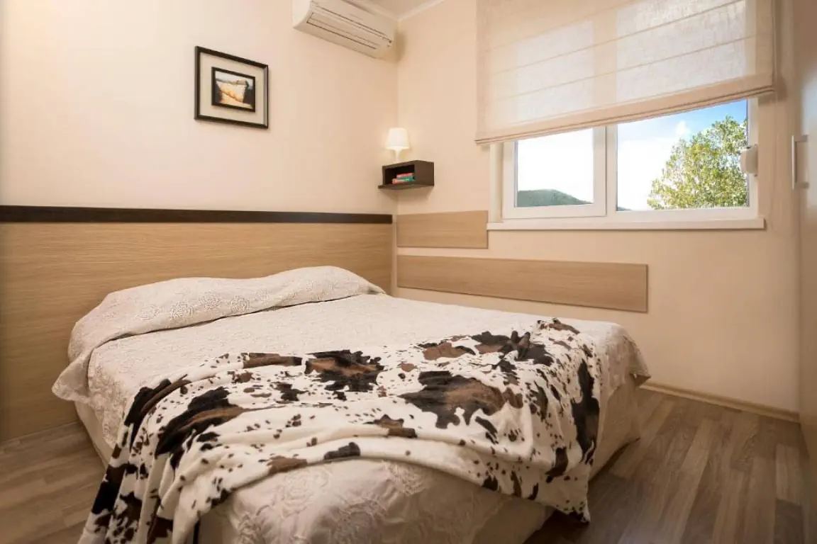 Dla max. 6 osób, Przestrzeń zewnętrzna: Balkon lub taras, Aneks kuchenny, prysznic, Powierzchnia pokoju: ok. 85 - 90 m2, Dostawka: łóżko standardowe, Rodzaj podłogi: laminat, Sprzątanie raz na tydzień, Salon, część jadalniana, 2 sypialnie, Maksymalna liczba osób dorosłych: 5, Maksymalna liczba dzieci: 5, Widok na góry, Liczba łazienek: 1, Liczba toalet: 1, Kuchenka mikrofalowa, Klimatyzacja: Klimatyzacja indywidualna