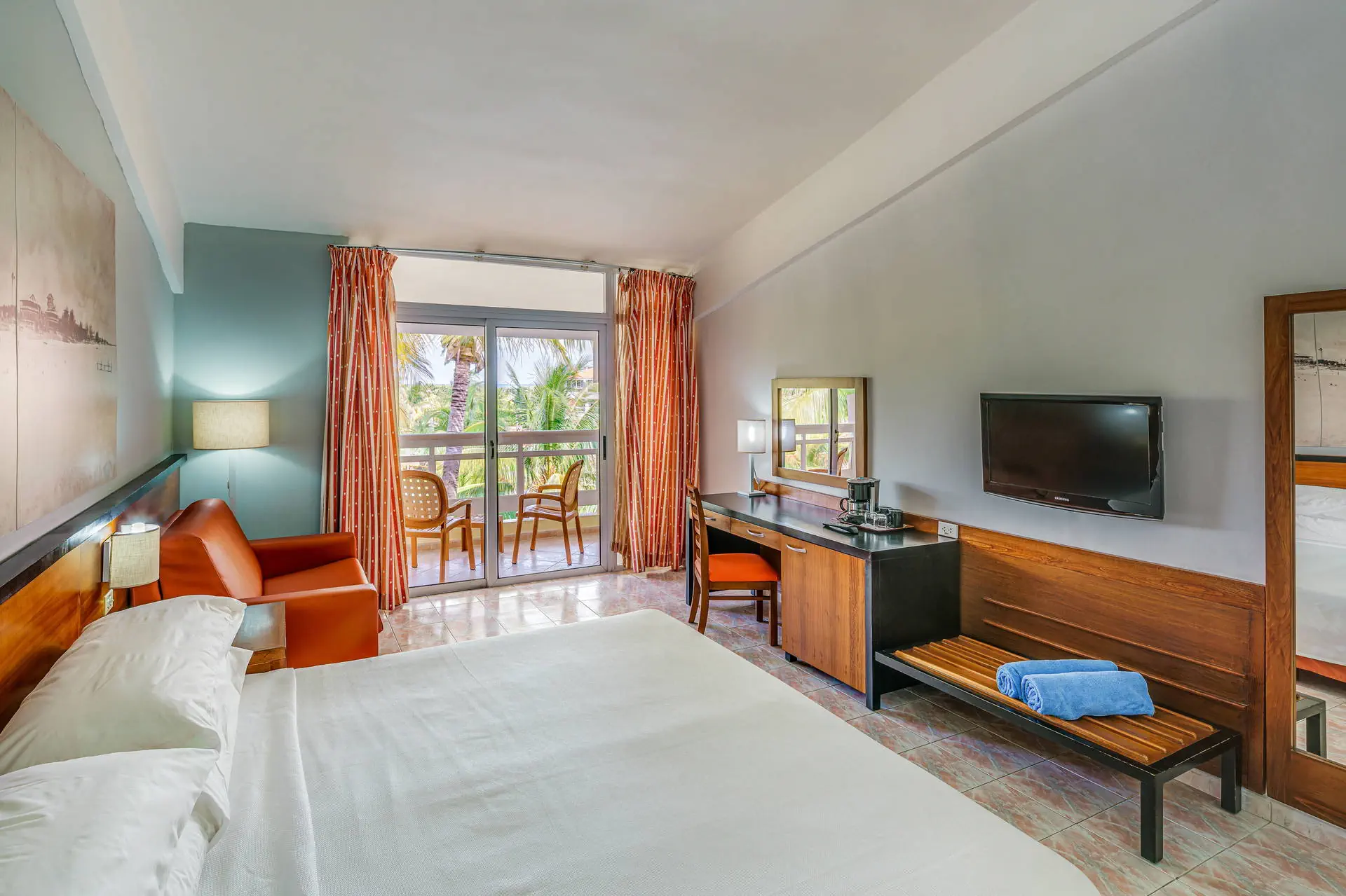Do dyspozycji gości Recepcja dostępna dla Gości hotelu. 3 duże baseny, brodzik dla dzieci, hotel zapewnia ręczniki basenowe, leżaki i parasole. Atrakcje dla dzieci: plac zabaw, mini klub. Restauracje: 2 restauracje bufetowe, 4 restauracje a’la carte, 8 barów (w tym jeden na plaży). Pozostałe informacje: Goście hotelu Occidental Arenas Blancas mogą korzystać z infrastruktury hotelu Barcelo Solmar (z wyjątkiem Restauracji Buffet), za dodatkową opłatą sala konferencyjna, kantor (w bliskiej odległości od hotelu), parking, sklepy, pralnia, przechowalnia bagażu, salon piękności. Internet Internet bezpłatny. Kategoria lokalna **** Naszym zdaniem Duża wioska wakacyjna z bogatą infrastrukturą, która ucieszy i Małych iDużych. Do tego dobry serwis i przestronne pokoje. Polecamy wszystkim tym,którzy lubią odpoczywać w miejscach tętniących życiem. Plaża Plaża tuż przy hotelu (przy plaży Playa Azul). Bezpłatne parasole i leżaki. Pokoje W hotelu znajduje się 358 pokoi. Wszystkie przestronne, urządzone w karaibskim stylu, klimatyzowane, z łazienką (wc, wanna i/lub prysznic, suszarka do włosów), z telefonem, TV-sat, minibarem (możliwa opłata), sejfem, deską i żelazkiem do prasowania oraz z balkonem lub tarasem. Pokoje dla osób niepełnosprawnych - na potwierdzenie. Położenie Do lotniska w Varadero jest ok. 28 km. Obiekt położony jest ok. 1 km od centrum kurortu Varadero. Najbliższe pole golfowe znajduje się w odległości ok. 4 km. Hotel otoczony jest ogromnym tropikalnym ogrodem. Program sportowy i animacyjny Dla każdego: dzienne i wieczorne animacje, korty tenisowe, boisko multisportowe, canoe, kajaki, rowery wodne, windsurfing, pokój gier, siłownia, sauna (w hotelu Barcelo Solymar). Strona www www.barcelo.com Wyżywienie Rodzaje wyżywienia i posiłki: All Inclusive w godzinach 07:00 - 02:00. Śniadania, obiady i obiadokolacje w formie bufetu. Lokalne napoje alkoholowe i bezalkoholowe oraz przekąski w ciągu dnia. Restauracje: Możliwość skorzystania z restauracji a’la carte (włoska, kubańska) 2 razy w ciągu pobytu, za wcześniejszą rezerwacją. Pozostałe informacje: Hotel zastrzega sobie prawo do zamknięcia niektórych restauracji i/lub barów w przypadku zbyt małej liczby Gości.