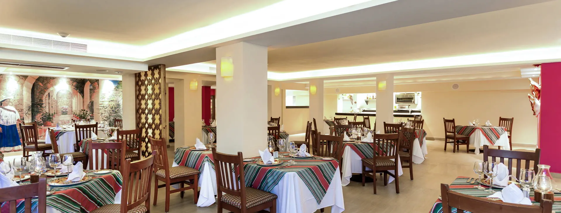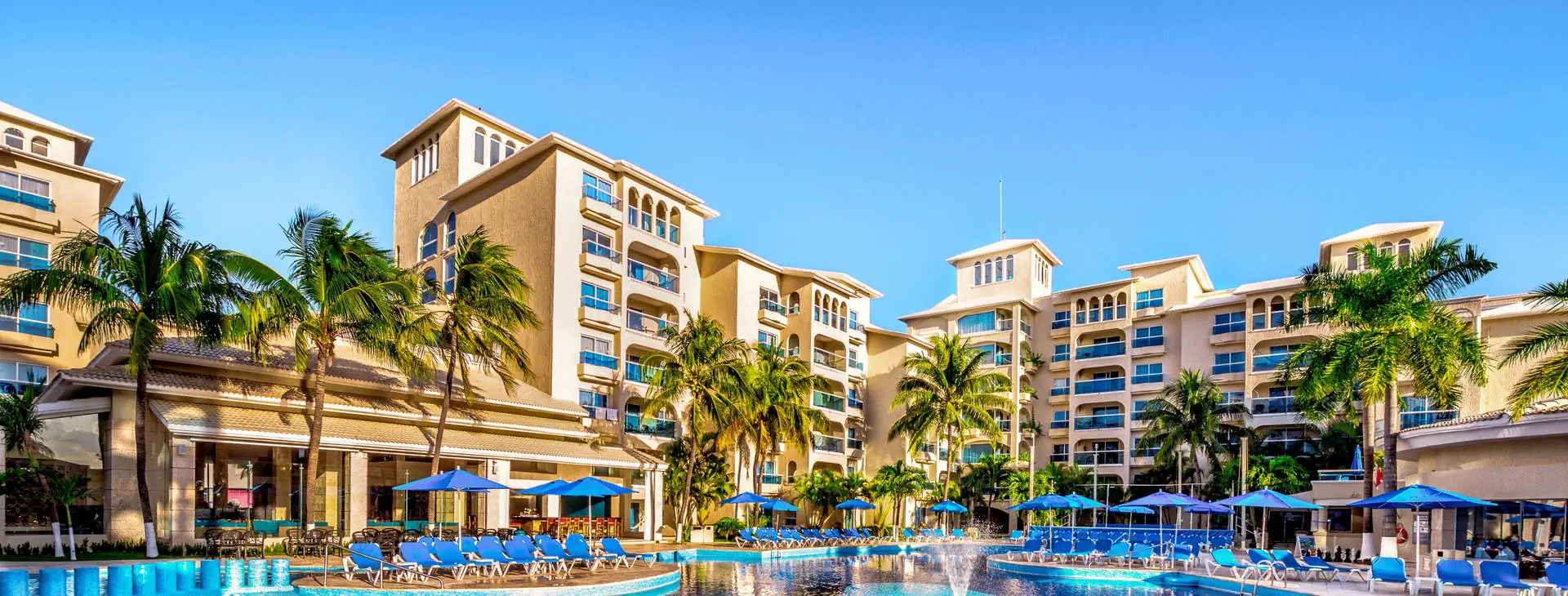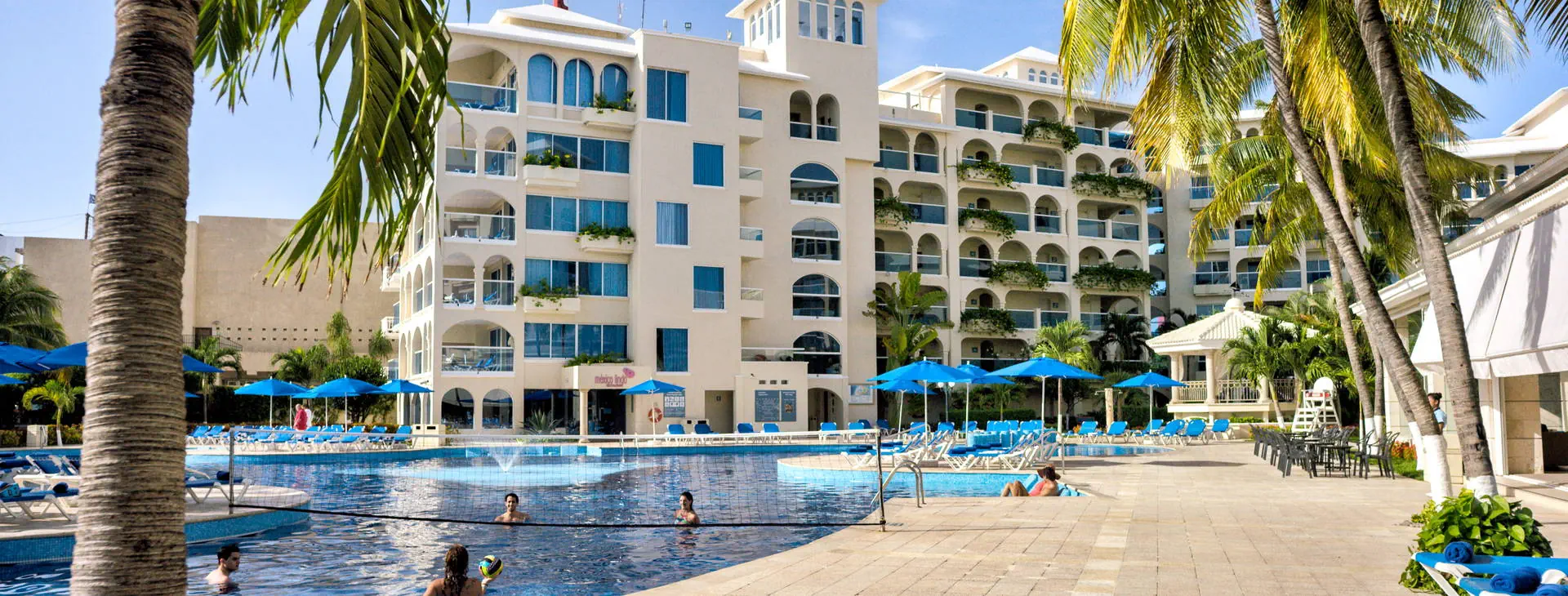 Położenie: Hotel położony w odległości ok. 5 km od centrum Cancun. Do portu lotniczego w Cancun ok. 20 km. Najbliższe rozrywki (centra sportów wodnych, centra handlowe, restauracje i bary) w odległości 2-5 km. Plaża: Obirkt zlokalizowany przy zatokowej, piaszczystej plaży - Playa Linda, łagodne zejście do wody. Klienci mogą się kąpać w morzu tylko na wyznaczonym kąpielisku (ze względu na bliskie sąsiedztwo niewielkiej przystani). Hotel zapewnia ręczniki plażowe (depozyt ok. 10USD), leżaki i parasole na plaży - gratis. Do dyspozycji gości: Recepcja, lobby, windy, 4 restauracje, 3 bary, taras słoneczny z leżakami i parasolami, basen o nieregularnym kształcie, brodzik dla dzieci (w basenach słodka woda), mini klub, opiekunka (płatna), butik, sklep z pamiątkami, pralnia (płatna), wymiana walut, wypożyczalnia samochodów, parking. Pokoje: W hotelu znajduje się 358 przestronnych pokoi urządzonych w śródziemnomorskim stylu. Pokoje standardowe - (pow.ok. 33 m2) - dla max. 4 osób (przy czym w pokoju mogą znajdować się tylko 2 łóżka typu queen size), klimatyzowane, z łazienką (prysznic, suszarka do włosów, kosmetyki kąpielowe), TV-sat, odtwarzaczem DVD, telefonem, sejfem (bezpłatny), codziennie uzupełnianym minibarem (napoje bezalkoholowe, woda, piwo), zestawem do parzenia kawy, żelazkiem oraz deską do prasowania i balkonem francuskim. Istnieje możliwość dopłaty do pokoju z balkonem lub tarasem. Łóżeczko dla dziecka do 2 lat gratis (na potwierdzenie). Wyżywienie: All Inclusive: śniadania, lunch i obiadokolacje w restauracji głównej - w formie bufetu. 3 restauracje a’la carte (wymagana wcześniejsza rezerwacja): hiszpańska, włoska, międzynarodowa. W ciągu dnia serwowane przekąski. Nieograniczona ilość lokalnych napoi alkoholowych i bezalkoholowych serwowanych w godzinach i miejscach wyznaczonych przez hotel. Program sportowy i animacyjny: Dzienne i wieczorne animacje, muzyka na żywo, pokazy. Bezpłatnie: siłownia, siatkówka plażowa, niemotorowe sporty wodne na plaży (kajaki, snorkeling, water polo, windsurfing), wprowadzająca lekcja nurkowania w basenie (10 min). Zabiegi na twarz i ciało w hotelowym Spa - płatne dodatkowo. Internet: Na terenie całego hotelu internet Wi-Fi - płatny (ok. 14 USD/dzień). Kategoria lokalna: **** Strona www: