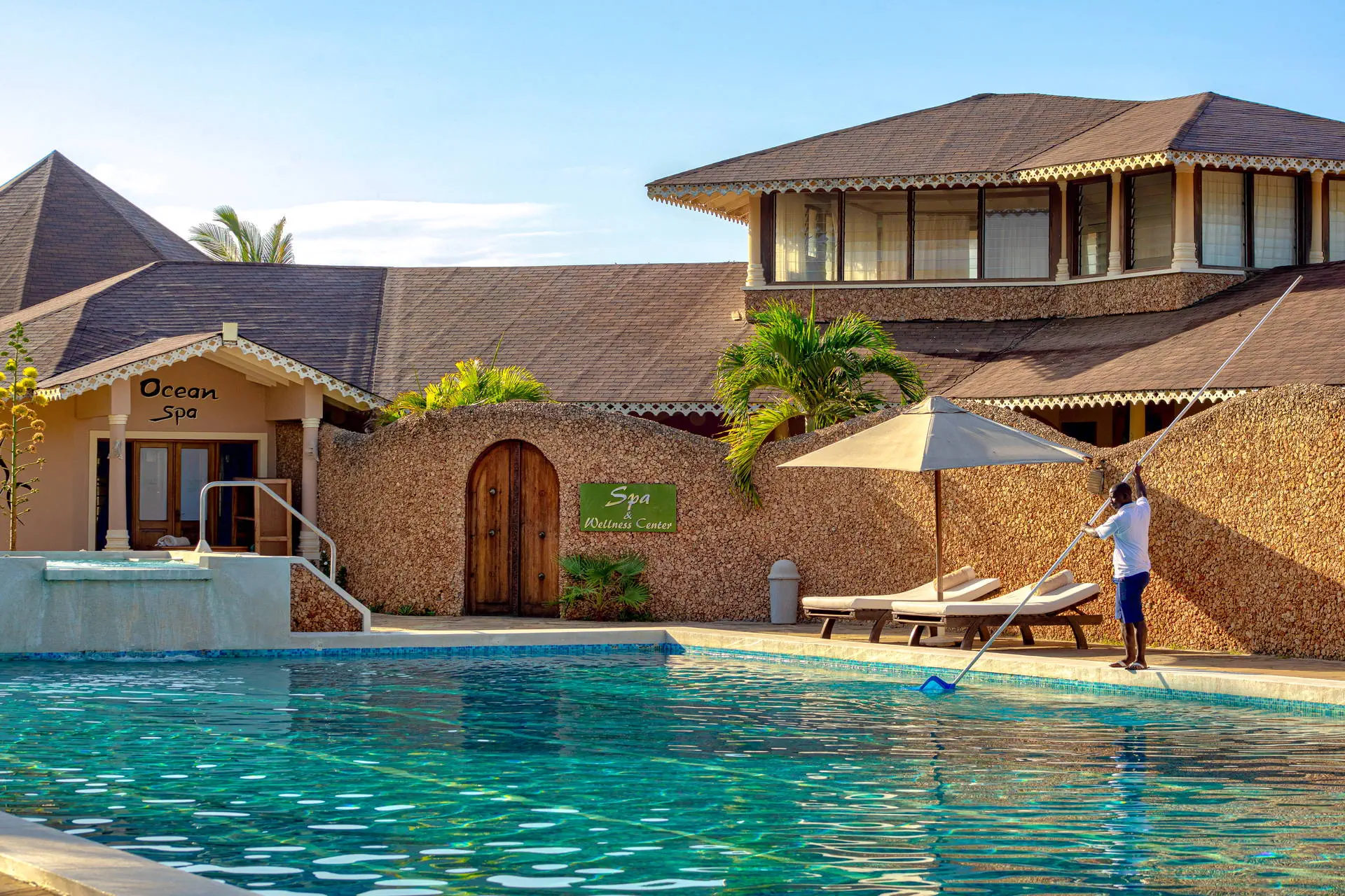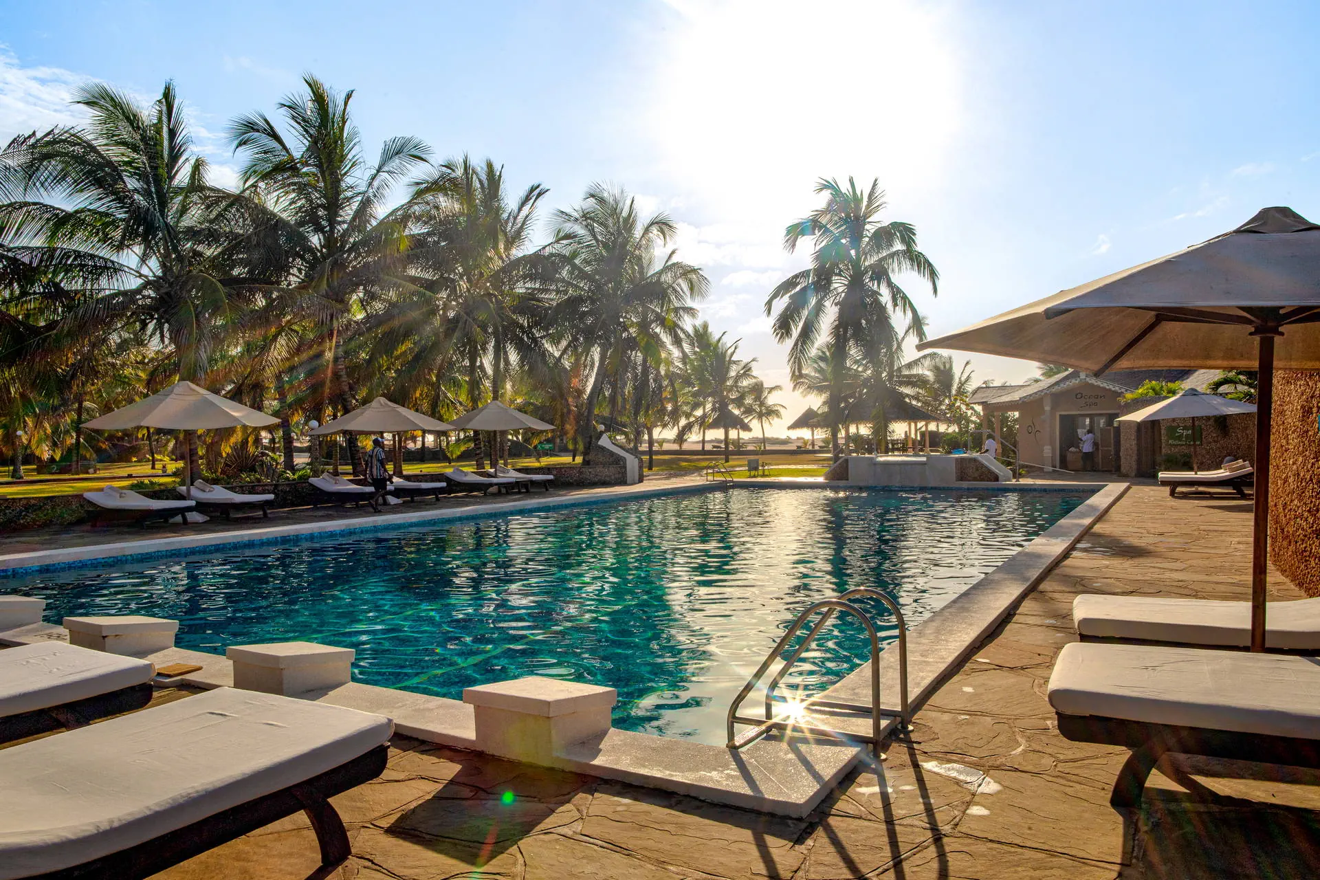 Pokoje Hotel posiada 34 eleganckie pokoje o różnym standardzie. Pokoje superior, o pow. ok. 60 m2, położone są w bungalowach w ogrodzie z prywatnym tarasem. Wyposażone są w: łazienkę z prysznicem, suszarkę do włosów, centralnie sterowaną klimatyzację, TV Sat., odtwarzacz CD/DVD, telefon, bezpłatny sejf, minibar (konsumpcja za opłatą), zestaw do przygotowywania kawy i herbaty, szlafroki oraz obuwie kąpielowe. Na potwierdzenie, położone w wolno stojących domkach w ogrodzie: junior suite o pow. ok. 65 m2, suite o pow. ok 80 m2, dodatkowo posiadające jacuzzi i część wypoczynkową z sofą oraz suite deluxe, o pow. ok. 100 m2, dodatkowo posiadające jacuzzi, przestronną strefę wypoczynkowa oraz taras z widokiem na ocean. Położenie Ten luksusowy hotel położony jest w malowniczej scenerii, zaledwie ok. 2 km od centrum Malindi. Składa się z kilkunastu bungalowów położonych w zadbanym, egzotycznym ogrodzie. Do lotniska w Mombasie ok. 125 km. Do dyspozycji gości Recepcja 24 h, 2 restauracje: Dunes z widokiem na ocean, serwująca dania kuchni lokalnej i międzynarodowej podczas lunchu oraz Victoria (otwarta tylko w porze kolacji) oferująca fusion menu kuchni międzynarodowej. Ponadto 2 bary: Dunes Bar przy plaży (09:00-18:00) oraz Finch Hattons otwarty codziennie od 08:00 do godzin nocnych oferujący bogaty wybór win, alkoholi oraz koktajli. Na terenie hotelu znajdują się 2 baseny ze słodką wodą, z czego jeden posiada wydzieloną część dla dzieci. Ręczniki kąpielowe, leżaki i parasole dostępne bezpłatnie. Za opłatą: kantor, usługi opiekunki dla dzieci, pralnia. Internet Bezpłatny Internet Wi-Fi dostępny na terenie całego hotelu, również w pokojach. Kategoria lokalna ***** Naszym zdaniem Ekskluzywny i kameralny hotel dla bardziej wymagających Klientów. Bogata oferta zabiegów SPA i odnowy biologicznej to gwarancja relaksu i wypoczynku w miłej, spokojnej atmosferze. Hotel wyróżnia się ponadto wyśmienitą lokalną i międzynarodową kuchnią, a bliskość centrum Malindi to bardzo dobra propozycja na odkrywanie tej części Kenii na własną rękę. Plaża Położony bezpośrednio przy pięknej, szerokiej, piaszczystej plaży, z wydzieloną, prywatną częścią hotelową z bezpłatnymi leżakami i parasolami. Ręczniki plażowe dostępne bezpłatnie. Program sportowy i animacyjny Hotel nie prowadzi animacji. W hotelu znajduje się ekskluzywne, bogato wyposażone centrum SPA (za opłatą). Ponadto, za opłatą: pole golfowe ok. 3 km od hotelu, sporty wodne przy plaży. Strona www www.oceanbeachkenya.com Wyżywienie Śniadania i obiadokolacje w formie bufetu. Napoje do obiadokolacji płatne dodatkowo. Za dopłatą opcja full board (dodatkowo lunche, napoje do lunchu i obiadokolacji płatne dodatkowo).