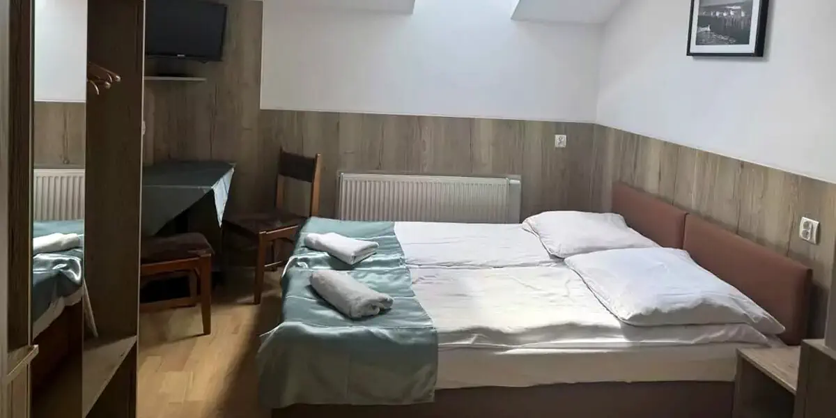 Kameralne pokoje 2-osobowe, idealne dla Gości, którzy cenią prostotę i funkcjonalność. To niewielkie, ale w pełni wyposażone wnętrza, w których znajdziesz wszystko, czego potrzeba do wygodnego wypoczynku.