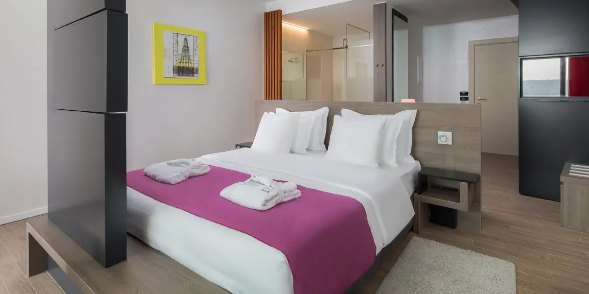 Poznaj wyjątkowe połączenie relaksu, aktywności, naturalnego piękna i tradycyjnej diety nad Adriatykiem. Przeznaczony tylko dla dorosłych Hotel Ola**** został imponująco wkomponowany w chorwackie wybrzeże w środkowej Dalmacji. Dzięki swej lokalizacji z wszystkich pokoi oferuje wspaniałe widoki na morze i linię brzegową. Hotel wyróżnia unikalny design, oszałamiające baseny, bar na dachu i bliskość międzynarodowego lotniska. Udogodnienia: Basen kryty, SPA, Wellness, Restauracja, Bar, Siłownia, Klimatyzacja, Winda, Dla niepełnosprawnych, Parking, Płatność kartą
