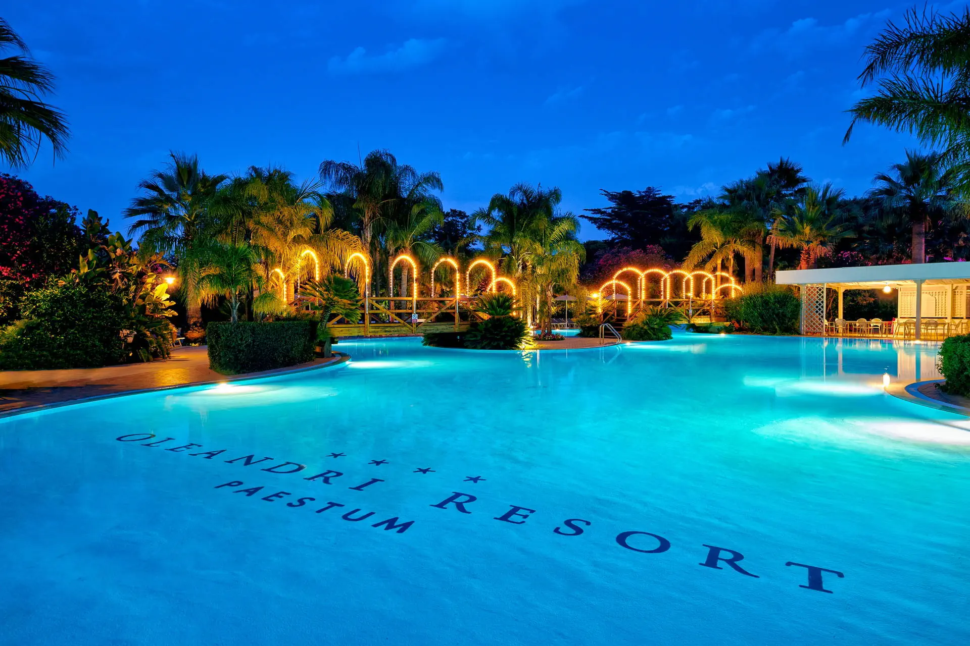 Do dyspozycji gości Recepcja dostępna dla Gości hotelu. 1 basen dostępny dla Gości hotelu, bezpłatne leżaki i parasole przy basenie Restauracje: restauracja Oleander (z piecem drzewnym do wypieku pizzy), bar. Pozostałe informacje: wypożyczalnia samochodów i rowerów, pralnia, taras słoneczny. Internet Bezpłatny Internet Wi-Fi w miejscach ogólnodostępnych hotelu. Kategoria lokalna **** Naszym zdaniem Bardzo elegancki i nowocześnie urządzony, polecany bardzo wymagającym Klientom. Hotel posiada rozległy ogród w eklektycznym stylu, a także dużą strefę basenową, gdzie w pełni można oddać się relaksowi. Właściciele hotelu przywiązują ogromną wagę do wystroju wnętrz oraz dbają o spokojny wypoczynek Gości. Dodatkowo, hotel bardzo lubiany jest za wyśmienitą kuchnię! Plaża Plaża oddalona o ok. 250 metrów od hotelu. Przejście przez ulicę i ścieżką przez las piniowy. Piaszczysta, prywatna, z łagodnym zejściem do morza. Bezpłatny serwis plażowy (2 leżaki i parasol/pokój) od 4 rzędu. Wypożyczenie ręcznika plażowego – koszt ok. 5 EUR za pobranie. Położenie Hotel znajduje się w południowym regionie Włoch - Kampanii, usytuowany w spokojnej okolicy. Obiekt otoczony jest bujnym lasem sosnowym i pięknym śródziemnomorskim ogrodem o powierzchni ok. 3 ha. Odległość do lotniska w Neapolu wynosi około 110 km. Hotel oddalony jest o około 3 km od parku archeologicznego w Paestum, gdzie znajdują się lokalne restauracje i kawiarnie. Obiekt organizuje wieczorne przejazdy tzw. „trenino” do Paestum, a koszt przejazdu w jedną stronę wynosi około 5 EUR. Program sportowy i animacyjny Dla każdego: bogaty program animacyjny wieczorem i w ciągu dnia (w terminie od 24.05 do 19.09), spektakle, występy, gry i zabawy (w terminie od 24.05 do 19.09). Strona www www.oleandriresort.com Wyżywienie Rodzaje wyżywienia i posiłki: Śniadania w formie bufetu: 07:30 - 09:30. Obiadokolacje serwowane do stolika: 19:30 - 21:30 (wybór z 3 pozycji menu na pierwsze oraz drugie danie, owoce lub deser). Napoje do obiadokolacji dodatkowo płatne. Pozostałe informacje: Możliwość rezerwacji dań wegetariańskich oraz posiłków bezglutenowych.