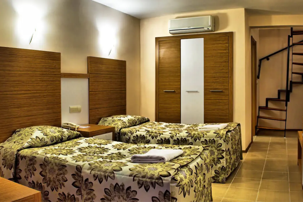 Zlokalizowane są w 82 budynkach: - 1 budynek główny (liczba pięter: 5, liczba wind: 1) - 81 bungalowów (liczba pięter: 1, liczba wind: 0) Typy pokoi: - club-room dla max. 3 os.: 1 sypialnia, klimatyzacja indywidualna, sejf (płatny), minibar (pusty), TV, telefon, łazienka (prysznic, WC), balkon lub taras - superior room dla max. 3 os.: 1 sypialnia, klimatyzacja indywidualna, sejf (płatny), minibar (pusty), TV, telefon, łazienka (prysznic, WC), balkon - club family room dla max. 4 os.: 2 sypialnie, drzwi łączące między pokojami, klimatyzacja indywidualna, sejf (płatny), minibar (pusty), TV, telefon, łazienka (prysznic, WC), balkon - family room dublex dla max. 5 os.: dwupoziomowe, 2 sypialnie, przepierzenie, klimatyzacja indywidualna, sejf (płatny), minibar (pusty), TV, telefon, łazienka (wanna lub prysznic, WC), taras
