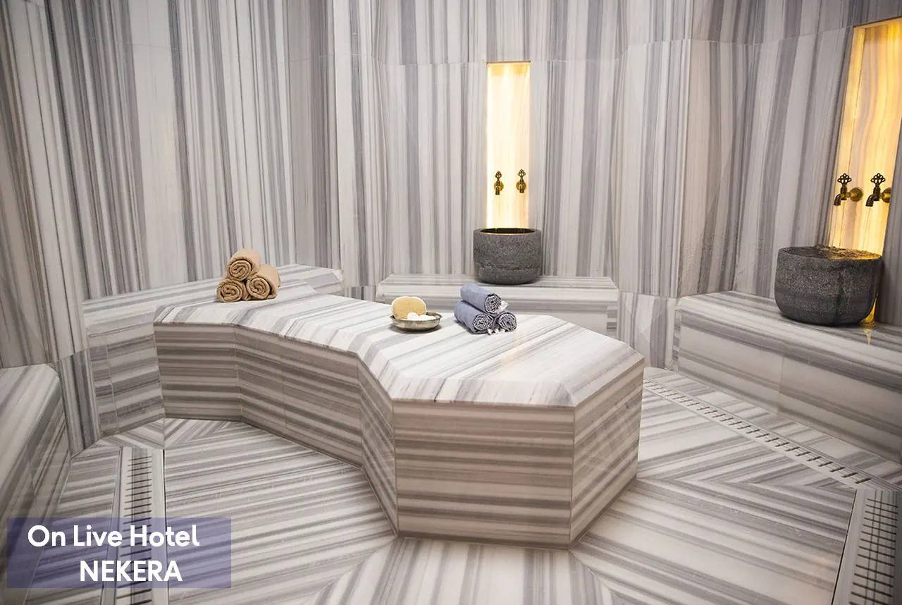 hotel otwarty w 2019 roku, składa się z budynku głównego (3 piętra). Do dyspozycji gości: recepcja, lobby, basen zewnętrzny dla dorosłych, brodzik zewnętrzny dla dzieci, basen kryty, basen thalasso (kryty), basen termalny (kryty), leżaki i parasole przy basenie bezpłatnie (w miarę dostępności), restauracja główna. Płatne: restauracja a la carte (kuchnia międzynarodowa, wymagana wcześniejsza rezerwacja), 3 bary (w tym jeden na plaży), lekarz (na wezwanie), pralnia, room service, sklepy, wypożyczalnia samochodów, centrum konferencyjne.