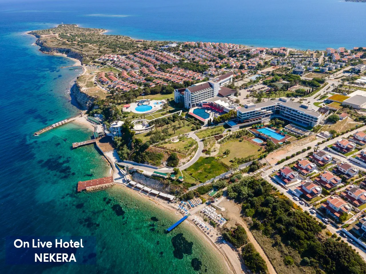 spokojne położenie, ok. 4 km od portu w Dalyan, ok 6 km od XVII zamku w Cesme, najbliższe sklepy znajdują się ok. 6 km d hotelu. Międzynarodowy port lotniczy w Izmirze znajduje się ok. 110 km od hotelu.