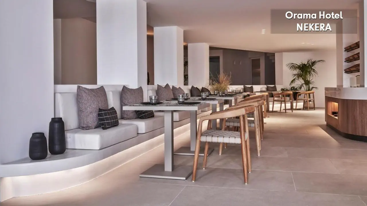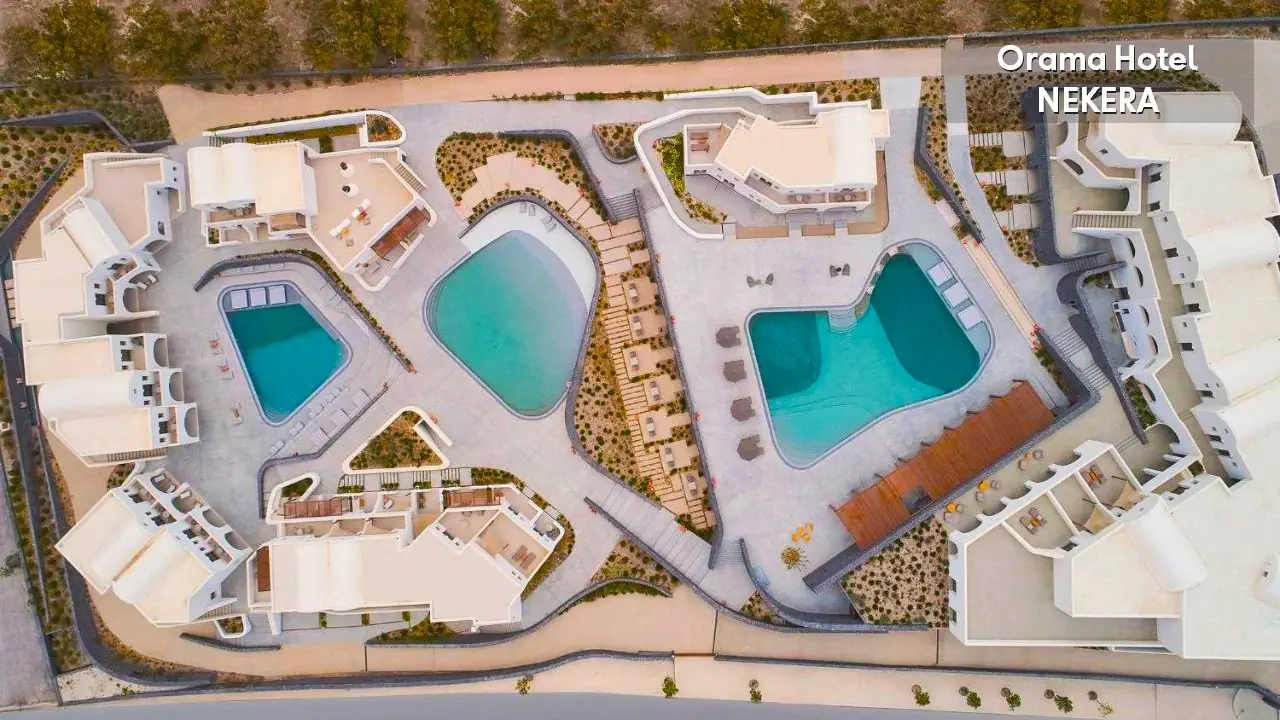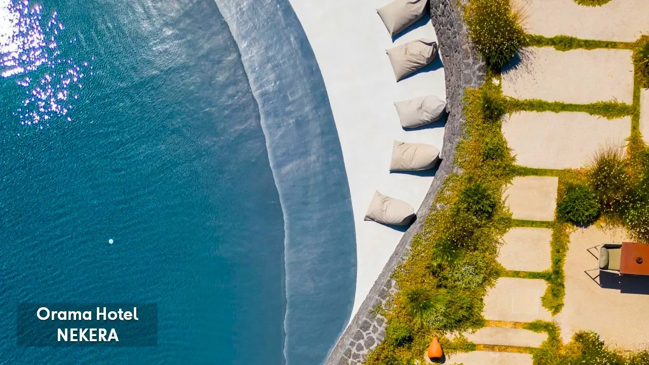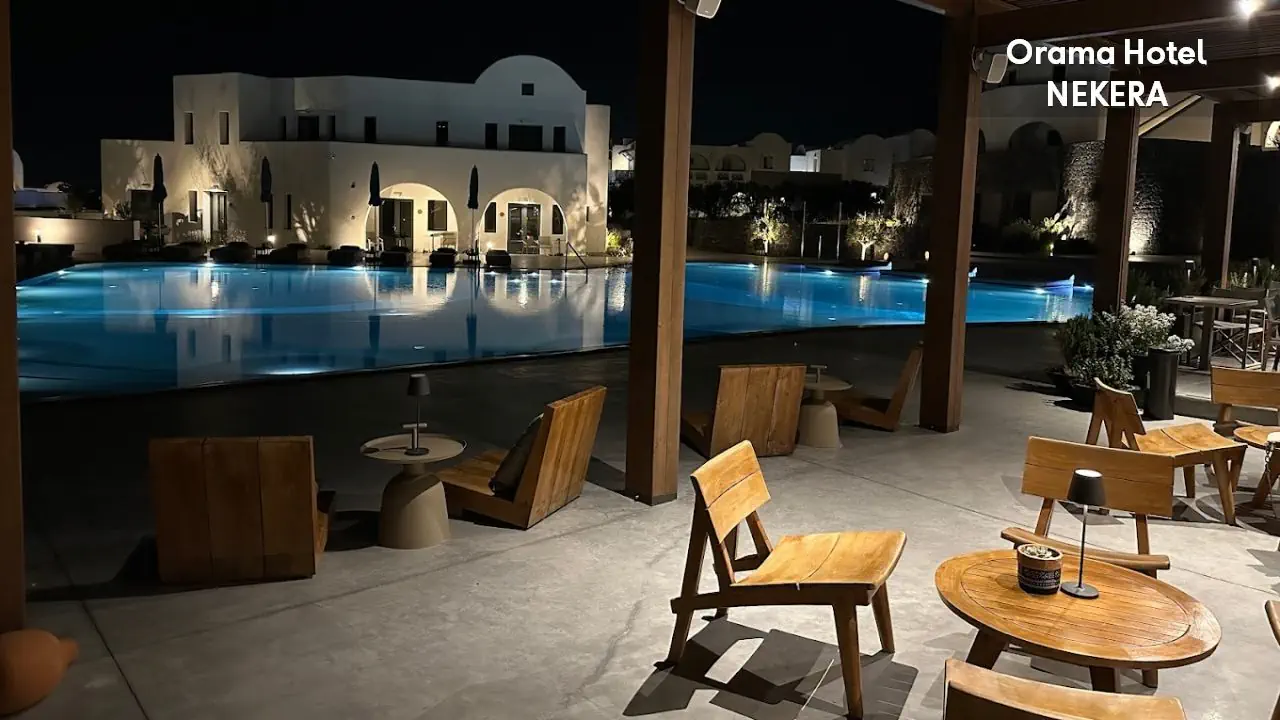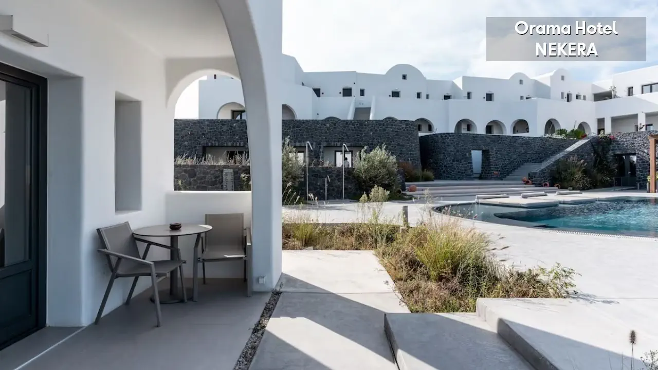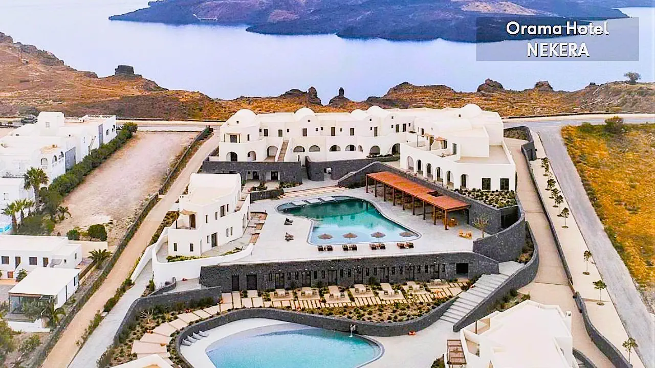 Orama na Santorini to elegancki hotel, który zapewnia komfortowy pobyt w sercu wyspy. Goście mogą cieszyć się nowoczesnymi pokojami z przepięknymi widokami na Morze Egejskie lub okoliczne wulkaniczne krajobrazy. Hotel oferuje basen, strefę wellness oraz restaurację serwującą lokalne i międzynarodowe dania. Dzięki doskonałej lokalizacji, w pobliżu popularnych plaż i atrakcji turystycznych, Orama to świetne miejsce na relaksujący wypoczynek na Santorini.