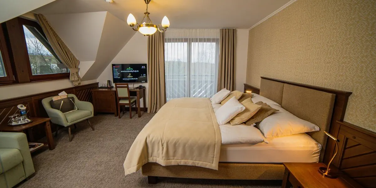 Czterogwiazdkowy Oravský Háj Garden Hotel & Resort to fantastyczne miejsce z wieloma atrakcjami do oderwania się od codzienności, odpoczynku wśród natury i relaksu na górzystej, zielonej Orawie w Słowacji. Na gości czekają między innymi baseny, sauny, własny ośrodek narciarski, stadnina konna i piwniczka z winami do degustacji. Udogodnienia: Basen kryty, Basen zewnętrzny, Jacuzzi, SPA, Sauna, Masaże, Wellness, Zabiegi odnowy biologicznej, Bar / restauracja, Sala zabaw dla dzieci, Pokój gier, Kącik zabaw dla dzieci, Animacje dla dzieci, Ogród / Park, Plac zabaw dla dzieci, Boisko sportowe, Siłownia, Salka fitness, Klimatyzacja, Pobyt z pupilem, Dla niepełnosprawnych, Płatność kartą, Wyciąg narciarski