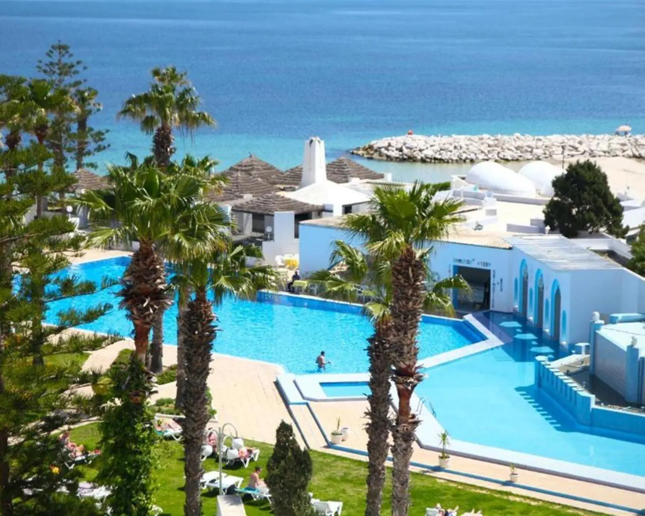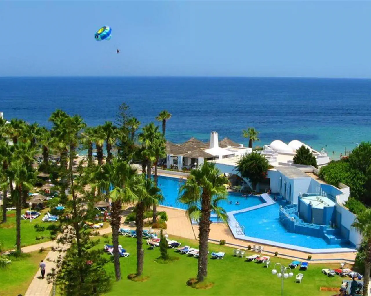 Przy piaszczystej, długiej plaży, ok. 4 km od centrum Sousse, 4 km od Port El Kantaoui, 15 km od Monastiru, 35 km od lotniska w Enfidha.
