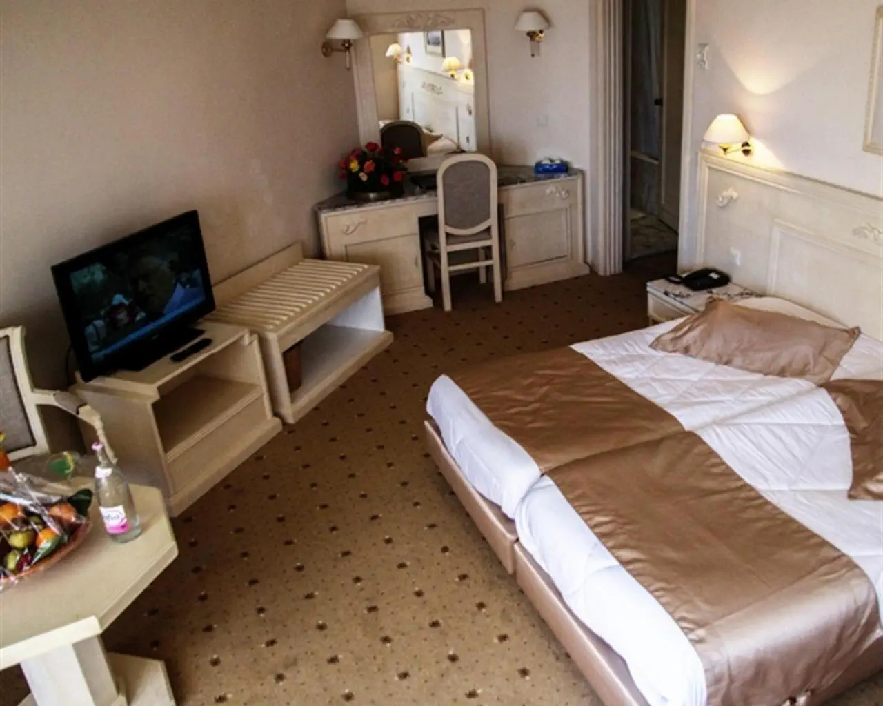 W klasycznym stylu; klimatyzacja sterowana indywidualnie, łazienka z wanną lub prysznicem, suszarką do włosów i oddzielną toaletą, telefon, TV sat, sejf, minibar, balkon lub taras. Double/twin standard - standardowy pokój dwuosobowy. Double/twin standard sea view - standardowy pokój dwuosobowy z widokiem na morze. Family room - pokój rodzinny dla maks. 2 doroslych i 2 dzieci. Family room sea view - pokój rodzinny z widokiem na morze. Single - pokój jednoosobowy.