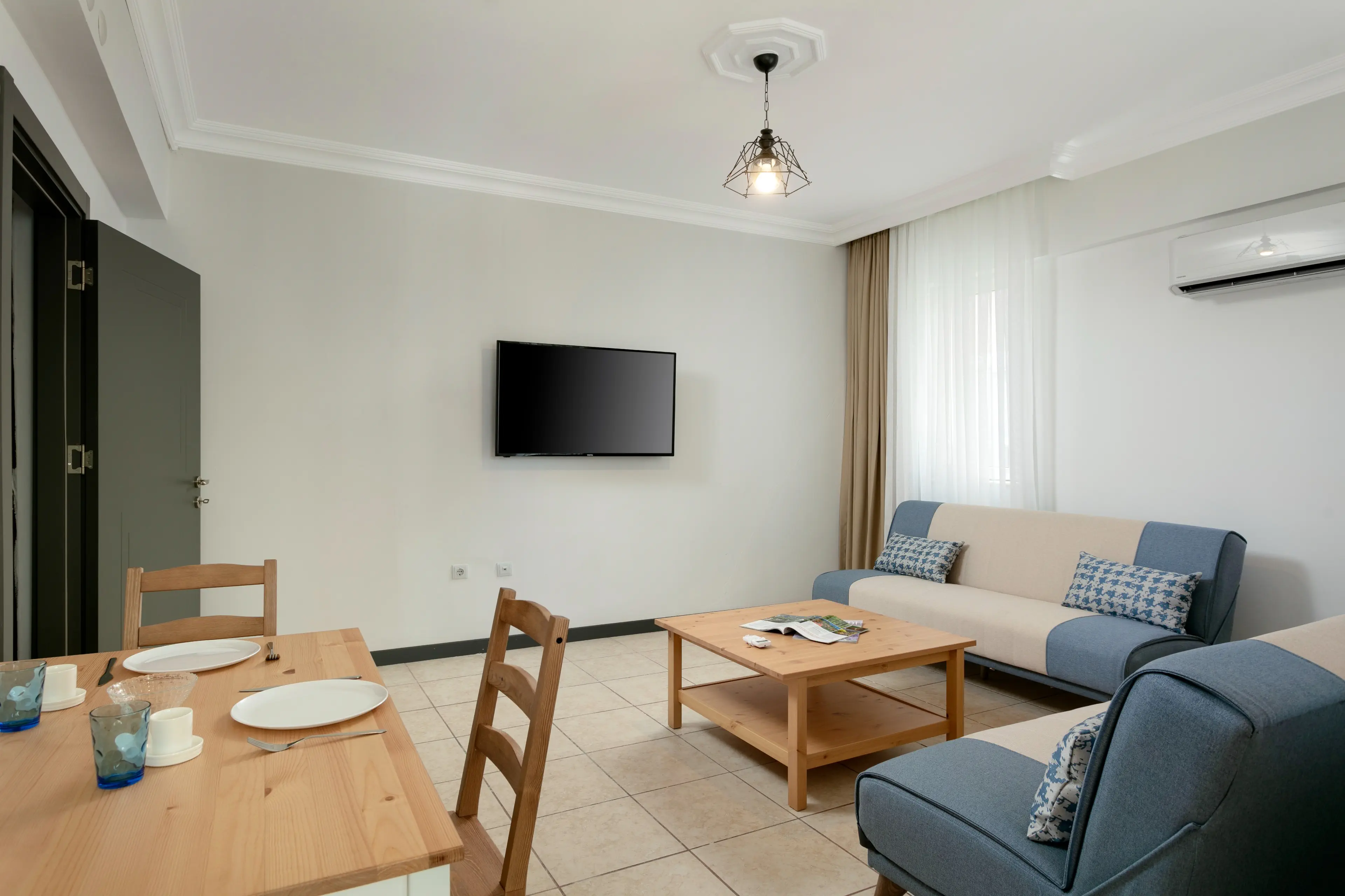Dla max. 4 osób, Przestrzeń zewnętrzna: Balkon, Kanały telewizji: Polski, Angielski, Telefon w pokoju, Aneks kuchenny, prysznic, Powierzchnia pokoju: ok. 52 m2, Dostawka: sofa, Rodzaj podłogi: płytki, Sprzątanie cykliczne, Salon, Jadalnia , 1 sypialnia, Drzwi łączące między pokojami, Maksymalna liczba osób dorosłych: 4, Maksymalna liczba dzieci: 3, Widok na miasto,Widok na ogród i basen, Liczba łazienek: 1, Liczba toalet: 1, Zestaw do parzenia kawy i herbaty (dodatkowo płatne), Klimatyzacja: Klimatyzacja indywidualna