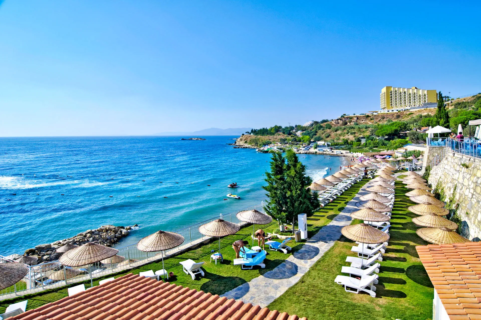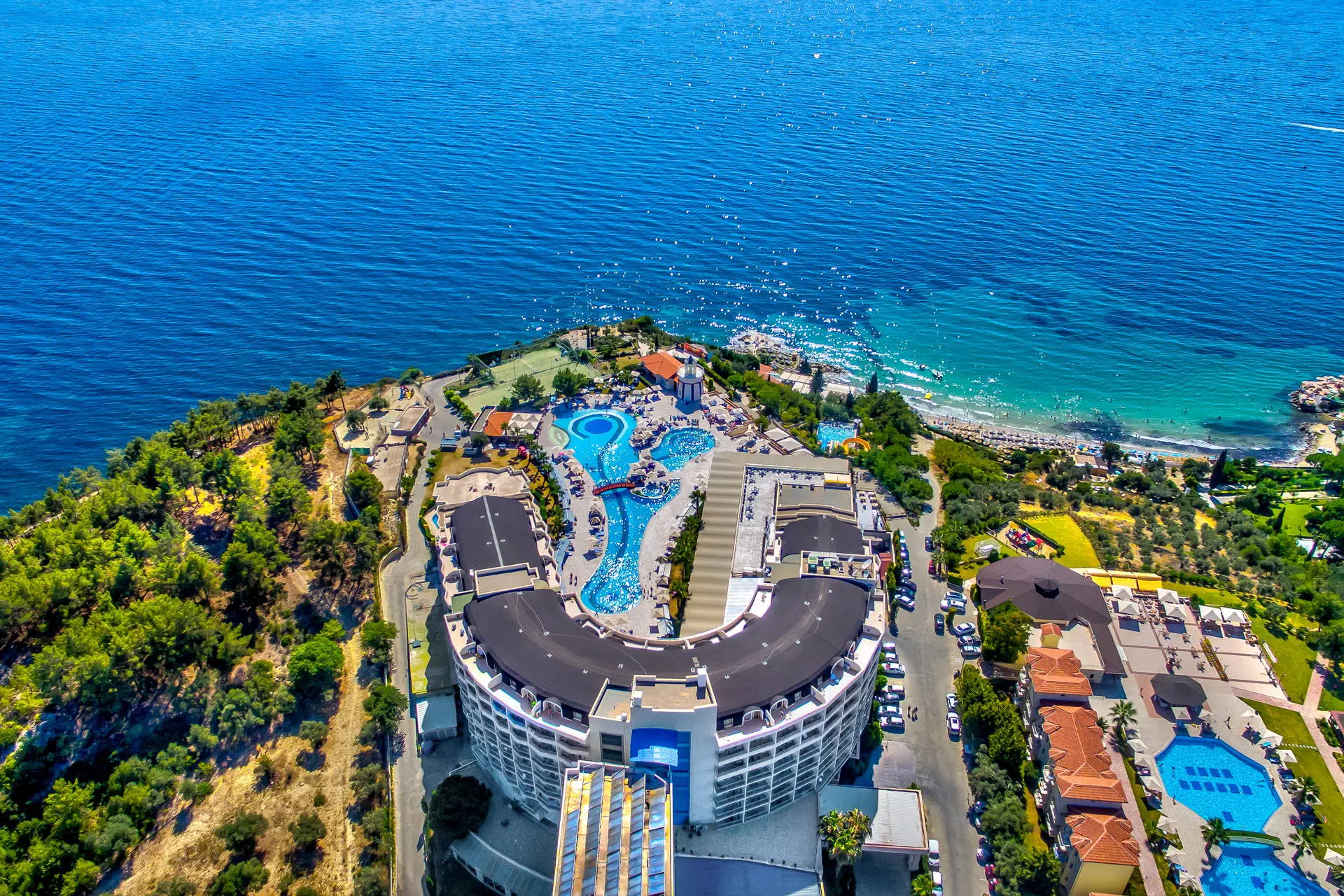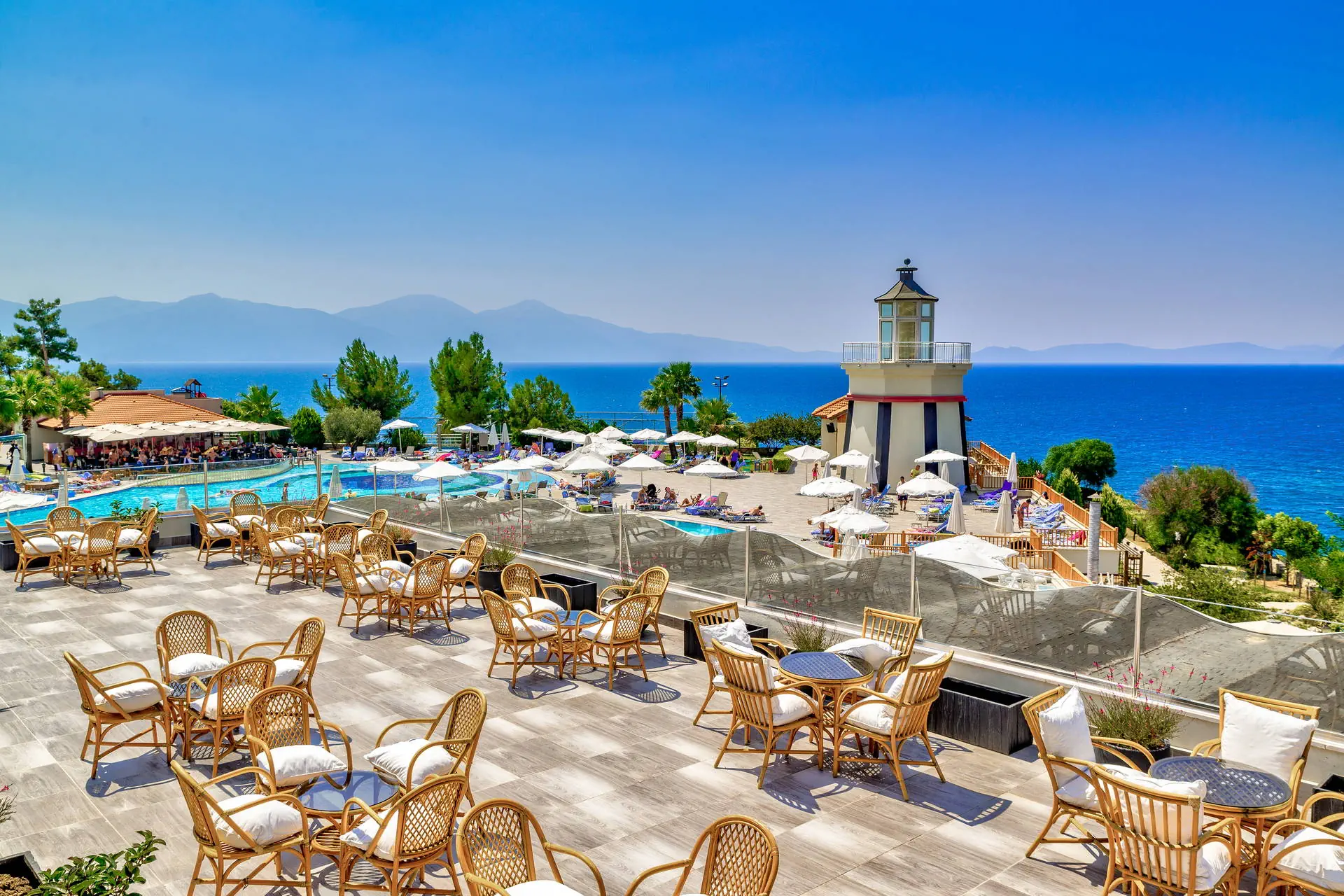 Położenie Obiekt znajduje się około 5 km od centrum Kusadasi, gdzie można znaleźć liczne sklepy, restauracje i bary. Historyczny Efez oddalony jest o około 25 km od miejsca zakwaterowania. Hotel położony jest około 130 km od lotniska w Bodrum. Plaża 300-metrowa piaszczysta plaża z łagodnym zejściem do wody. Leżaki, parasole i ręczniki dostępne bezpłatnie. Na plażę można dojść po schodach lub skorzystać z hotelowego busa (09:00-18:00). Do dyspozycji gości Recepcja 24h/7, przestronne lobby, 6 wind. 3 baseny: bardzo duży o nieregularnych kształtach, jeden ze zjeżdżalniami (czynne w określonych godzinach), basen ze słoną wodą oraz brodzik dla dzieci. Taras słoneczny przy basenie z bezpłatnymi leżakami, parasolami i ręcznikami. Atrakcje dla dzieci: brodzik dla dzieci. Restauracje: restauracja główna z panoramicznymi widokami, 5 restauracji à la carte: kebab, z owocami morza, meksykańska, azjatycka oraz śródziemnomorska (dostępna 1 bezpłatnie raz na pobyt, wymagana rezerwacja, otwarte będą w zależności od obłożenia hotelu), 6 barów m.in.: bar przy basenie, bar przy plaży, w lobby. Wyżywienie Rodzaje wyżywienia i posiłki: Ultra All Inclusive: Śniadanie: 07:00 - 10:00. Późne śniadanie: 10:00 - 10:30. Lunch: 12:30 - 14:00. Obiadokolacja: 19:00 - 21:30; posiłki w formie urozmaiconego bufetu.Bufet dla dzieci: 12:00 - 14:00 oraz 18:30 - 21:30. Przekąski w ciągu dnia w wybranych barach. Kawa, herbata, ciasta i lody: 12:00 - 19:00. Przekąska nocna: zupa i makaron: 24:00 - 05:00. Bary: Neopolis Bar: lokalne napoje bezalkoholowe i alkoholowe 24 h. Pozostałe bary: lokalne napoje bezalkoholowe i alkoholowe w godzinach ich otwarcia. Pozostałe informacje: Za opłatą: pozostałe napoje importowane, świeżo wyciskane soki, kawa po turecku. Program sportowy i animacyjny Dla każdego: zabawy i gry przy basenie, wieczorne show, muzyka na żywo, kort tenisowy, koszykówka, siatkówka, siłownia, joga, łucznictwo, mini piłka nożna, mini golf, rowery wodne, sauna. Dla dzieci: mini klub hotelowy. Za dodatkową opłatą: tenis stołowy, kręgle, bilard, oświetlenie kortu, sporty wodne, zabiegi i masaże w centrum SPA. Internet Bezpłatny Internet Wi-Fi w lobby oraz w pokojach. Kategoria lokalna ***** Naszym zdaniem Elegancki hotel, którego kaskadowe położenie gwarantuje wspaniałe widoki. Polecamy osobom nastawionym na aktywny wypoczynek dzięki bogatym animacjom oraz bliskości turystycznego Kusadasi. Dodatkowym atutem jest dobre jedzenie i bogata formuła Ultra All Inclusive. Strona www www.sealighthotel.com