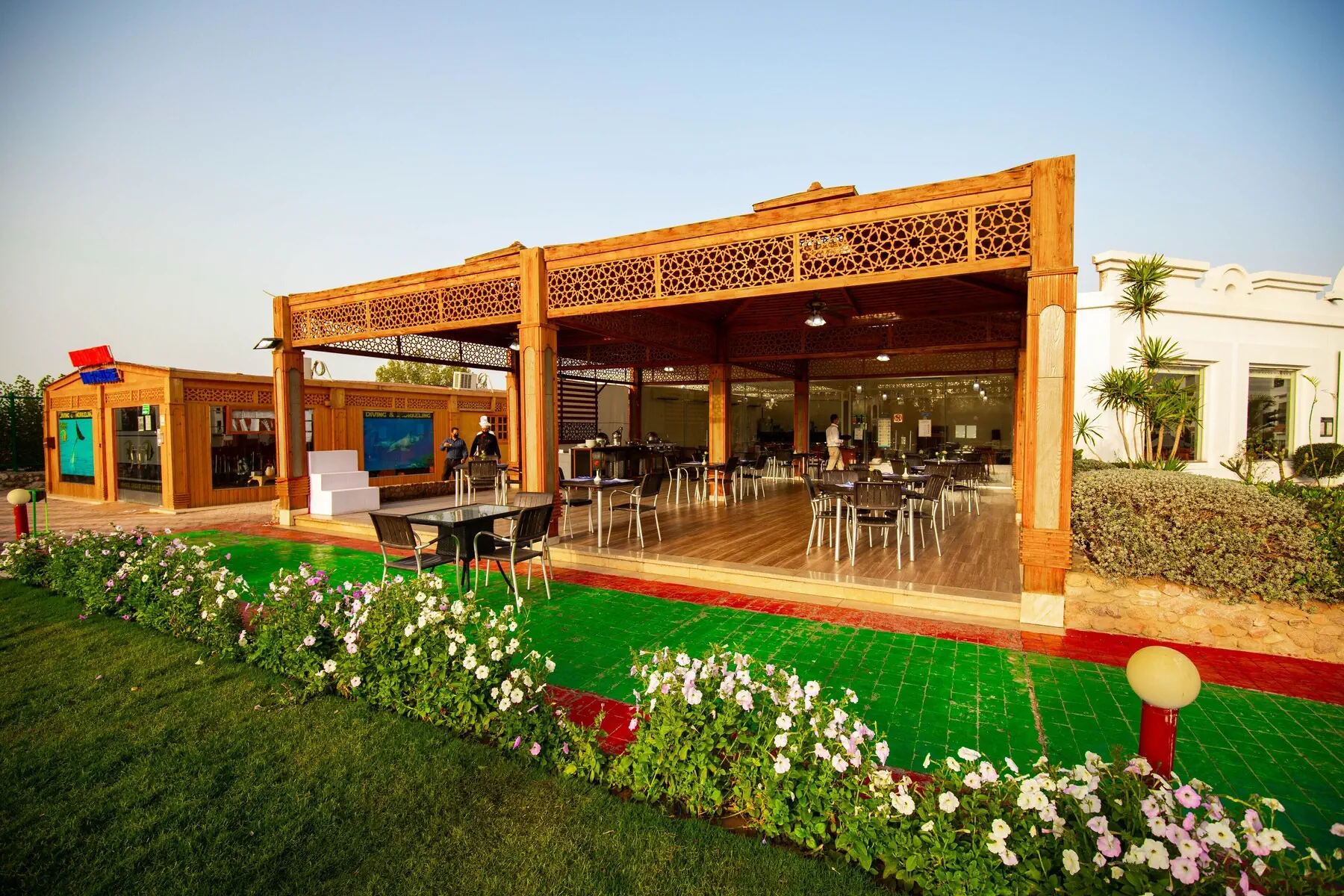 Czterogwiazdkowy hotel wybudowany w nubijskim stylu jest idealną propozycją dla osób chcących wypocząć nad szeroką i piaszczystą plażą.