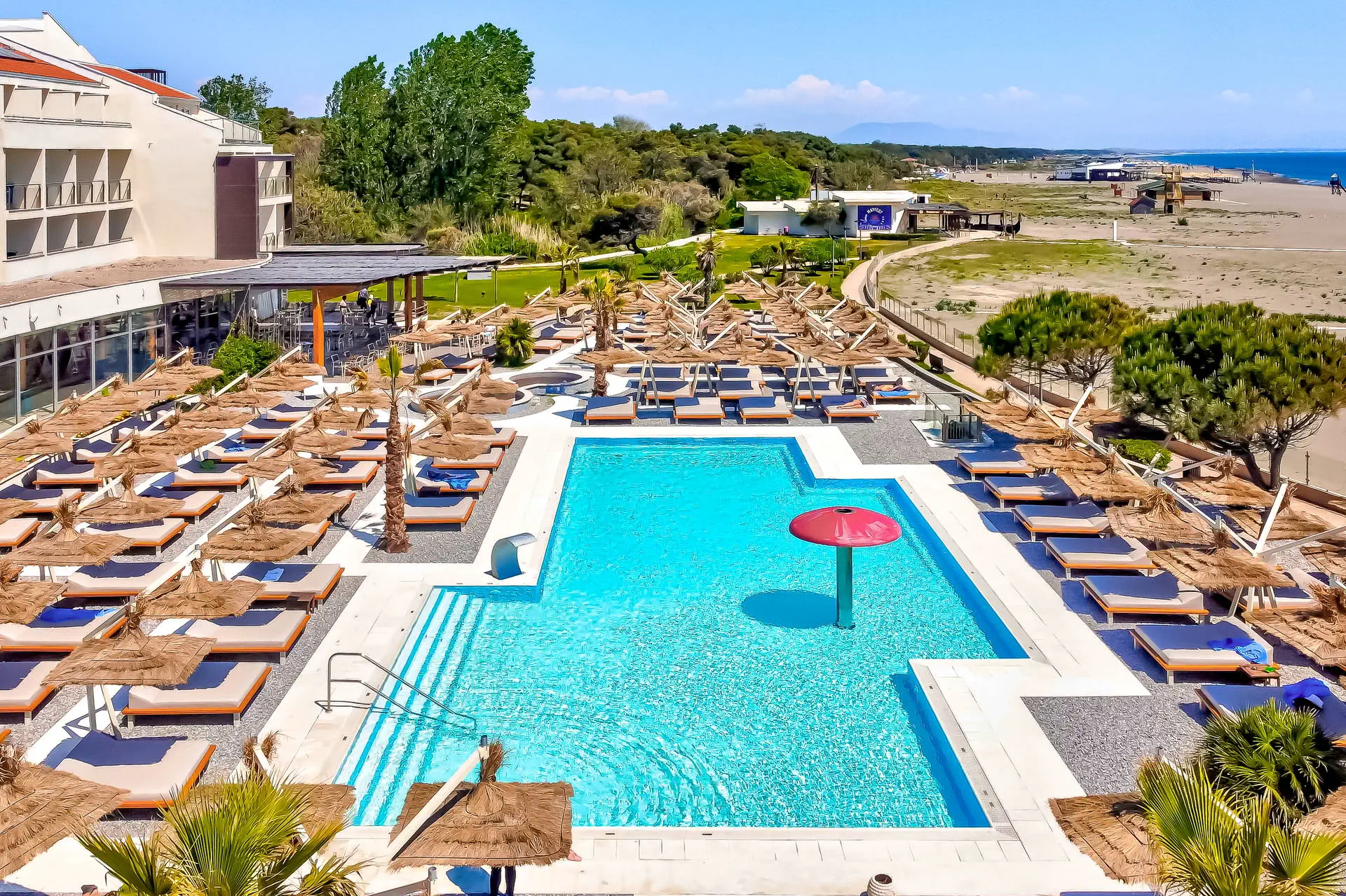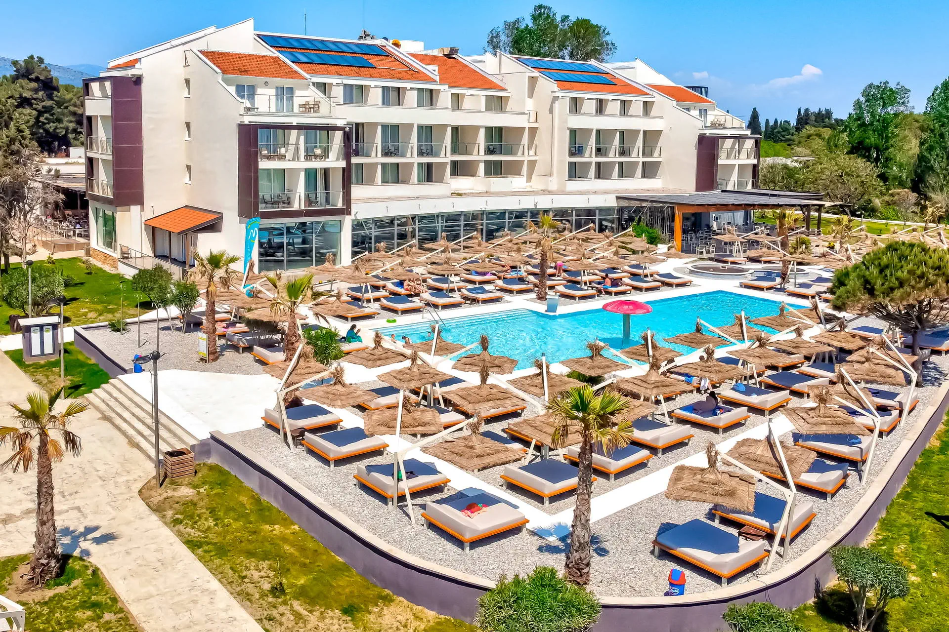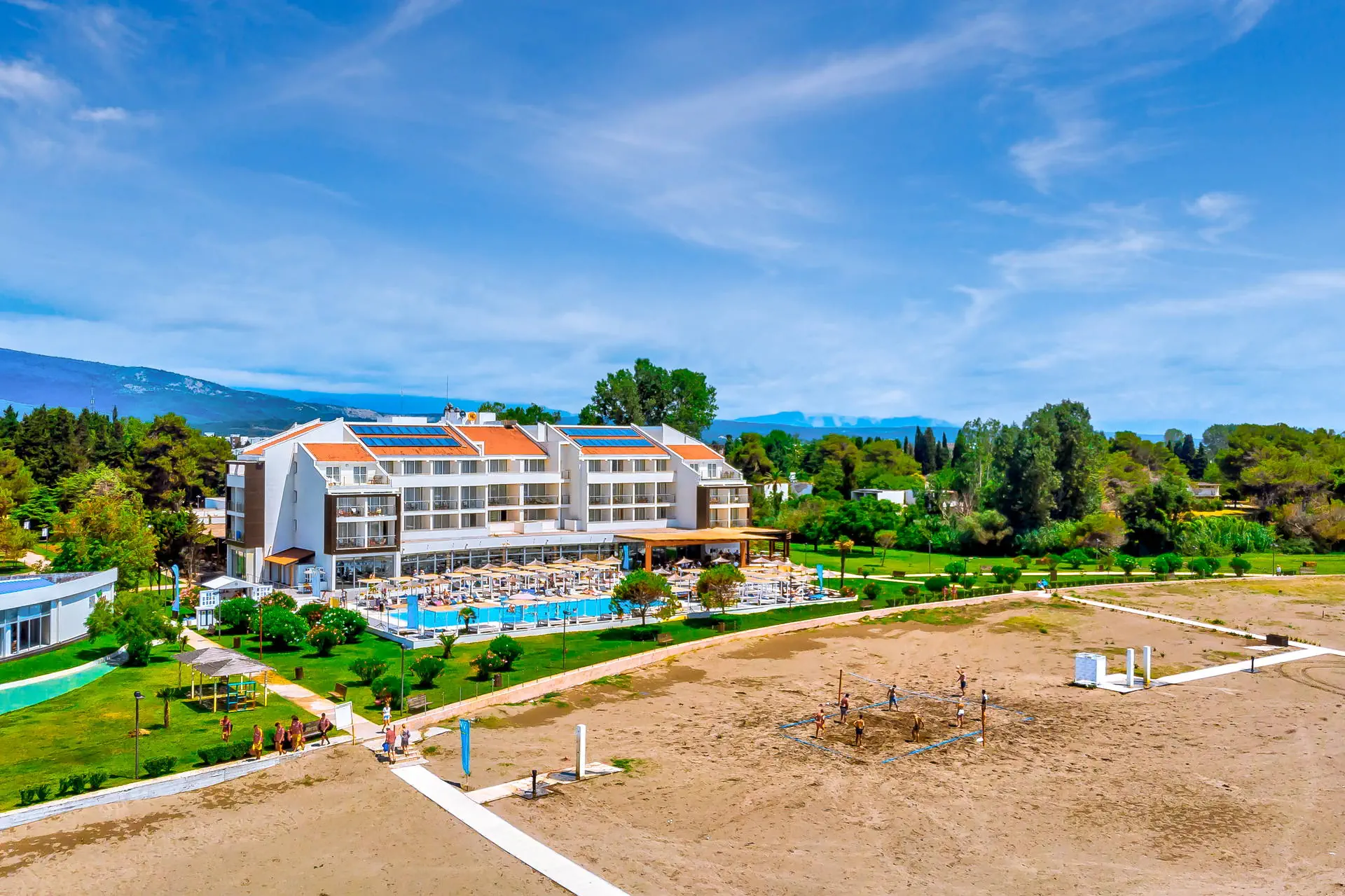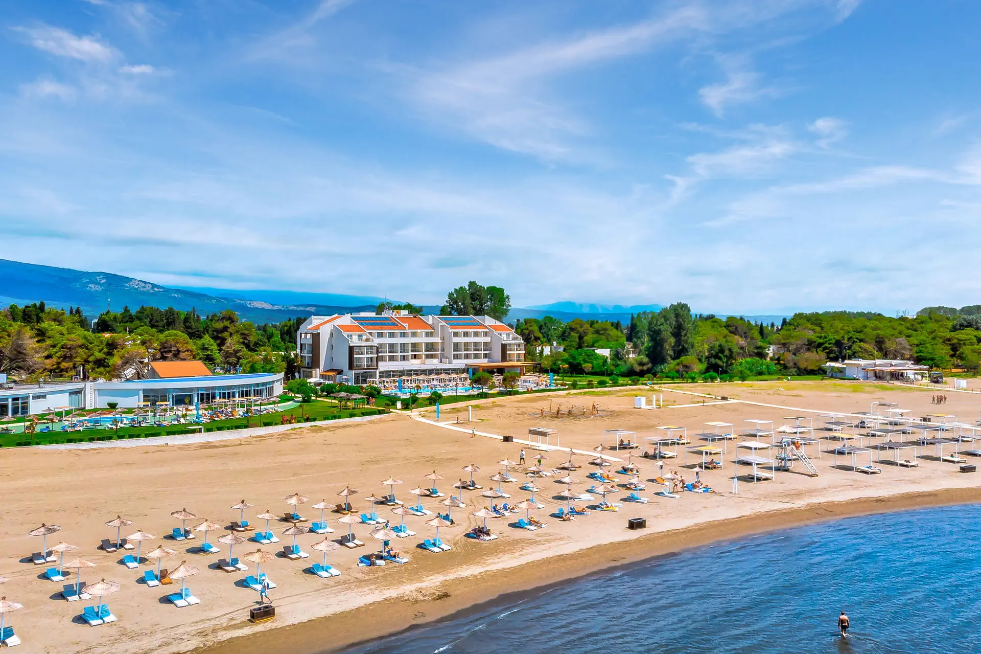 Do dyspozycji gości Recepcja 24h/7, lobby, windy. Taras słoneczny. Basen zewnętrzny z wodą słodką, basen kryty otwarty na morze z tarasem słonecznym, brodzik dla dzieci, parasole i leżaki przy basenie bezpłatne. Atrakcje dla dorosłych: centrum spa (sauny, strefa relaksu bezpłatnie, pozostałe usługi płatne), siłownia, boisko wielofunkcyjne. Restauracje: klimatyzowana restauracja Otrant z tarasem, drink bar w hotelu, bar plażowy. Pozostałe informacje: parking, hotel akceptuje karty płatnicze. Internet W lobby internet Wi-Fi - bezpłatny. Kategoria lokalna **** Naszym zdaniem Gorąco polecamy i zachęcamy do zakupu tego obiektu! Wspaniale położony w spokojnym otoczeniu, przy malowniczej szerokiej, piaszczystej plaży, a jednocześnie w pobliżu lokalnych atrakcji. Kombinacja europejskiego poziomu obsługi i bałkańskiego smaku orientu sprawią, że wypoczynek w hotelu Otrant stanie się wspaniałym wspomnieniem, aż do kolejnego lata! Hotel jest miejscem, wykorzystanym kilkakrotnie przez bałkańskich filmowców, a w pierwszy weekend maja odbywa się tu Festiwal MAYFEST - przyciągający setki fanów muzyki klubowej. Polecamy każdemu, szczególnie rodzinom z dziećmi, ze względu na bogatą infrastrukturę hotelu i bardzo rozbudowane All Inclusive. Wysoki standard w bardzo atrakcyjnej cenie! Plaża Plaża tuż przy hotelu, na początku Velikiej Plaży. Szeroka, piaszczysta Velika Plaża o długości ok. 14 km. Leżaki i parasole bezpłatne. Pokoje Hotel posiada 134 przestronnie i nowocześnie urządzone pokoje 2-osobowe (możliwość 1 dostawki w formie sofy lub łóżka polowego) z balkonami i łazienkami (suszarka do włosów na wyposażeniu). W pokojach znajdują się: TV-sat z płaskim ekranem, telefon, sejf (bezpłatny), mini bar (dodatkowo płatny, wypełniany na życzenie), klimatyzacja (centralnie sterowana, bezpłatnie). Hotel posiada kilka apartamentów 2+2, które składają się z dużego salonu (podwójne łóżko, toaletka, miejsce do wypoczynku, sofa), niewielkiej sypialni oddzielonej suwanymi drzwiami, dużego balkonu z bezposrednim widokiem na morze. Reszta wyposażenia jak w pok. standard. Łóżeczko dla dziecka do 2 lat - bezpłatne. Położenie Transfer z lotniska w Podgoricy trwa ok. 1,5 godziny, a odległość od lotniska wynosi ok 74 km. Obiekt znajduje się ok. 4,5 km od centrum i Starego Miasta Ulcinj, dojazd możliwy jest taksówką za ok. 6 EUR. Stare Miasto Ulcinj oferuje liczne atrakcje takie jak bary, restauracje, sklepy, kluby i dyskoteki oraz zabytkową twierdzę. Dostępna komunikacja obejmuje dojazd taksówką. Kompleks położony jest przy morzu, w pobliżu znajdują się liczne restauracje, sklepy, bary i kramiki z lokalnymi pamiątkami. Sezonowo pojawia się również mini wesołe miasteczko. Program sportowy i animacyjny Dla każdego: boisko wielofunkcyjne oraz boisko do siatkówki na plaży. Za dodatkową opłatą: wypożyczalnia sprzętów wodnych. Pozostałe informacje: w okresie wysokiego sezonu w hotelu kilka razy w tygodniu odbywają się wieczorki z muzyką na żywo lub pokazy taneczne. Strona www www.hotelotrant.me Wyżywienie Rodzaje wyżywienia i posiłki: Formuła All Inclusive: Śniadania: 07:30 - 10:00. Obiady: 12:00 - 14:30. Kolacje: 18:30 - 21:30, w formie bogatego bufetu. Przekąski (snaki): 14:30 - 16:30, m.in. pizza, tortille, bruschette, frytki, krokiety, kanapki, pity, priganice. Tea time: 16:00 - 17:00, ciastka, słodkie kremy, kawa oraz herbata. Bary: Bary All Inclusive w hotelu i przy basenie: napoje bezalkoholowe i alkoholowe lokalne, bezpłatne 10:00 - 23:00, mogą obowiązywać dodatkowe opłaty 23:00 - 24:00.