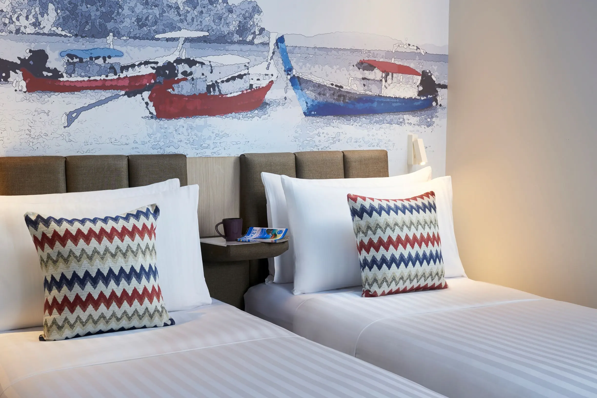 Dla max. 2 osób, Przestrzeń zewnętrzna: Balkon, Kanały telewizji: Angielski, Telefon w pokoju, prysznic, Powierzchnia pokoju: ok. 27 m2, Rodzaj podłogi: laminat, Sprzątanie codziennie, 1 sypialnia, 2, Maksymalna liczba osób dorosłych: 2, Maksymalna liczba dzieci: 1, Widok na miasto,Widok na ogród i basen,Widok na ogród, Liczba łazienek: 1, Liczba toalet: 1, Zestaw do parzenia kawy i herbaty, Klimatyzacja: Klimatyzacja indywidualna