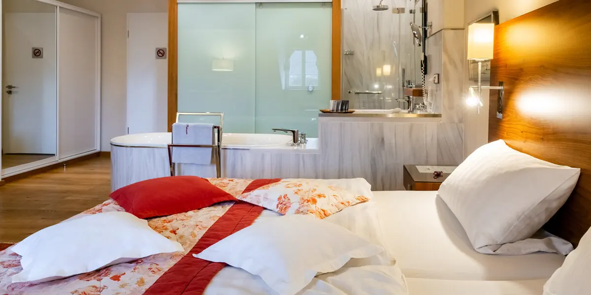Przestrzenne i słoneczne pokoje są indywidualnie zaaranżowane, posiadają prysznic oraz otwartą wannę. Prysznic i wanna są zintegrowane z pokojem.