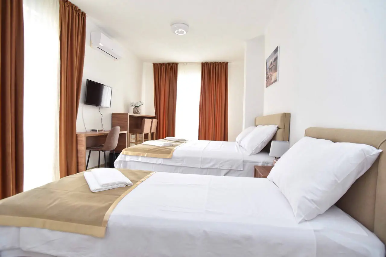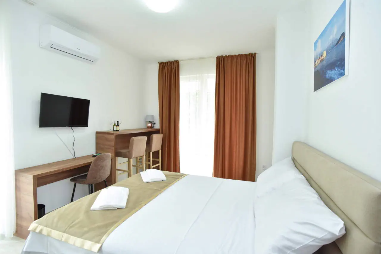 Położenie Odległość od lotniska wynosi ok. 66 km, a transfer z lotniska trwa około 1,5 godziny. Obiekt zlokalizowany jest ok. 2,5 km od Starego Miasta. W pobliżu znajduje się supermarket oraz restauracje. Apartament Palace zlokalizowany jest w Budvie, najpopularniejszym ośrodku wypoczynkowym w Czarnogórze. W pobliżu znajduje się nadmorska promenada z licznymi sklepami, restauracjami, klubami. Plaża Odległość plaży od hotelu wynosi około 900 metrów. Żwirkowo-kamienista. Leżaki i parasole dodatkowo płatne. Do dyspozycji gości Całodobowa recepcja. Pozostałe informacje: taras, sejf w recepcji, możliwość wypożyczenia auta (płatne), parking (płatny). Wyżywienie Brak wyżywienia Program sportowy i animacyjny Hotel nie prowadzi programów sportowych i animacyjnych. Internet Bezpłatny dostęp do Wi-Fi na terenie całego obiektu również w pokojach. Kategoria lokalna *** Naszym zdaniem Polecamy szczególnie ten nowy, powstały w 2018 roku obiekt. Wysoki standard zakwaterowania spełni oczekiwania wymagających Klientów.