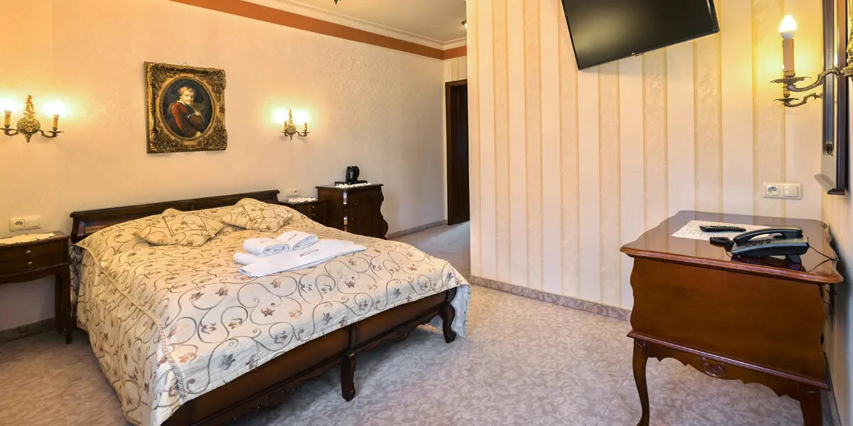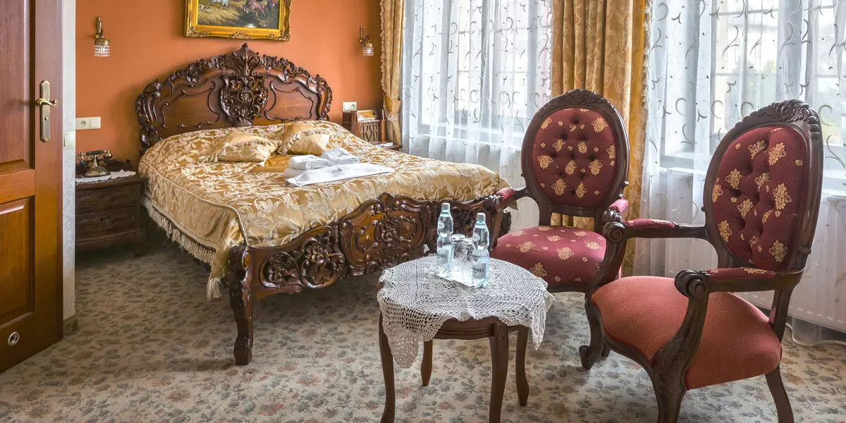 Pokój, który pozwala przenieść się w czasie. W wyposażeniu: czajnik, mini bar, TV, wifi, łazienka z prysznicem, suszarką do włosów, ręcznikami, kosmetykami