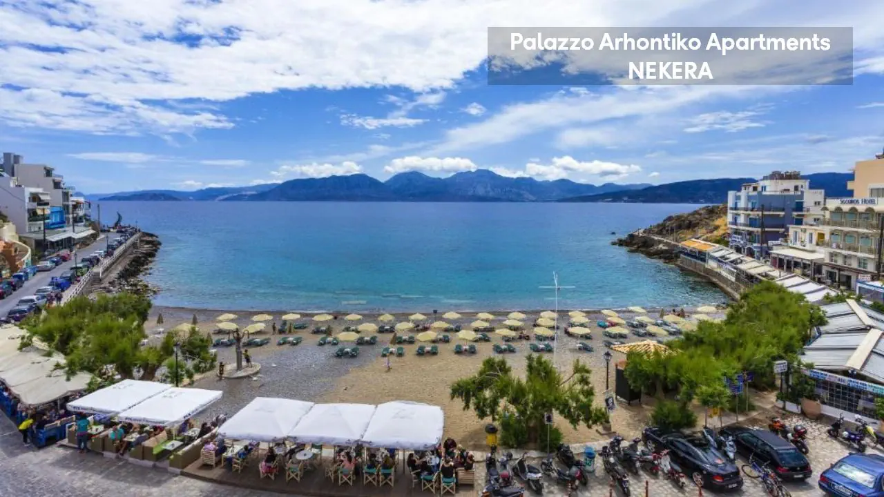 W centrum miasta Agios Nikolaos, Heraklion: ok.64 km. Port Lotniczy Heraklion: ok. 60 km.
