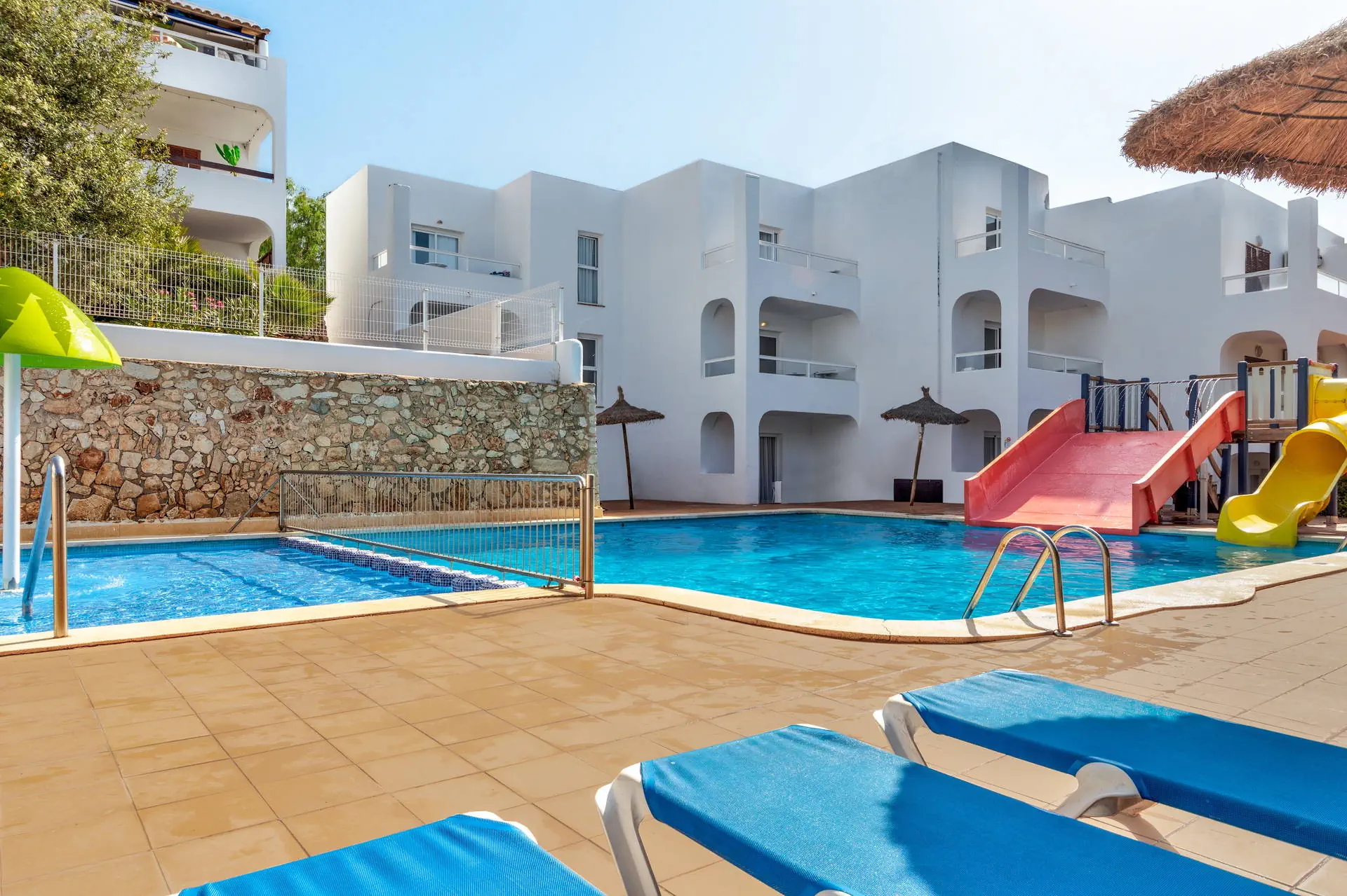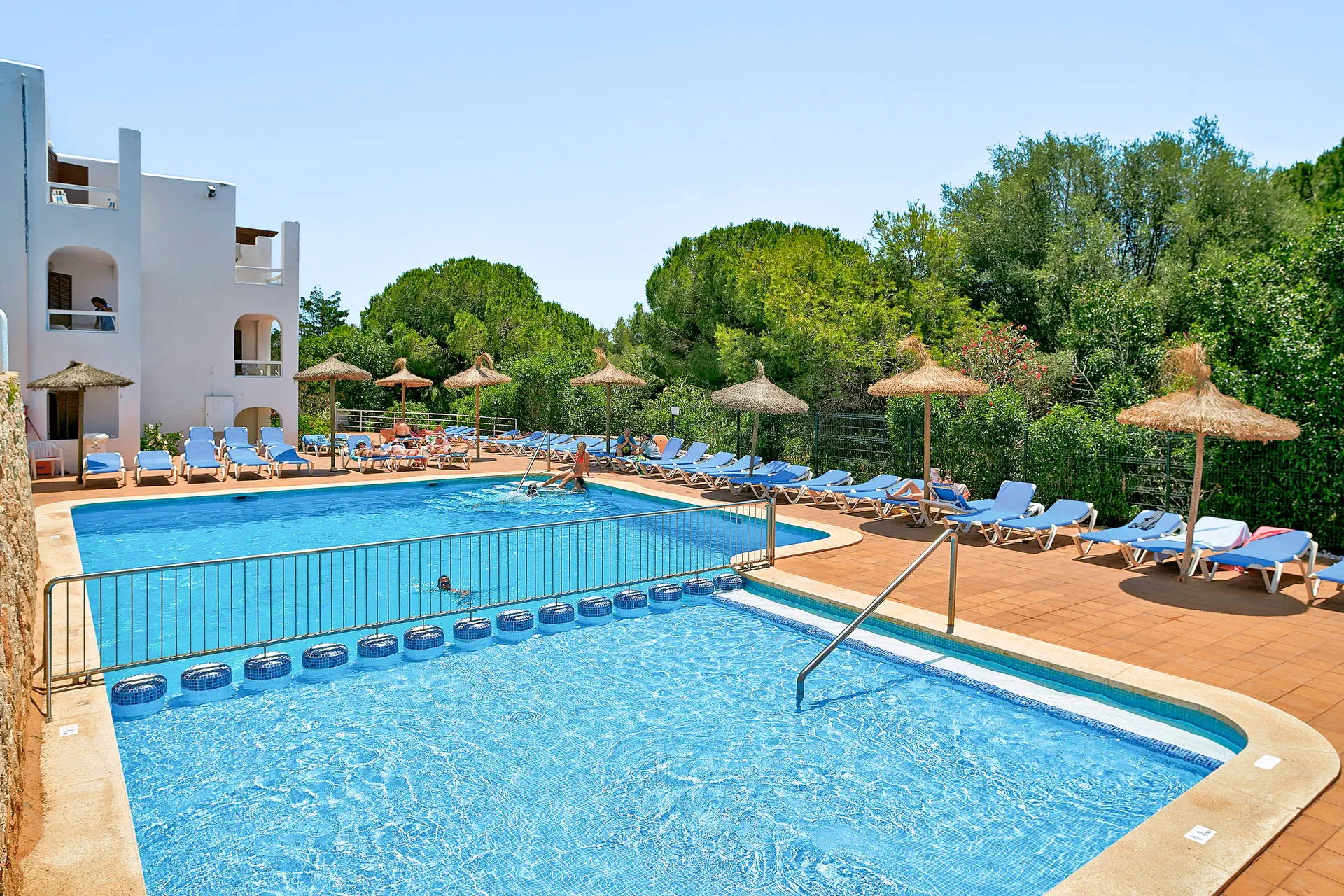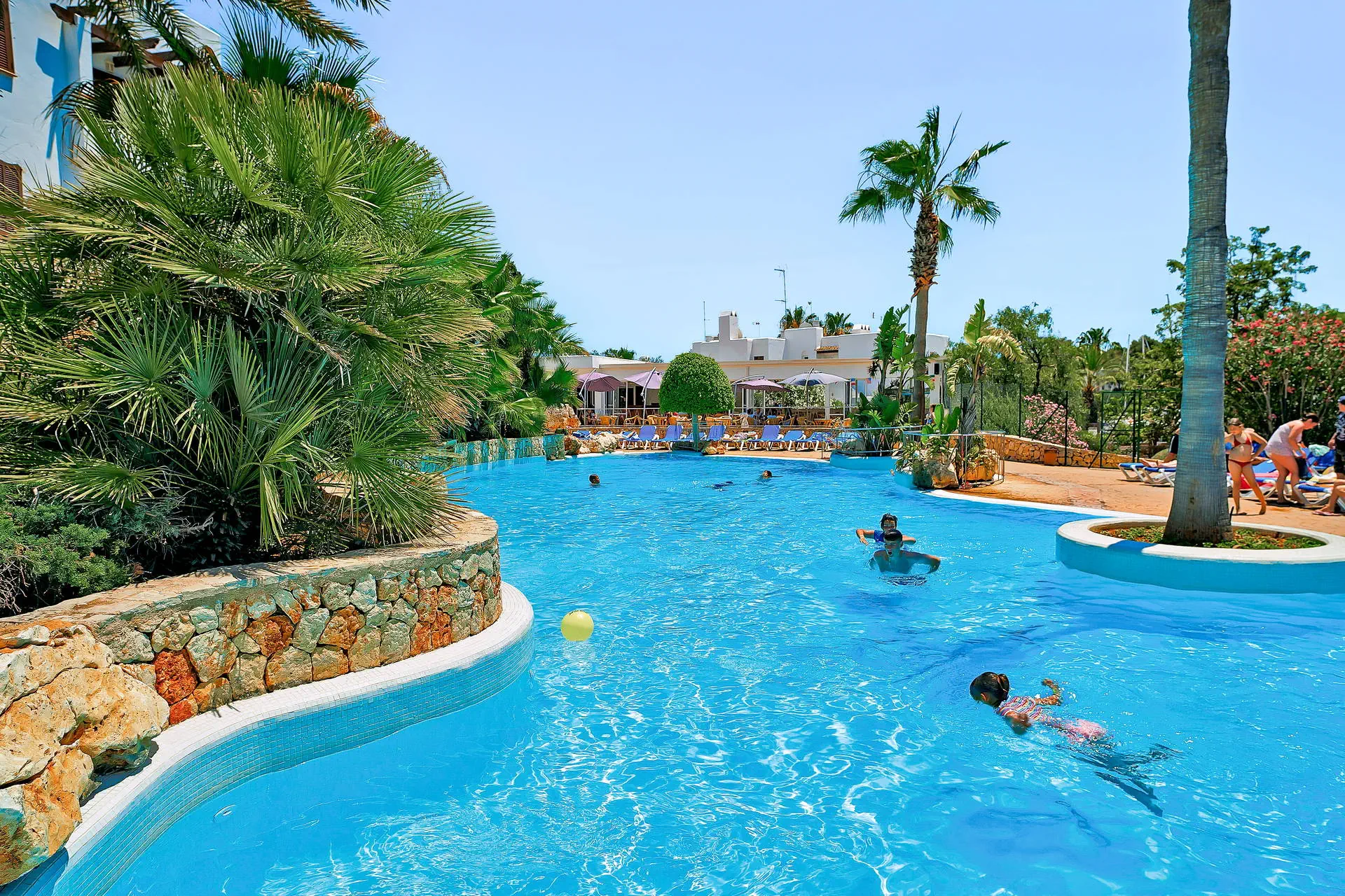 Do dyspozycji gości Hotel składa się z 5 budynków położonych rozległym ogrodzie. Recepcja 24 - godz., lobby, sejfy w recepcji (za opłatą ok. 15 EUR/tydzień i 10 EUR depozyt za klucz), czytelnia, przechowalnia bagażu. Restauracja i snack bar przy basenie, 3 baseny ze słodką wodą, 2 brodziki dla dzieci, taras słoneczny z leżakami i parasolami (bezpłatnie). Ręczniki plażowe dostępne za opłatą 5 EUR/tydzień i 10 EUR depozyt. Dla dzieci niewielki plac zabaw ze zjeżdżalniami i huśtawkami. Internet Na terenie całego hotelu (również w pokojach) internet Wi-Fi - płatny (ok. 5 EUR/doba), stanowisko internetowe - płatne (ok. 5 EUR/godz.). Kategoria lokalna *** Naszym zdaniem Świetny stosunek ceny do jakości + bliskość kurortu i malowniczego portu jachtowego. Doskonały wybór dla osób, które cenią sobie odpoczynek w spokojnym miejscu i chcą korzystać z atrakcji wakacyjnej miejscowości Cala D'Or. Plaża Do najbliższej plaży ok. 800 m, do głównej plaży kurortu ok. 1,5 km - dojazd darmowym busem hotelowym (kilka razy dziennie) lub mini pociągiem kursującym po kurorcie (opłata ok. 2 EUR/os./1 strona). Leżaki i parasole na plaży - za opłatą (ok. 8 EUR/szt.). Pokoje Obiekt posiada 227 przestronnych apartamentów, z pokojem dziennym i 1 lub 2 sypialniami. Położenie Hotel położony jest w południowo-wschodniej części wyspy, w malowniczym kurorcie Cala D'Or (1,5 km od centrum). Ok. 65 km od Palma de Mallorca i ok. 60 km od lotniska. W pobliżu marina, liczne bary i restauracje. Program sportowy i animacyjny Plac zabaw i mini klub dla dzieci w szczycie sezonu. Bezpłatnie: tenis stołowy, boccia, wielofunkcyjne boisko sportowe. Zajęcia sportowe i wieczorne animacje kilka razy w tygodniu. Za opłatą: bilard (1,50 EUR/gra), dyskoteka, sporty wodne na plaży. Strona www www.palia.es Wyżywienie All Inclusive: śniadania (08:00-10:00), późne śniadania (11:00-11:30), obiady (13:00-15:00) i kolacje (19:00-21:30) - bufet w restauracji głównej. Między posiłkami zimne i ciepłe przekąski, kawa, herbata, ciasto, lody. Lokalne napoje bezalkoholowe i alkohole serwowane w barze (10:30-22.:0). W trakcie posiłków wino, piwo, woda i napoje. Obowiązek noszenia bransoletki All Inclusive.