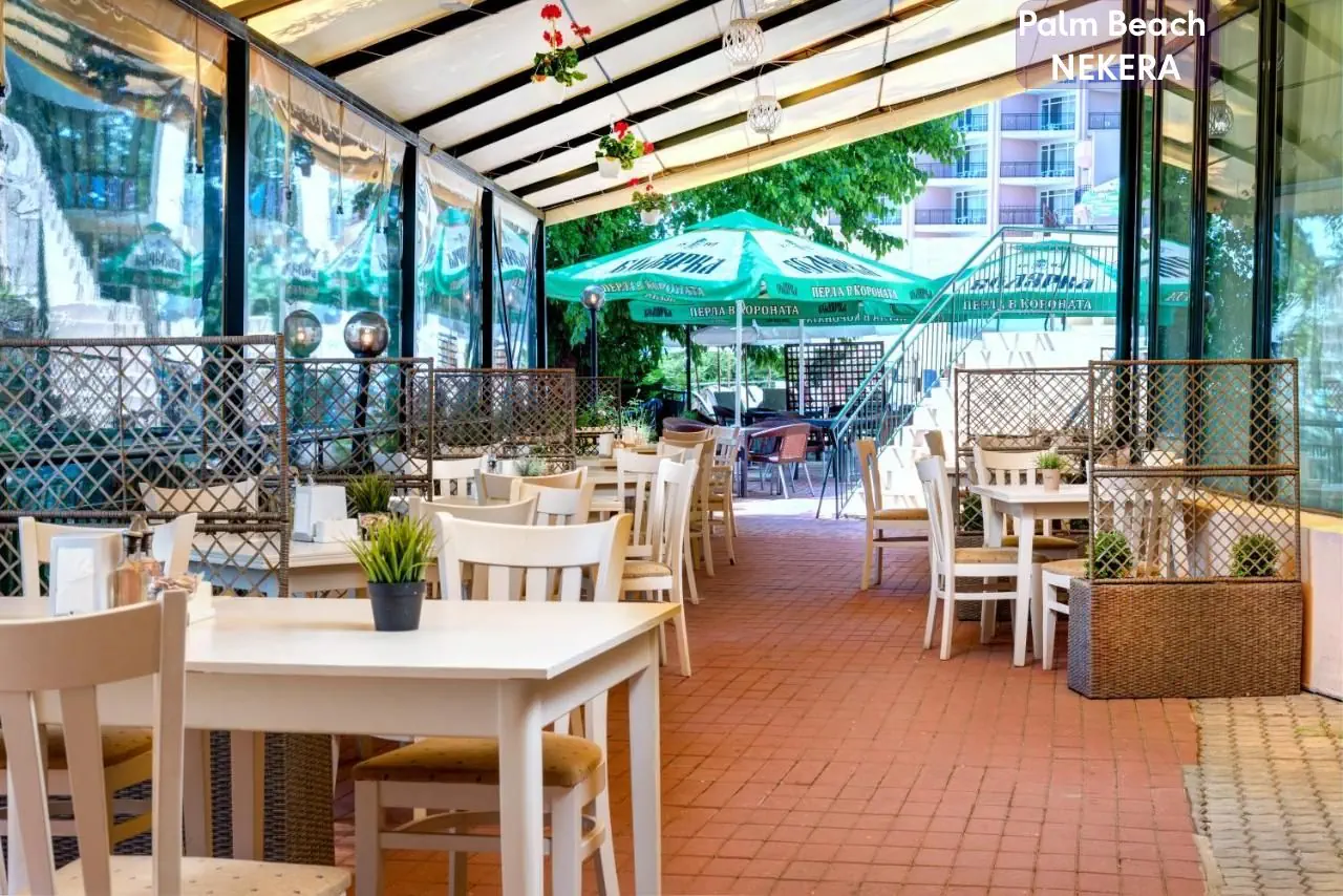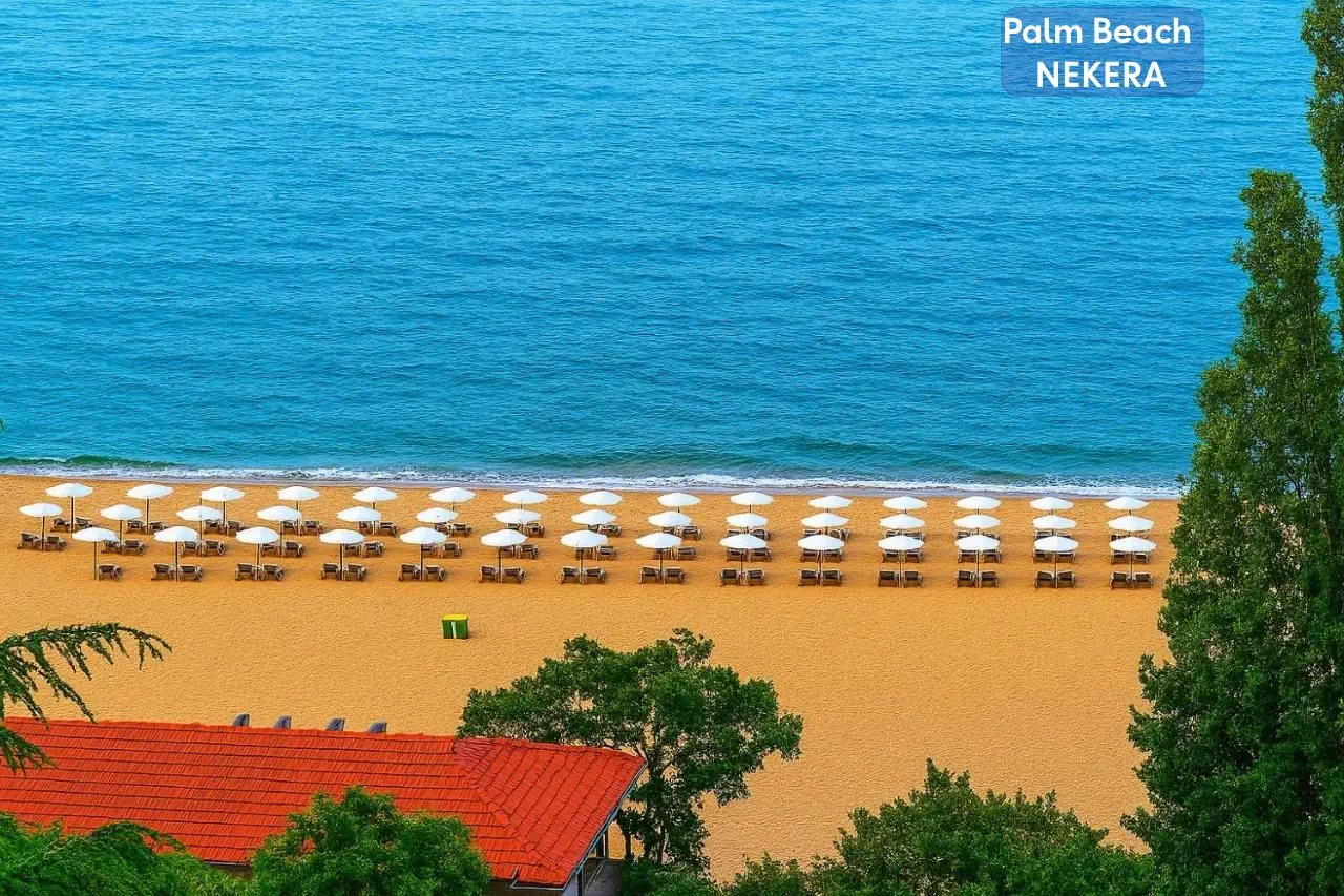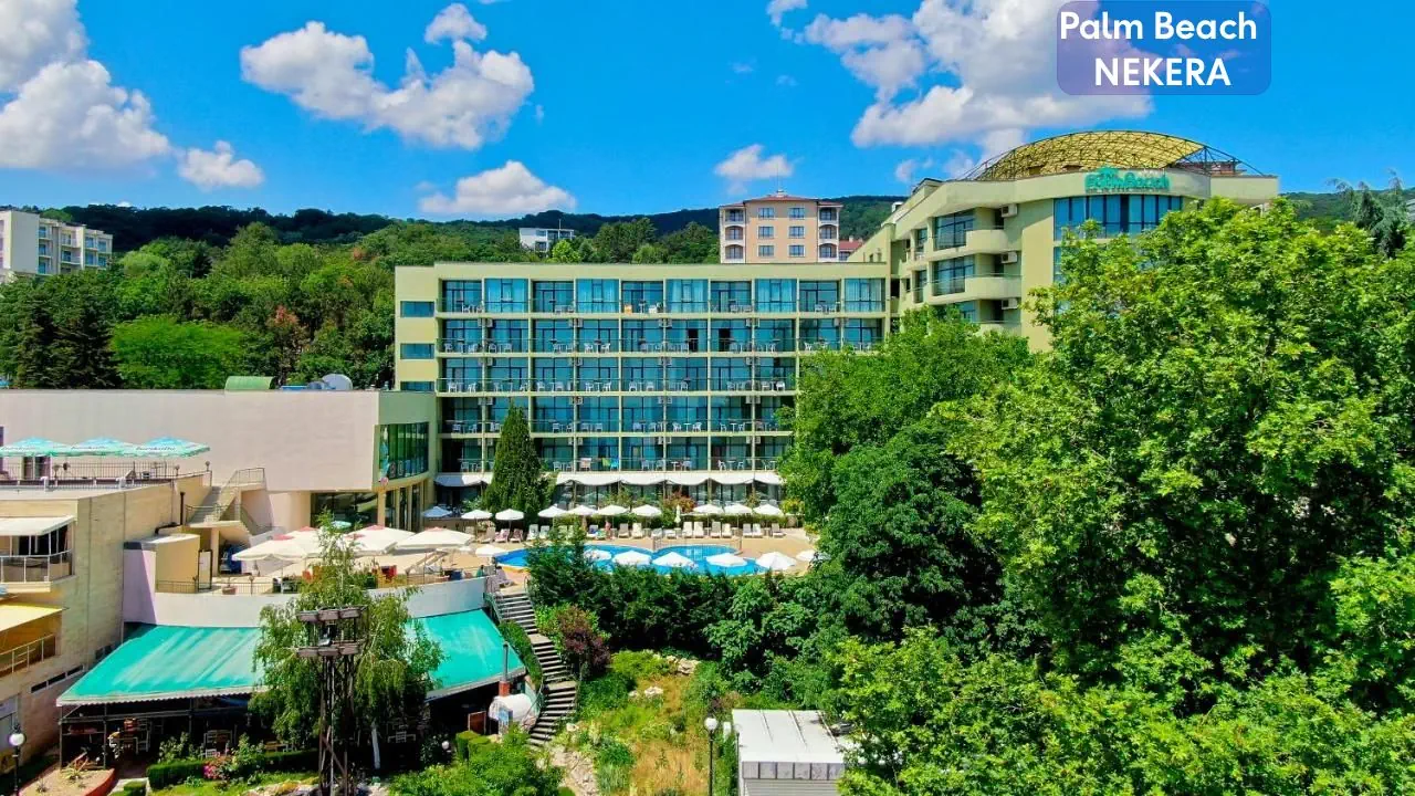 Hotel Palm Beach to czterogwiazdkowy obiekt położony w spokojnej, zielonej części popularnego kurortu Złote Piaski. Oferuje komfortowe warunki dla rodzin, par oraz osób szukających relaksu i bliskości natury. Dzięki dogodnej lokalizacji blisko plaży i udogodnieniom dostosowanym do potrzeb gości w każdym wieku, stanowi idealne miejsce na letni wypoczynek.