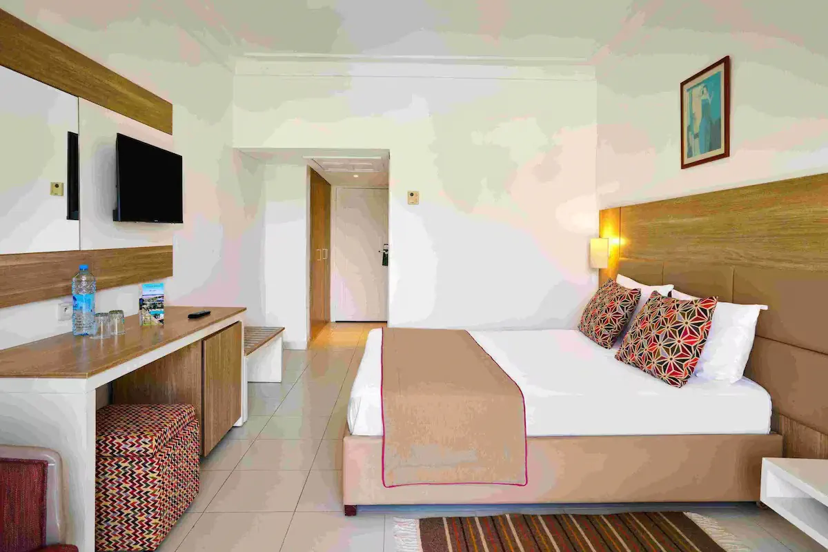 Dla max. 4 osób, Przestrzeń zewnętrzna: Balkon, Kanały telewizji: Polski, Angielski, Telefon w pokoju, prysznic, Powierzchnia pokoju: ok. 30 m2, Dostawka: łóżko standardowe, Rodzaj podłogi: płytki, Sprzątanie cykliczne, 1 sypialnia, Maksymalna liczba osób dorosłych: 4, Maksymalna liczba dzieci: 2, Widok na ogród,Widok na basen, Liczba łazienek: 1, Liczba toalet: 1, Klimatyzacja: Klimatyzacja centralna, Działa w godzinach: 24h