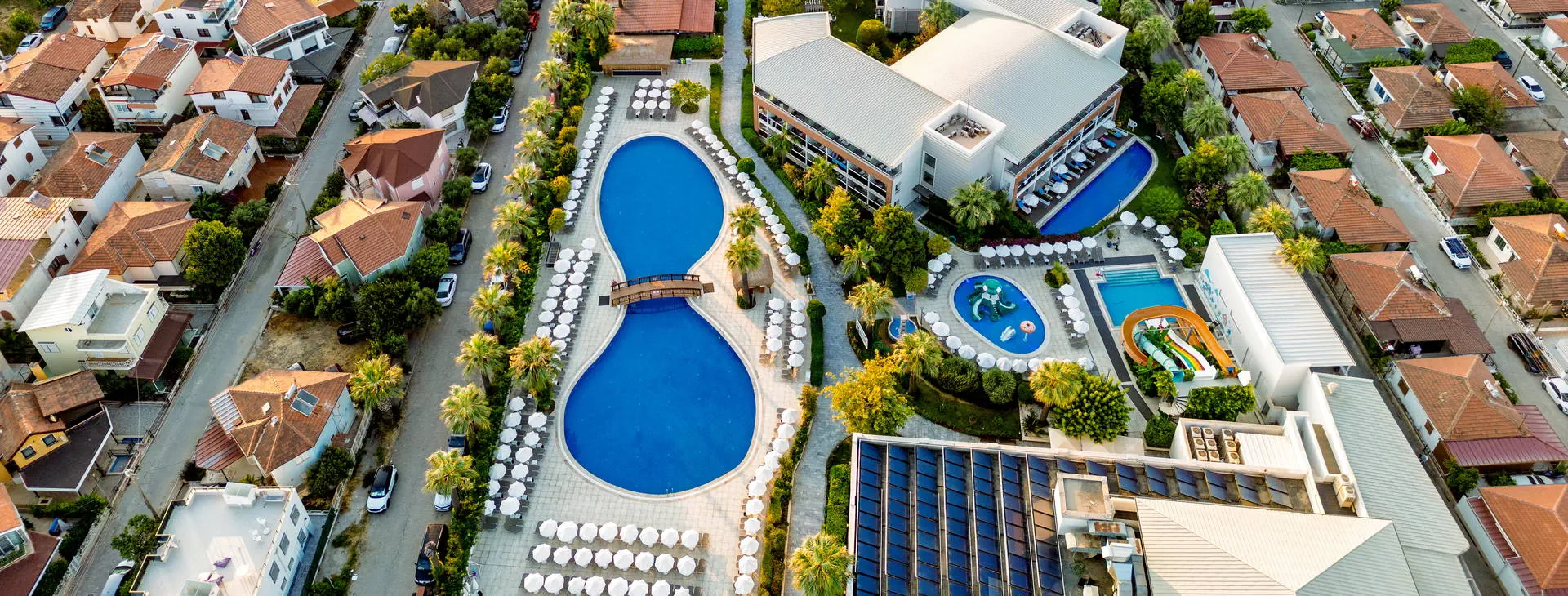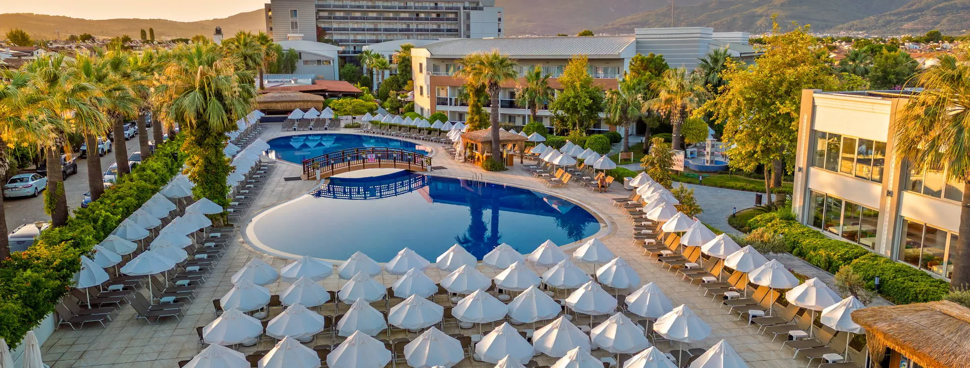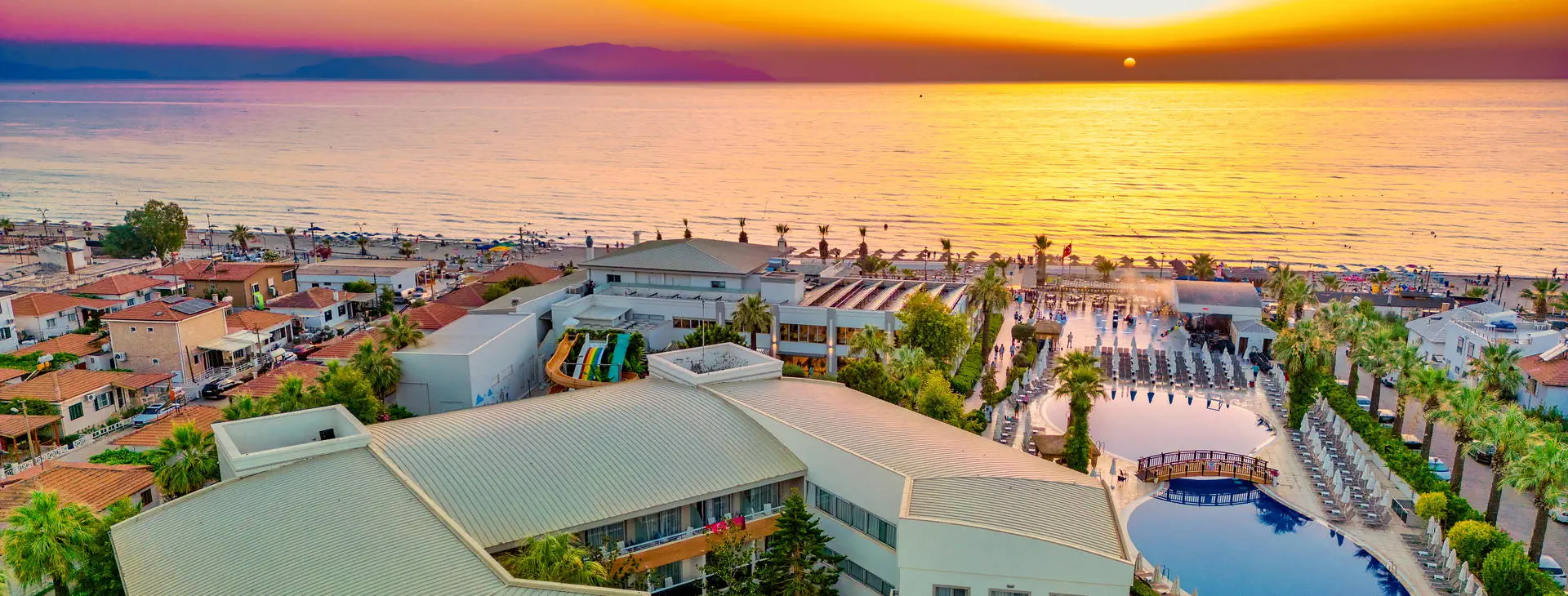 Położenie: Hotel położony jest ok. 4 km od centrum niedużej miejscowości Davutlar, ok. 15 km od centrum Kusadasi oraz ok. 120 km od lotniska w Bodrum. W niedalekiej okolicy hotelu znajdują się m.in. ruiny miasta Efez, monastyr Kursunlu, Park Narodowy Dilek oraz wiele innych atrakcji turystycznych. Plaża: Bezpośrednio przy szerokiej, piaszczystej, prywatnej plaży. Leżaki, parasole i ręczniki kąpielowe na plaży dostępne bezpłatnie. Do dyspozycji gości: Recepcja 24 h, lobby, restauracja, 3 restauracje a’la carte (rybna, turecka, włoska), 5 barów: lobby, przy basenie, snack, cafe oraz disco bar. Basen główny, basen ze zjeżdżalniami, brodzik dla dzieci ze zjeżdżalnią, leżaki, parasole i ręczniki kąpielowe przy basenie bezpłatnie. Za opłatą: fryzjer, fotograf, lekarz, butik. Wyżywienie: Ultra All Inclusive: śniadanie (07:00-09:30), późne śniadanie (09:30-10:30), lunch (12:30-14:00), obiadokolacja w formie bufetu (19:30-21:30), bufet dla dzieci (19:00-20:00). Przekąski w ciągu dnia, kawa, herbata, ciastka, lody, nocna przekąska. Możliwość skorzystania z restauracji a’la carte raz na tydzień (oprócz niedzieli) po wcześniejszej rezerwacji. W Cafe Bar w godz. (24:00-07:00) dostępne kanapki i ciastka. Lokalne napoje bezalkoholowe i alkoholowe dostępne 24 h w Cafe Bar. Za dopłatą: importowane napoje bezalkoholowe i alkoholowe, świeżo wyciskane soki, napoje butelkowane oraz w puszkach. Program sportowy i animacyjny: Hotel prowadzi animacje dzienne i wieczorne, aerobik, aqua aerobik, siatkówka plażowa, łaźnia turecka, sauna. Za opłatą: zabiegi i masaże w SPA, bilard (ok. 7 EUR/godz.), PlayStation, centrum sportów wodnych na plaży. Dla dzieci: hotelowy mini klub (4-12 lat), plac zabaw. Internet: Bezpłatny Internet Wi-Fi w lobby oraz przy basenie. Kategoria lokalna: ***** Strona www: