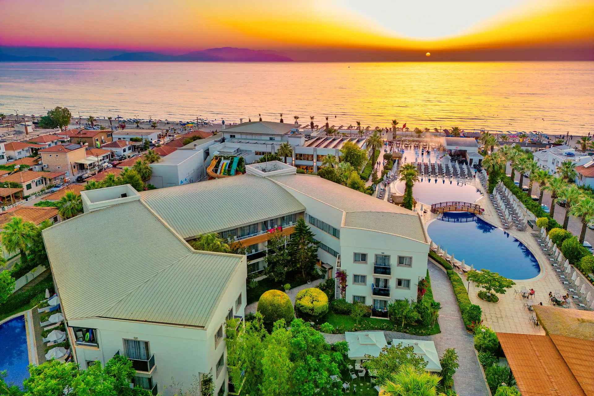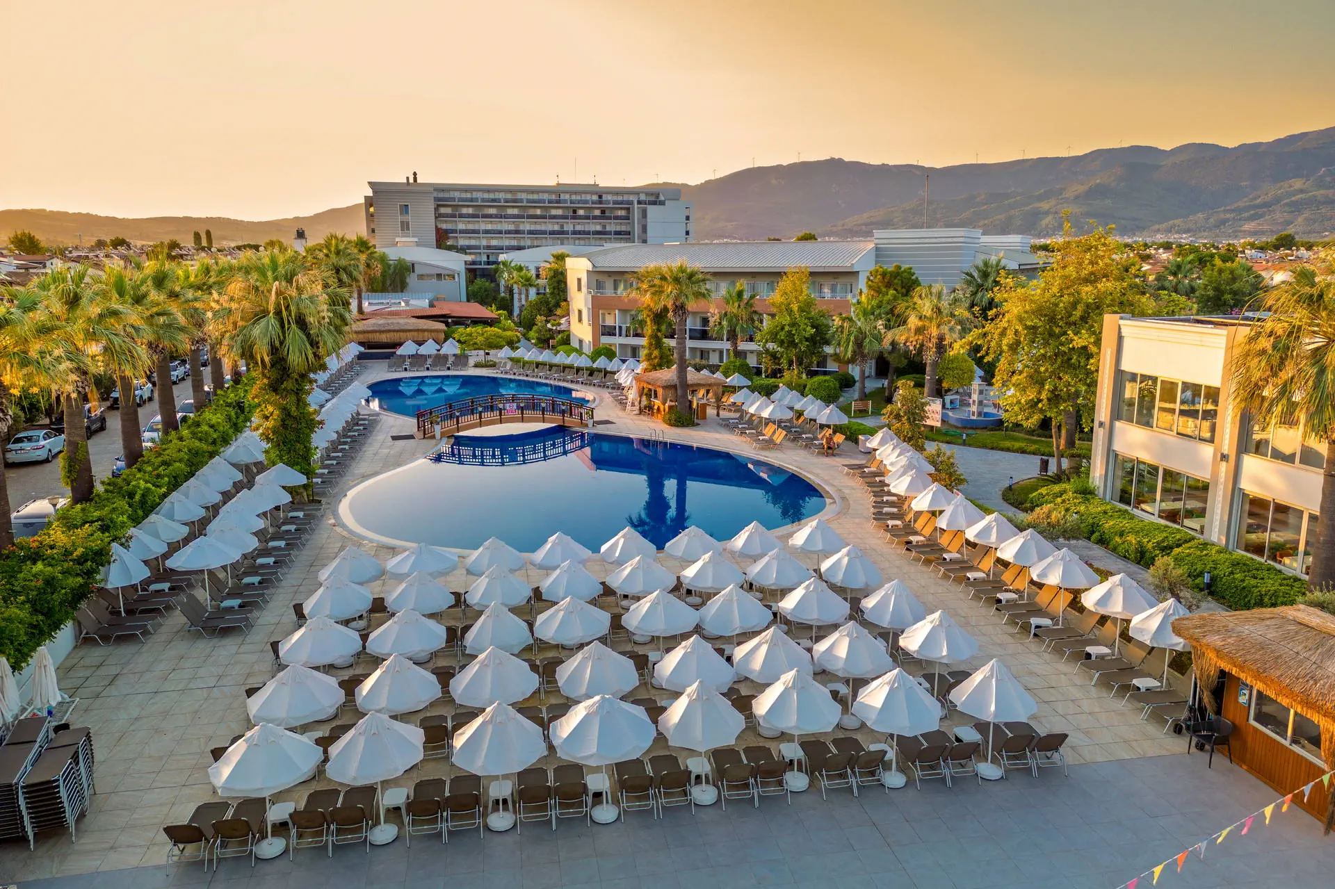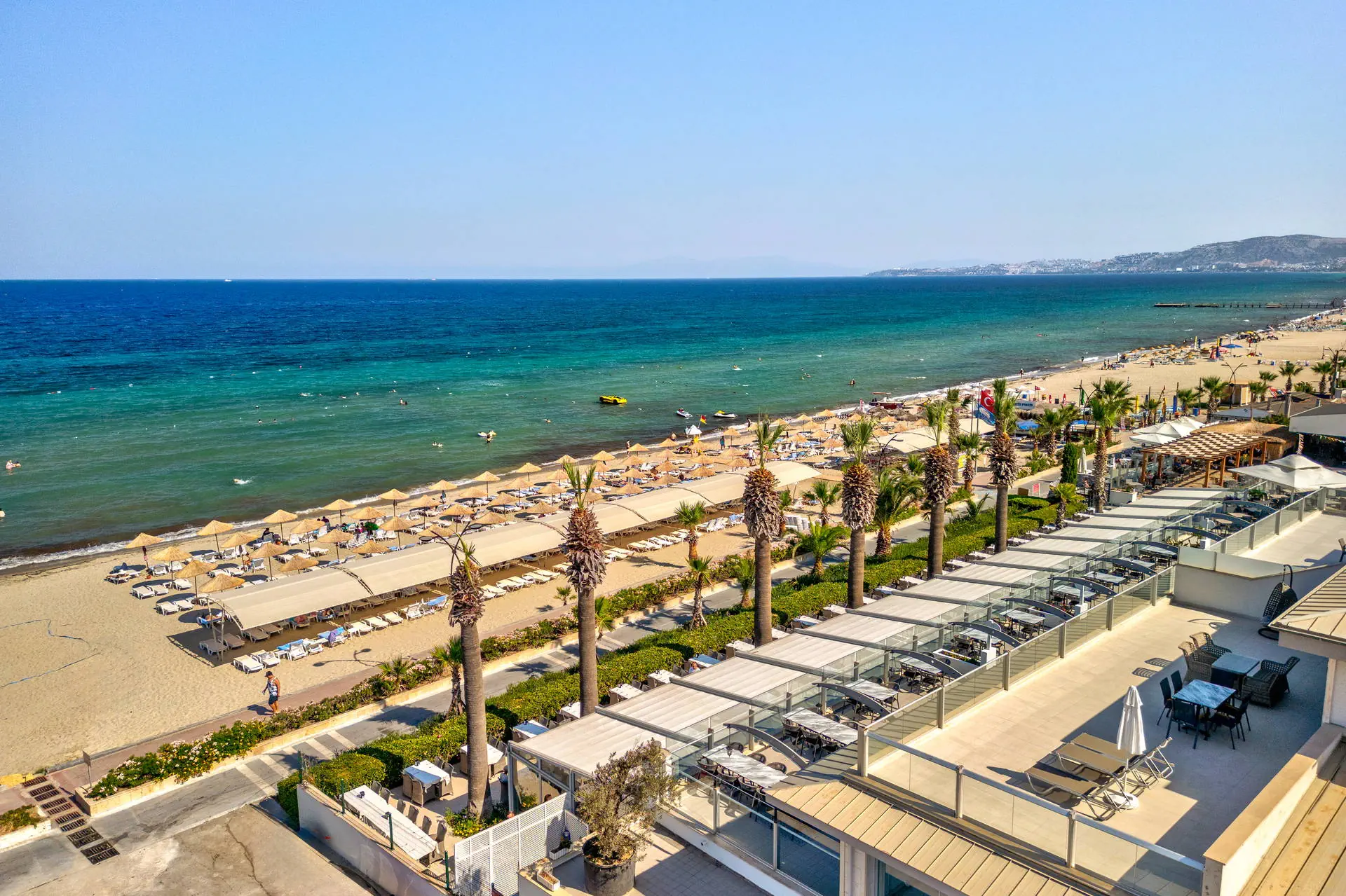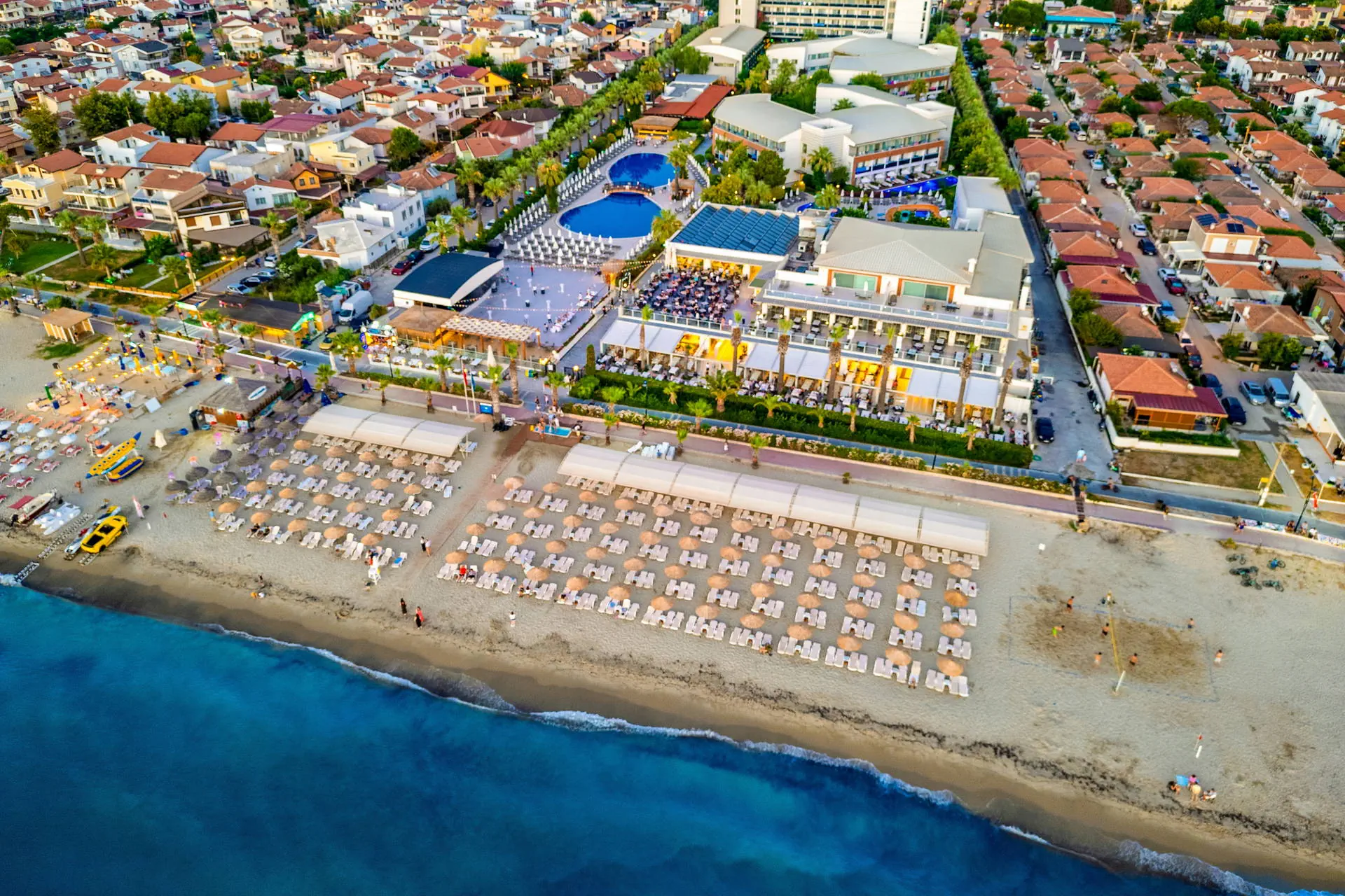 Położenie W niedalekiej okolicy znajdują się ruiny miasta Efez, monastyr Kursunlu oraz Park Narodowy Dilek. Obiekt znajduje się około 4 km od centrum miejscowości Davutlar. Do centrum Kusadasi jest około 15 km. Hotel położony jest około 120 km od lotniska w Bodrum. Plaża Plaża bezpośrednio przy hotelu. Szeroka, piaszczysta, prywatna. Leżaki, parasole i ręczniki kąpielowe dostępne bezpłatnie. Do dyspozycji gości Recepcja 24h, lobby. 1 basen główny, basen ze zjeżdżalniami, brodzik dla dzieci ze zjeżdżalnią, leżaki, parasole i ręczniki kąpielowe przy basenie bezpłatnie. Atrakcje dla dzieci: brodzik dla dzieci ze zjeżdżalnią. Restauracje: restauracja, 4 restauracje a’la carte (rybna, turecka, włoska, meksykańska), 6 barów: lobby, przy plaży, przy basenie, snack, cafe oraz disco bar. Pozostałe informacje: za opłatą: fryzjer, fotograf, lekarz, butik. Wyżywienie Rodzaje wyżywienia i posiłki: Ultra All Inclusive: Śniadanie: 07:00-09:30. Późne śniadanie: 09:30-10:30. Lunch: 12:30-14:00. Obiadokolacja: 19:00-21:00; posiłki w formie urozmaiconego bufetu.Bufet dla dzieci: 19:00-20:00. Nocna zupa w restauracji głównej: 00:00-01:00. Zimny bufet: 00:00-07:00. Przekąski w ciągu dnia, kawa, herbata, ciastka, lody. Restauracje: Możliwość skorzystania z restauracji a’la carte raz na tydzień (oprócz niedzieli) po wcześniejszej rezerwacji. Bary: Cafe Bar: kanapki i ciastka dostępne w godzinach 10:00-00:00. Lokalne napoje bezalkoholowe i alkoholowe (i niektóre importowane) dostępne 24 h w Cafe Bar. Pozostałe informacje: Za dopłatą: pozostałe importowane napoje bezalkoholowe i alkoholowe, świeżo wyciskane soki, napoje butelkowane oraz w puszkach. Program sportowy i animacyjny Dla każdego: animacje dzienne i wieczorne, aerobik, aqua aerobik, siatkówka plażowa, łaźnia turecka, sauna. Dla dzieci: hotelowy mini klub (4-12 lat), plac zabaw. Za dodatkową opłatą: zabiegi i masaże w SPA, bilard (ok. 7 EUR/godz.), PlayStation, centrum sportów wodnych na plaży, kort tenisowy (ok. 10 EUR za oświetlenie kortu, w ciągu dnia bezpłatne korzystanie). Internet Bezpłatny Internet Wi-Fi na terenie całego hotelu. Kategoria lokalna ***** Naszym zdaniem Lubiany przez naszych Klientów hotel, położony na zadbanym terenie tuż przy szerokiej, piaszczystej plaży, z łagodnym, piaszczystym zejściem do morza stanowiącej ogromny atut hotelu. Jest to idealne miejsce na wypoczynek zarówno we dwoje, jak również z dziećmi ze względu na liczne atrakcje, które hotel oferuje najmłodszym. Położenie na uboczu gwarantuje wypoczynek w spokoju, długa plaża pozwala na wieczorne spacery, natomiast bliskość Kusadasi na korzystanie z uroków turystycznego miasta. Strona www www.palmwings.com.tr