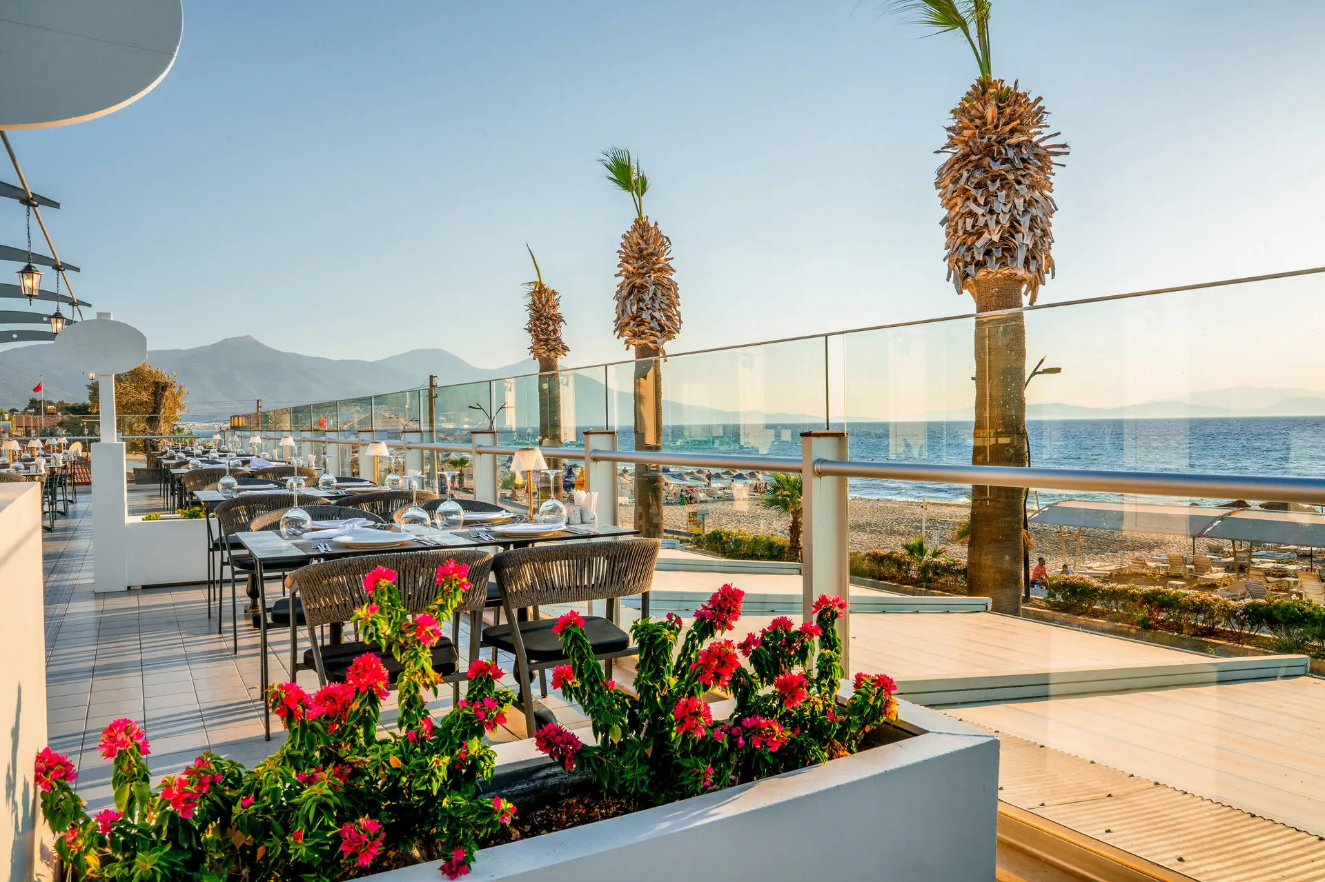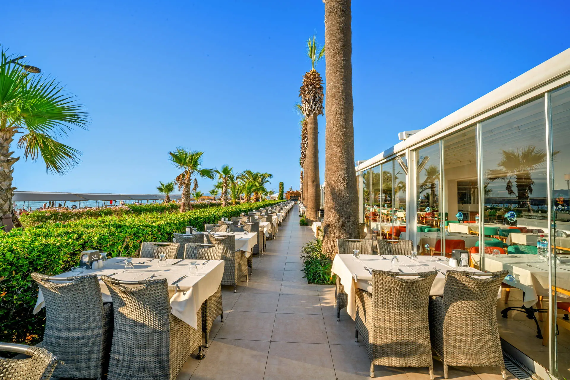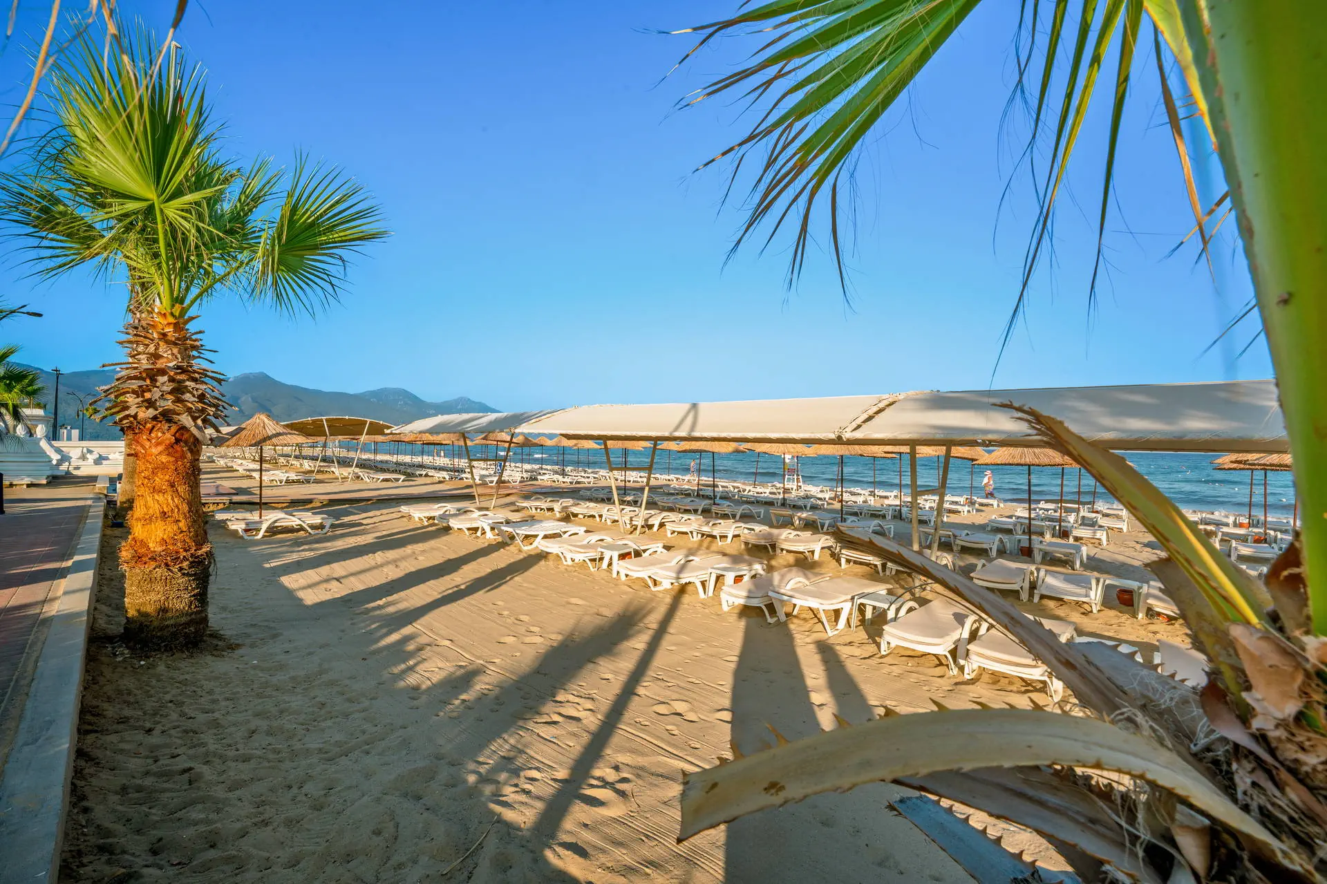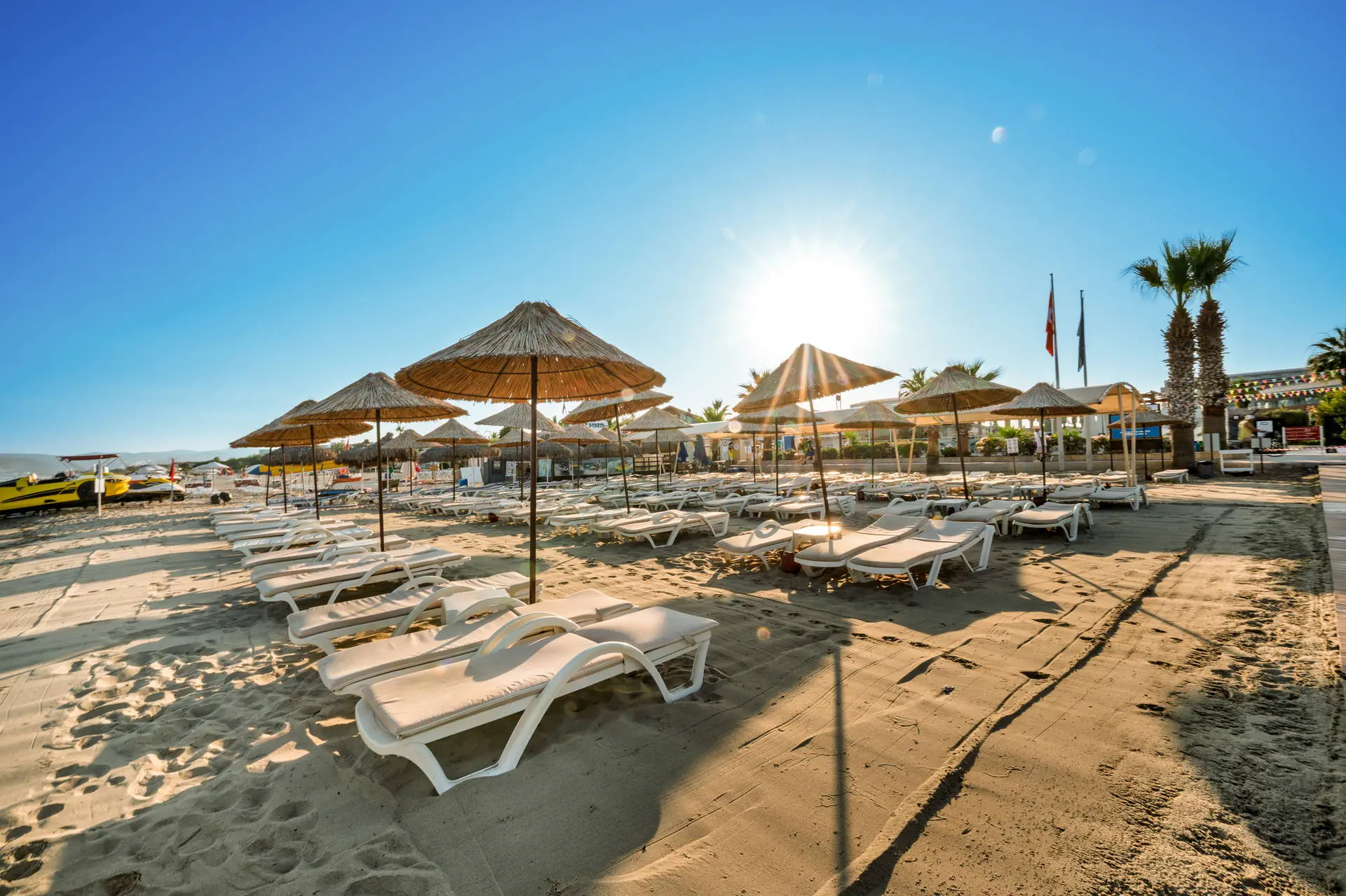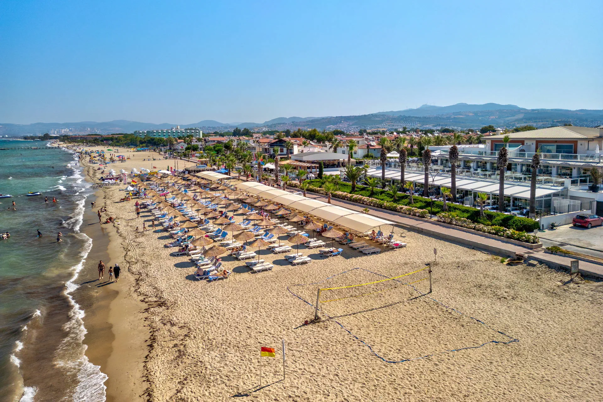 Położenie W niedalekiej okolicy znajdują się ruiny miasta Efez, monastyr Kursunlu oraz Park Narodowy Dilek. Obiekt znajduje się około 4 km od centrum miejscowości Davutlar. Do centrum Kusadasi jest około 15 km. Hotel położony jest około 120 km od lotniska w Bodrum. Plaża Plaża bezpośrednio przy hotelu. Szeroka, piaszczysta, prywatna. Leżaki, parasole i ręczniki kąpielowe dostępne bezpłatnie. Do dyspozycji gości Recepcja 24h, lobby. 1 basen główny, basen ze zjeżdżalniami, brodzik dla dzieci ze zjeżdżalnią, leżaki, parasole i ręczniki kąpielowe przy basenie bezpłatnie. Atrakcje dla dzieci: brodzik dla dzieci ze zjeżdżalnią. Restauracje: restauracja, 4 restauracje a’la carte (rybna, turecka, włoska, meksykańska), 6 barów: lobby, przy plaży, przy basenie, snack, cafe oraz disco bar. Pozostałe informacje: za opłatą: fryzjer, fotograf, lekarz, butik. Wyżywienie Rodzaje wyżywienia i posiłki: Ultra All Inclusive: Śniadanie: 07:00-09:30. Późne śniadanie: 09:30-10:30. Lunch: 12:30-14:00. Obiadokolacja: 19:00-21:00; posiłki w formie urozmaiconego bufetu.Bufet dla dzieci: 19:00-20:00. Nocna zupa w restauracji głównej: 00:00-01:00. Zimny bufet: 00:00-07:00. Przekąski w ciągu dnia, kawa, herbata, ciastka, lody. Restauracje: Możliwość skorzystania z restauracji a’la carte raz na tydzień (oprócz niedzieli) po wcześniejszej rezerwacji. Bary: Cafe Bar: kanapki i ciastka dostępne w godzinach 10:00-00:00. Lokalne napoje bezalkoholowe i alkoholowe (i niektóre importowane) dostępne 24 h w Cafe Bar. Pozostałe informacje: Za dopłatą: pozostałe importowane napoje bezalkoholowe i alkoholowe, świeżo wyciskane soki, napoje butelkowane oraz w puszkach. Program sportowy i animacyjny Dla każdego: animacje dzienne i wieczorne, aerobik, aqua aerobik, siatkówka plażowa, łaźnia turecka, sauna. Dla dzieci: hotelowy mini klub (4-12 lat), plac zabaw. Za dodatkową opłatą: zabiegi i masaże w SPA, bilard (ok. 7 EUR/godz.), PlayStation, centrum sportów wodnych na plaży, kort tenisowy (ok. 10 EUR za oświetlenie kortu, w ciągu dnia bezpłatne korzystanie). Internet Bezpłatny Internet Wi-Fi na terenie całego hotelu. Kategoria lokalna ***** Naszym zdaniem Lubiany przez naszych Klientów hotel, położony na zadbanym terenie tuż przy szerokiej, piaszczystej plaży, z łagodnym, piaszczystym zejściem do morza stanowiącej ogromny atut hotelu. Jest to idealne miejsce na wypoczynek zarówno we dwoje, jak również z dziećmi ze względu na liczne atrakcje, które hotel oferuje najmłodszym. Położenie na uboczu gwarantuje wypoczynek w spokoju, długa plaża pozwala na wieczorne spacery, natomiast bliskość Kusadasi na korzystanie z uroków turystycznego miasta. Strona www www.palmwings.com.tr