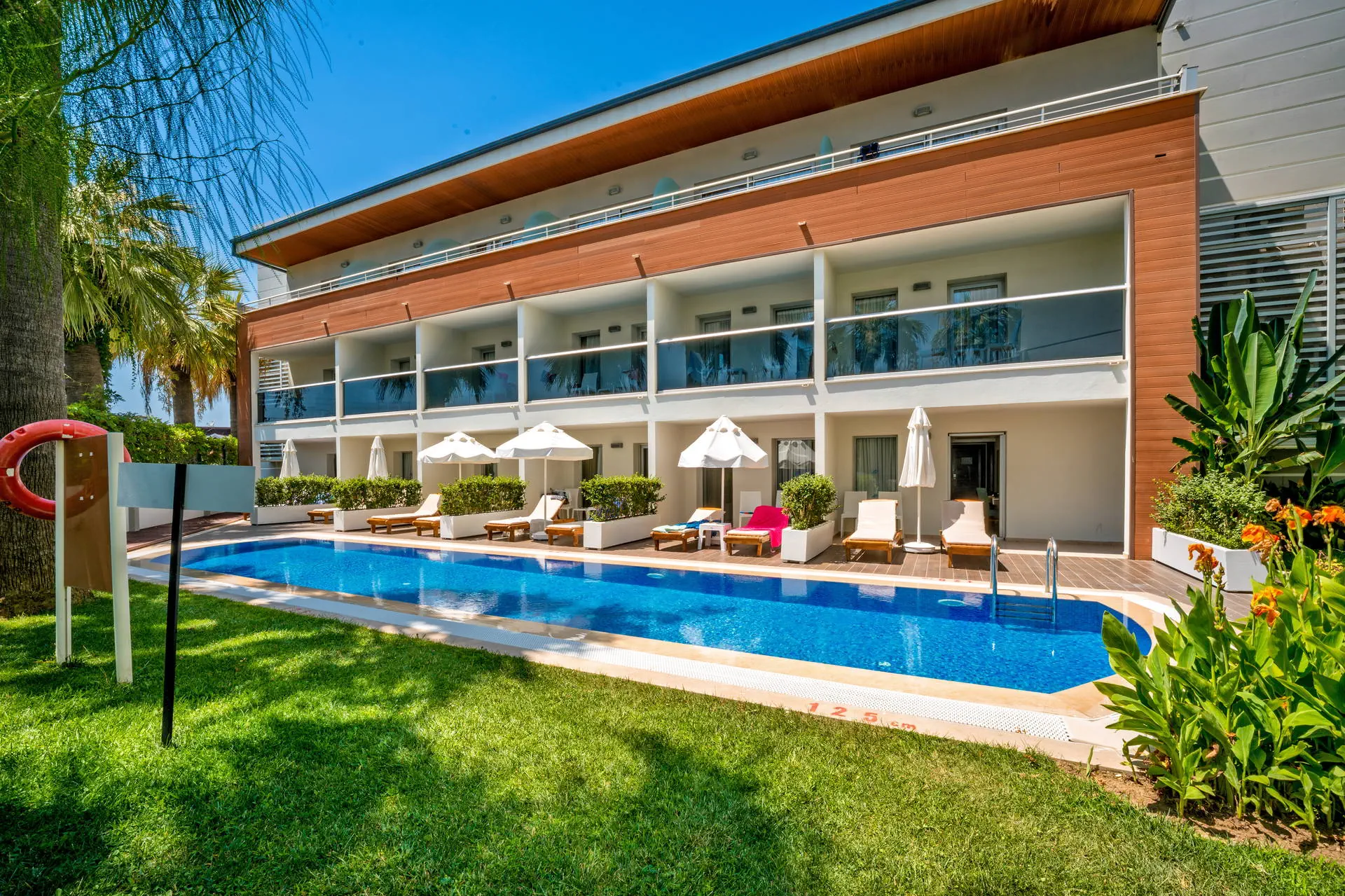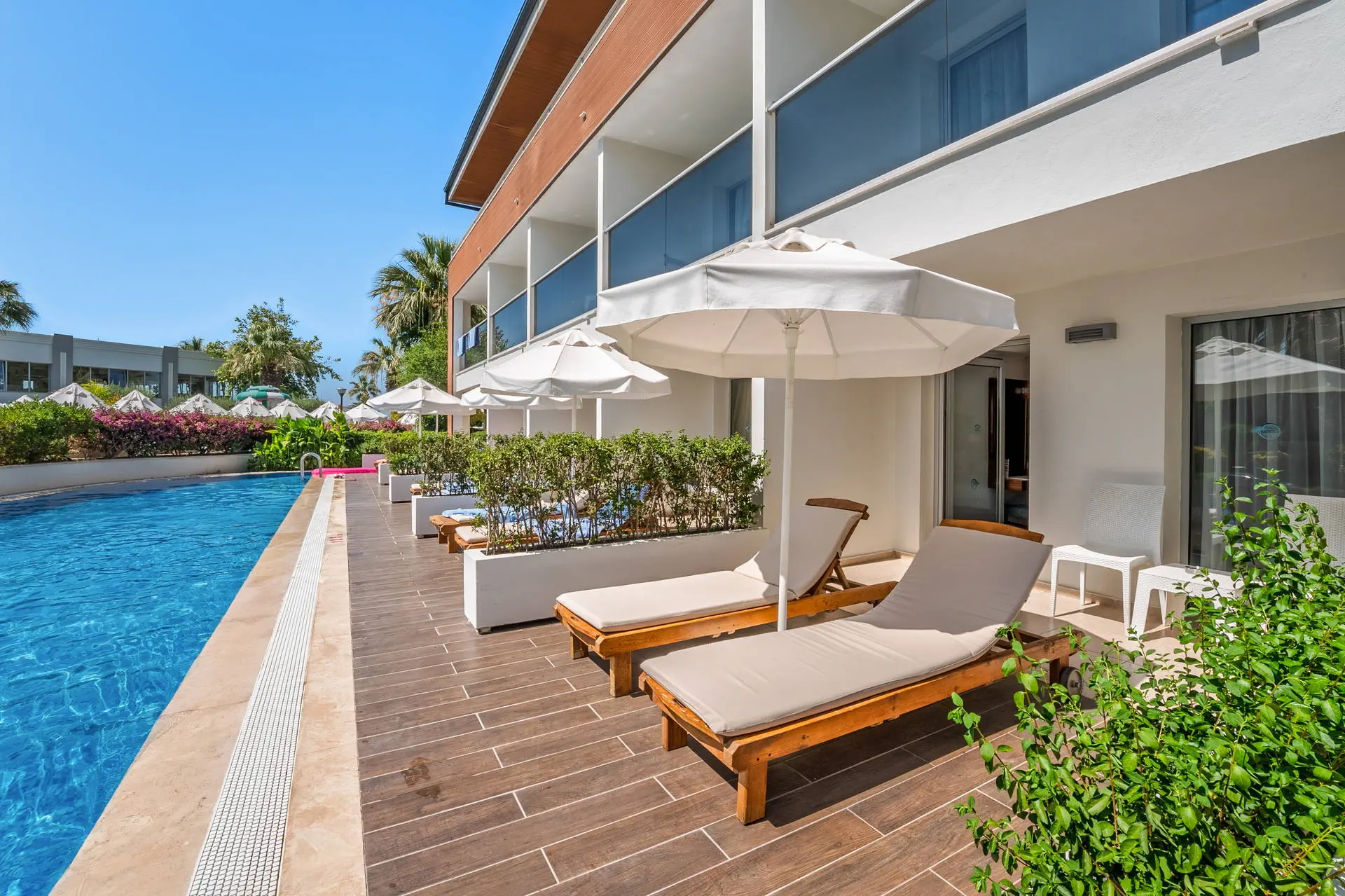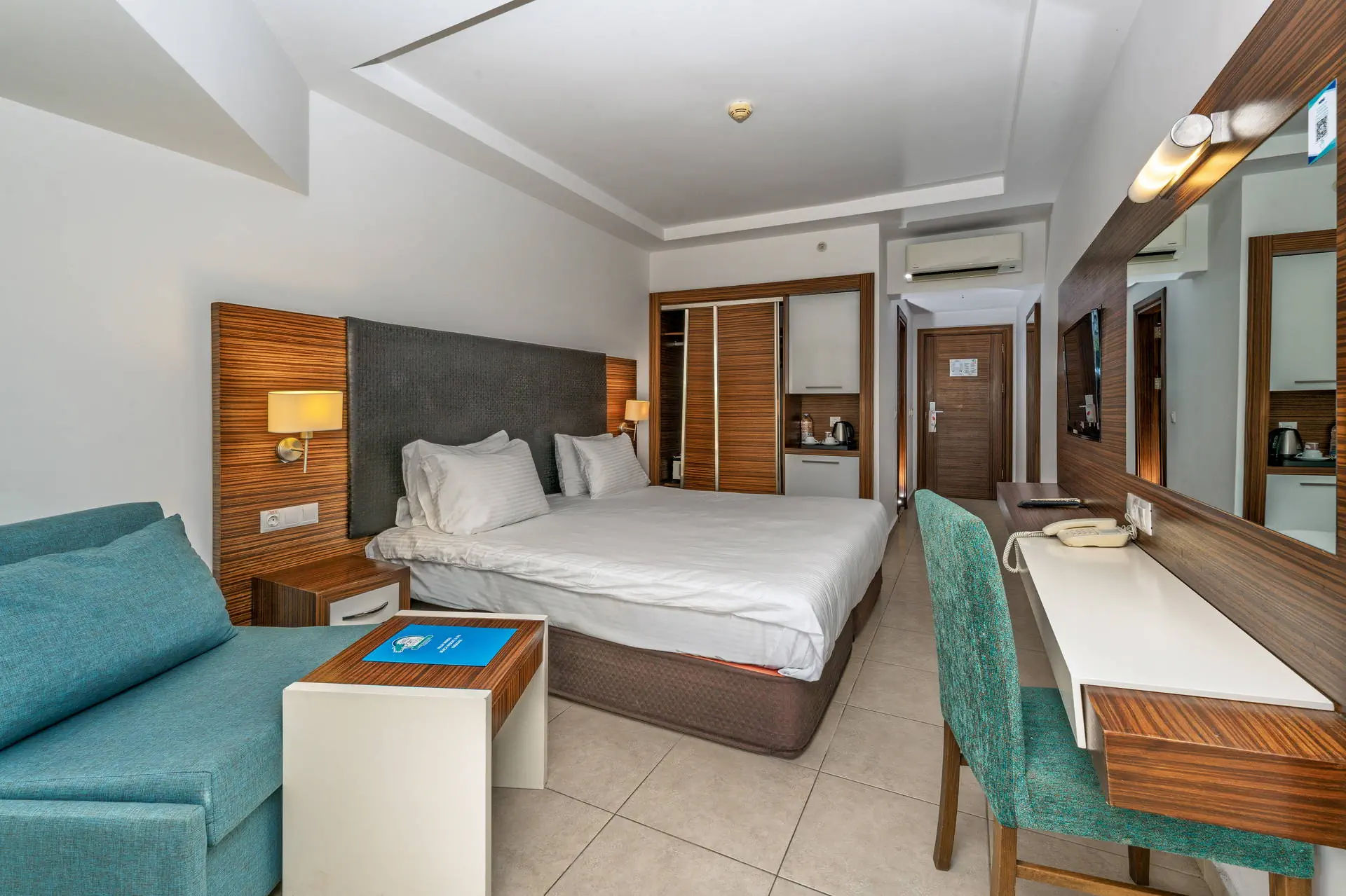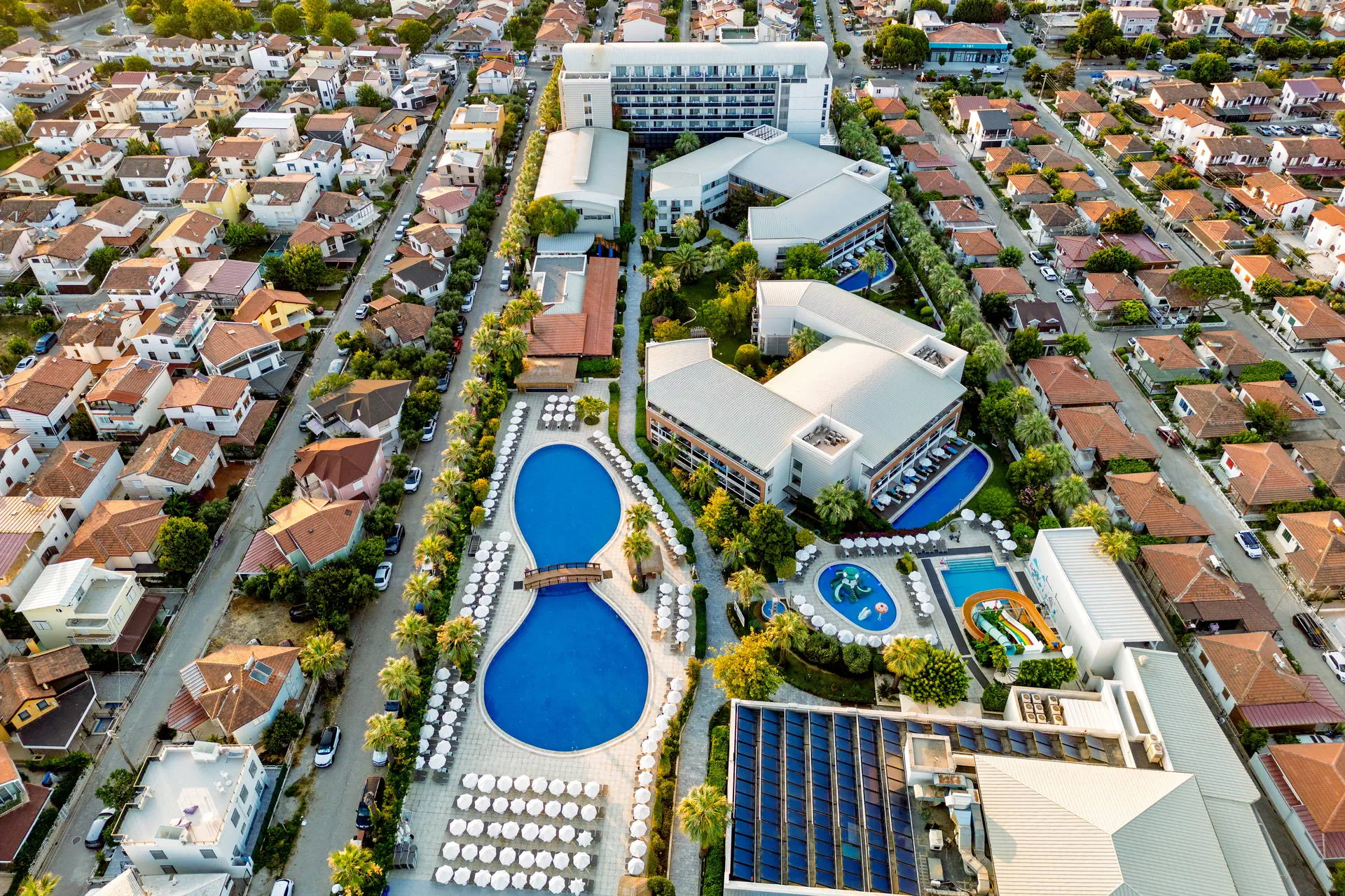 Położenie W niedalekiej okolicy znajdują się ruiny miasta Efez, monastyr Kursunlu oraz Park Narodowy Dilek. Obiekt znajduje się około 4 km od centrum miejscowości Davutlar. Do centrum Kusadasi jest około 15 km. Hotel położony jest około 120 km od lotniska w Bodrum. Plaża Plaża bezpośrednio przy hotelu. Szeroka, piaszczysta, prywatna. Leżaki, parasole i ręczniki kąpielowe dostępne bezpłatnie. Do dyspozycji gości Recepcja 24h, lobby. 1 basen główny, basen ze zjeżdżalniami, brodzik dla dzieci ze zjeżdżalnią, leżaki, parasole i ręczniki kąpielowe przy basenie bezpłatnie. Atrakcje dla dzieci: brodzik dla dzieci ze zjeżdżalnią. Restauracje: restauracja, 4 restauracje a’la carte (rybna, turecka, włoska, meksykańska), 6 barów: lobby, przy plaży, przy basenie, snack, cafe oraz disco bar. Pozostałe informacje: za opłatą: fryzjer, fotograf, lekarz, butik. Wyżywienie Rodzaje wyżywienia i posiłki: Ultra All Inclusive: Śniadanie: 07:00-09:30. Późne śniadanie: 09:30-10:30. Lunch: 12:30-14:00. Obiadokolacja: 19:00-21:00; posiłki w formie urozmaiconego bufetu.Bufet dla dzieci: 19:00-20:00. Nocna zupa w restauracji głównej: 00:00-01:00. Zimny bufet: 00:00-07:00. Przekąski w ciągu dnia, kawa, herbata, ciastka, lody. Restauracje: Możliwość skorzystania z restauracji a’la carte raz na tydzień (oprócz niedzieli) po wcześniejszej rezerwacji. Bary: Cafe Bar: kanapki i ciastka dostępne w godzinach 10:00-00:00. Lokalne napoje bezalkoholowe i alkoholowe (i niektóre importowane) dostępne 24 h w Cafe Bar. Pozostałe informacje: Za dopłatą: pozostałe importowane napoje bezalkoholowe i alkoholowe, świeżo wyciskane soki, napoje butelkowane oraz w puszkach. Program sportowy i animacyjny Dla każdego: animacje dzienne i wieczorne, aerobik, aqua aerobik, siatkówka plażowa, łaźnia turecka, sauna. Dla dzieci: hotelowy mini klub (4-12 lat), plac zabaw. Za dodatkową opłatą: zabiegi i masaże w SPA, bilard (ok. 7 EUR/godz.), PlayStation, centrum sportów wodnych na plaży, kort tenisowy (ok. 10 EUR za oświetlenie kortu, w ciągu dnia bezpłatne korzystanie). Internet Bezpłatny Internet Wi-Fi na terenie całego hotelu. Kategoria lokalna ***** Naszym zdaniem Lubiany przez naszych Klientów hotel, położony na zadbanym terenie tuż przy szerokiej, piaszczystej plaży, z łagodnym, piaszczystym zejściem do morza stanowiącej ogromny atut hotelu. Jest to idealne miejsce na wypoczynek zarówno we dwoje, jak również z dziećmi ze względu na liczne atrakcje, które hotel oferuje najmłodszym. Położenie na uboczu gwarantuje wypoczynek w spokoju, długa plaża pozwala na wieczorne spacery, natomiast bliskość Kusadasi na korzystanie z uroków turystycznego miasta. Strona www www.palmwings.com.tr