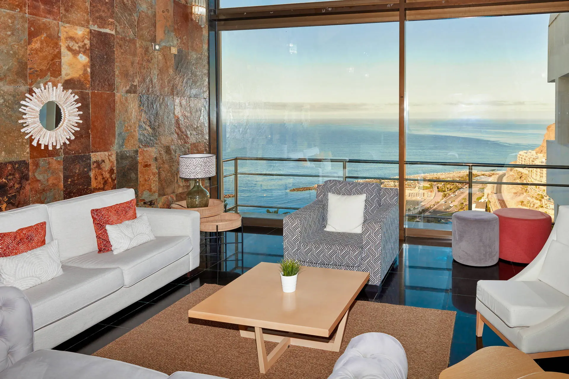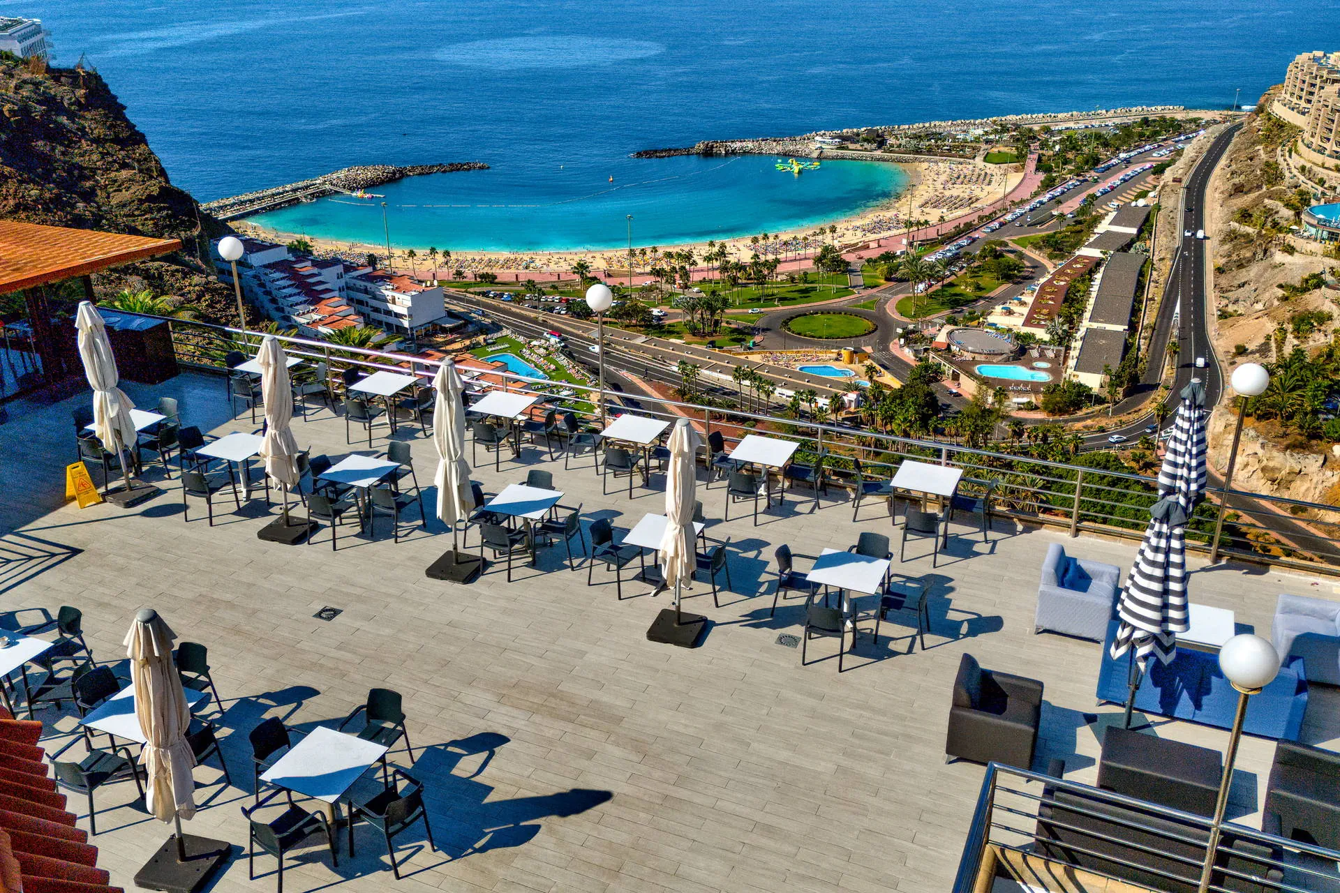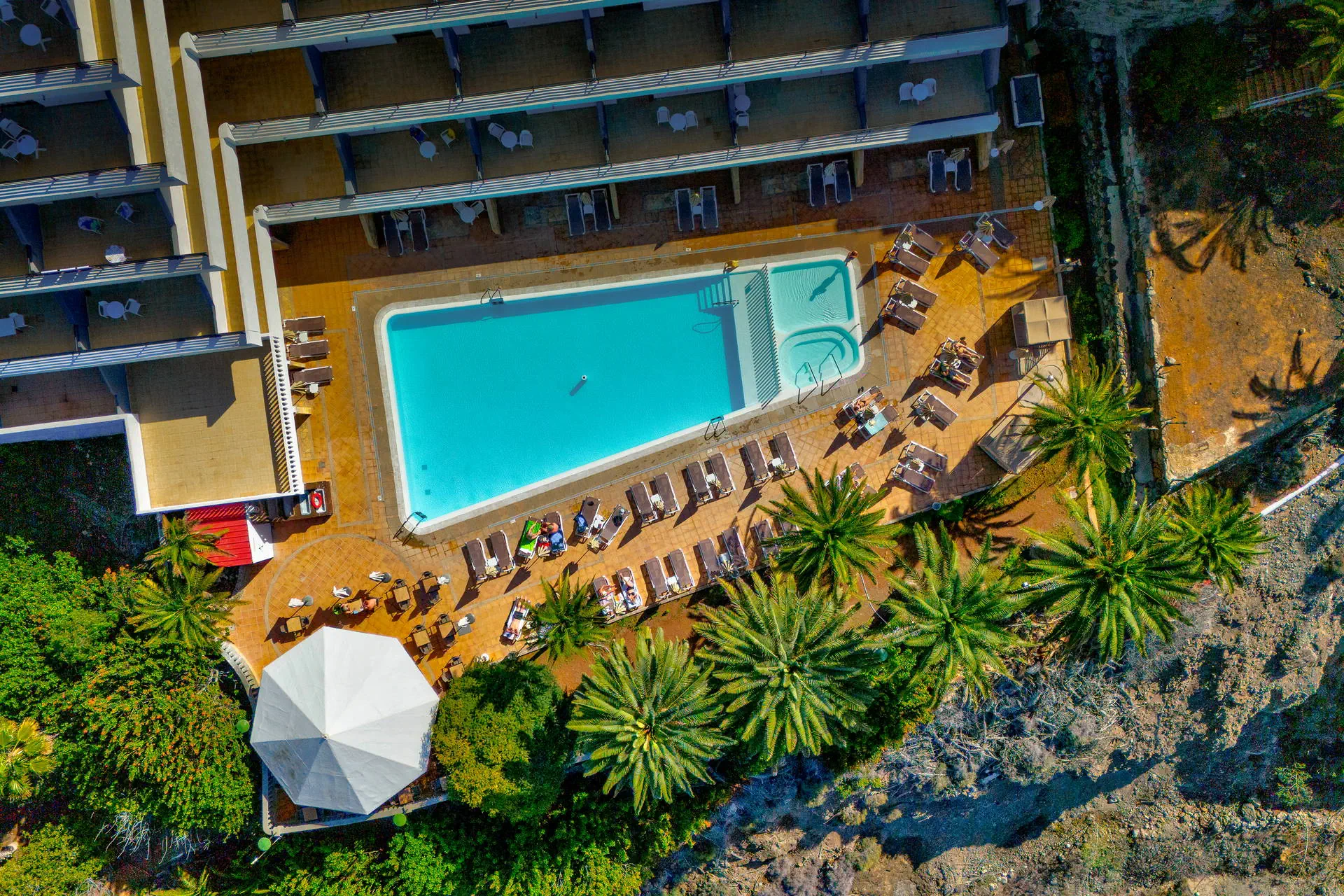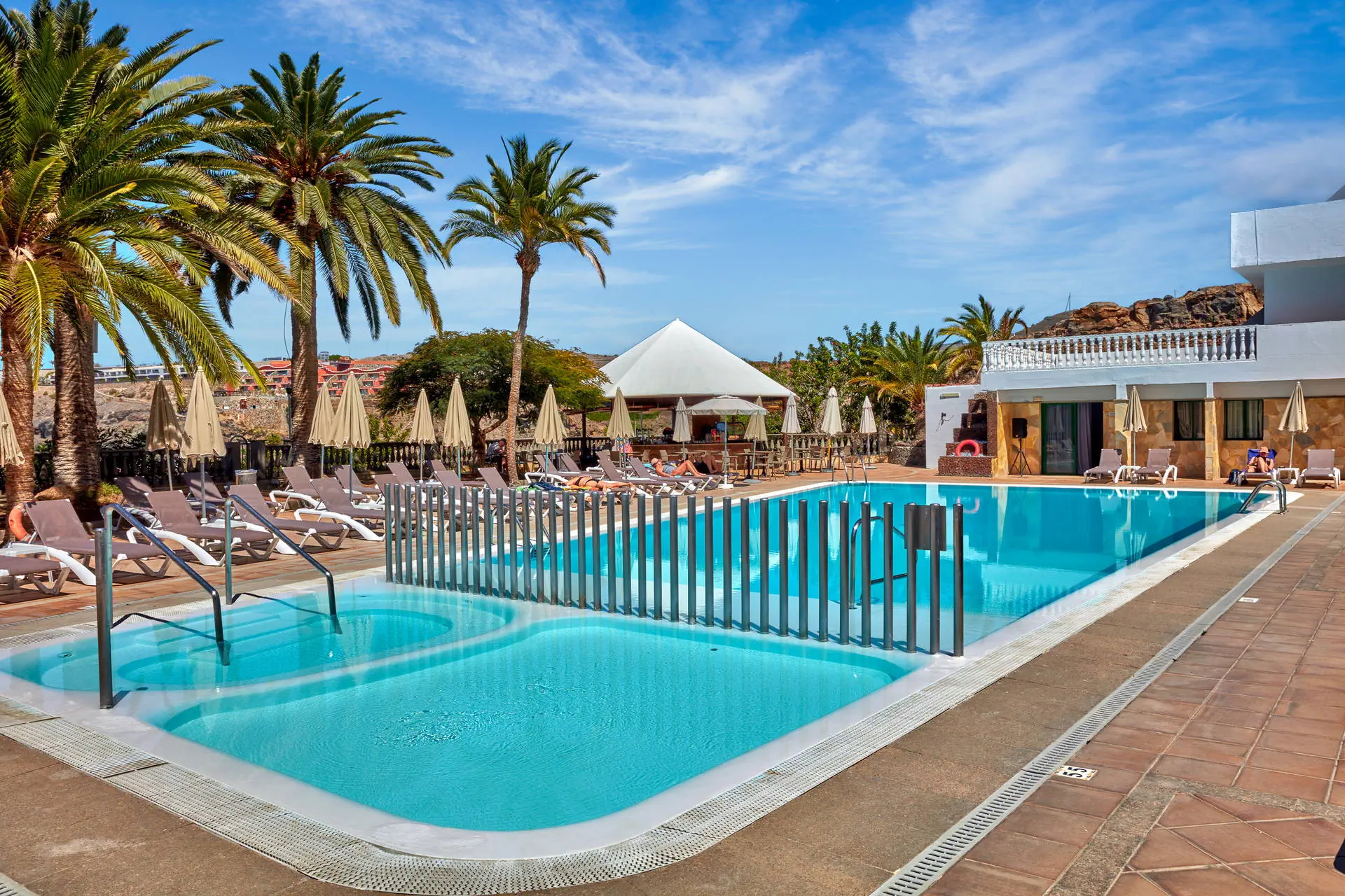 Położenie Położony na wzniesieniu w kameralnym części kurortu Puerto Rico. W pobliżu hotelu sklepy, bary oraz restauracje. Do centrum miasta ok. 1 km. Do lotniska ok. 50 km. Plaża Piaszczysta, zatokowa Plaża de Amadores ok. 700 m od hotelu. Leżaki i parasole na plaży płatne. Do dyspozycji gości Recepcja, windy, snack bar, basen (słodka woda, podgrzewany od listopada do marca), jacuzzi, taras słoneczny z leżakami, mini market. Hotel nie zapewnia ręczników basenowych. Pokoje Hotel zapewnia zakwaterowanie w przestronnych apartamentach. Wszystkie z pokojem dzienny i osobna sypialnią, wyposażone w łazienkę (prysznic lub wanna, suszarka do włosów), TV-sat, sejf (płatny), aneks kuchenny (lodówka, toster, zestaw do robienia kawy i herbaty, ekspres do kawy), telefon, taras lub balkon (meble balkonowe). Dziecko do lat 2 wlicza się w maksymalne obłożenie w pokoju. Apartament economy(pow. ok. 42m2) - dla max. 3 osób. Apartament z widokiem na ocean (pow. ok. 42m2) - dla max. 4 osób Apartament superior z widokiem na ocean (pow. ok. 42m2) - dla max. 4 osób. Częściowo z nowszym umeblowaniem. Wyżywienie Bez wyżywienia. Program sportowy i animacyjny Hotel nie prowadzi animacji. Płatny: bilard Internet Wi-Fi gratis przy recepcji. W pokojach za dodatkową opłatą. Kategoria lokalna * Naszym zdaniem Atrakcyjne cenowo i funkcjonalne zakwaterowanie tuż przy znanej Playa de Amadores. Idealna opcja dla wszystkich tych, dla których hotel stanowi bazę wypadową do poznawania wyspy. Do tego naprawdę dobrze utrzymany hotel i za to nasza ocena. Strona www www.palmeramar.com
