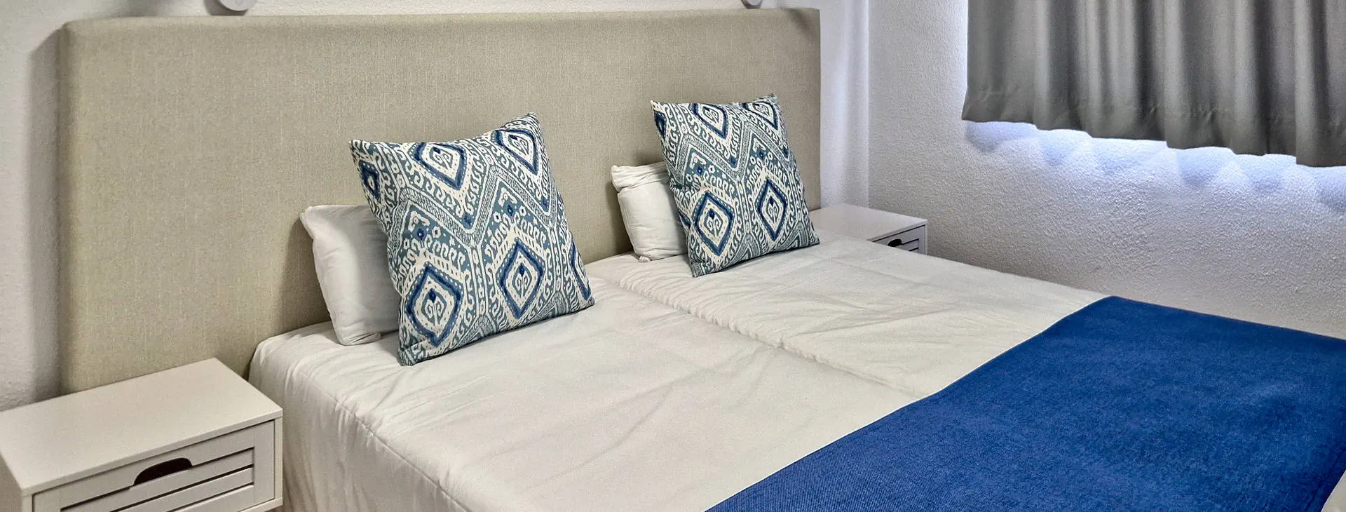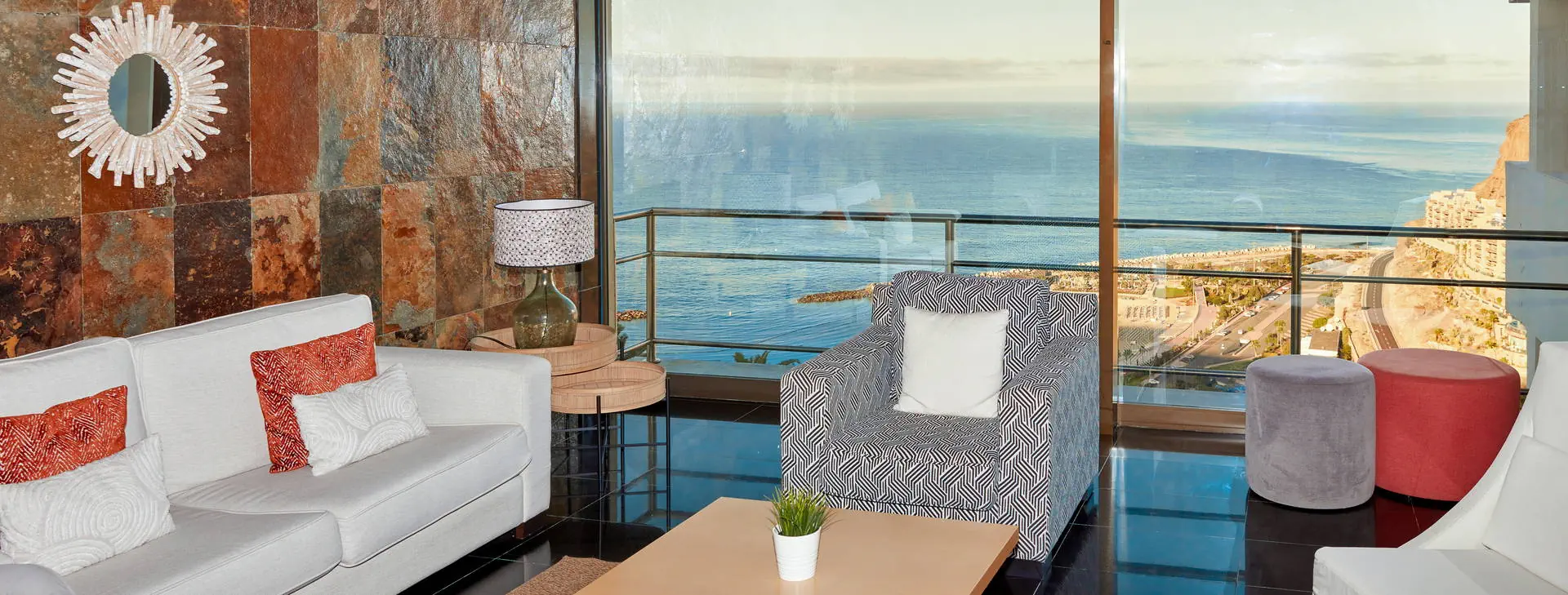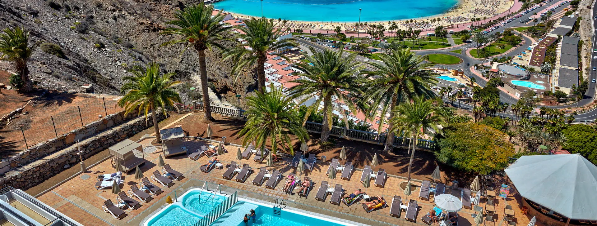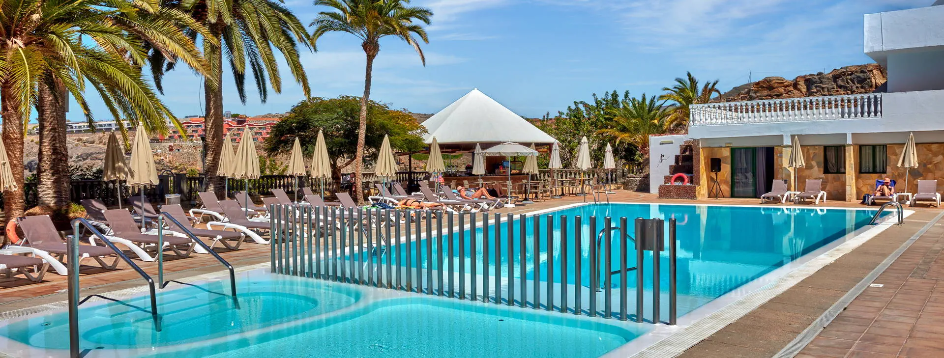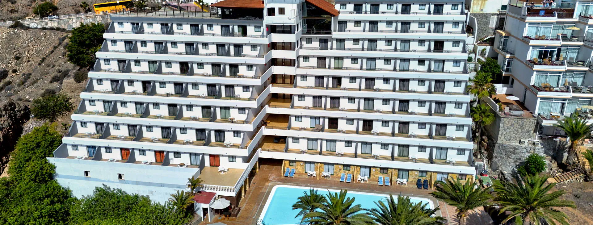 Położenie: Położony na wzniesieniu w kameralnym części kurortu Puerto Rico. W pobliżu hotelu sklepy, bary oraz restauracje. Do centrum miasta ok. 1 km. Do lotniska ok. 50 km. Plaża: Piaszczysta, zatokowa Plaża de Amadores ok. 700 m od hotelu. Leżaki i parasole na plaży płatne. Do dyspozycji gości: Recepcja, windy, snack bar, basen (słodka woda, podgrzewany od listopada do marca), jacuzzi, taras słoneczny z leżakami, mini market. Hotel nie zapewnia ręczników basenowych. Pokoje: Hotel zapewnia zakwaterowanie w przestronnych apartamentach. Wszystkie z pokojem dzienny i osobna sypialnią, wyposażone w łazienkę (prysznic lub wanna, suszarka do włosów), TV-sat, sejf (płatny), aneks kuchenny (lodówka, toster, zestaw do robienia kawy i herbaty, ekspres do kawy), telefon, taras lub balkon (meble balkonowe). Dziecko do lat 2 wlicza się w maksymalne obłożenie w pokoju. Apartament economy(pow. ok. 42m2) - dla max. 3 osób. Apartament z widokiem na ocean (pow. ok. 42m2) - dla max. 4 osób Apartament superior z widokiem na ocean (pow. ok. 42m2) - dla max. 4 osób. Częściowo z nowszym umeblowaniem. Wyżywienie: Bez wyżywienia. Program sportowy i animacyjny: Hotel nie prowadzi animacji. Płatny: bilard Internet: Wi-Fi gratis przy recepcji. W pokojach za dodatkową opłatą. Kategoria lokalna: * Strona www: www.palmeramar.com Naszym zdaniem: Atrakcyjne cenowo i funkcjonalne zakwaterowanie w tuż przy znanej Playa de Amadores. Idealna opcja dla wszystkich tych, dla których hotel stanowi bazę wypadową do poznawania wyspy. Do tego naprawdę dobrze utrzymany hotel i za to nasza ocena.