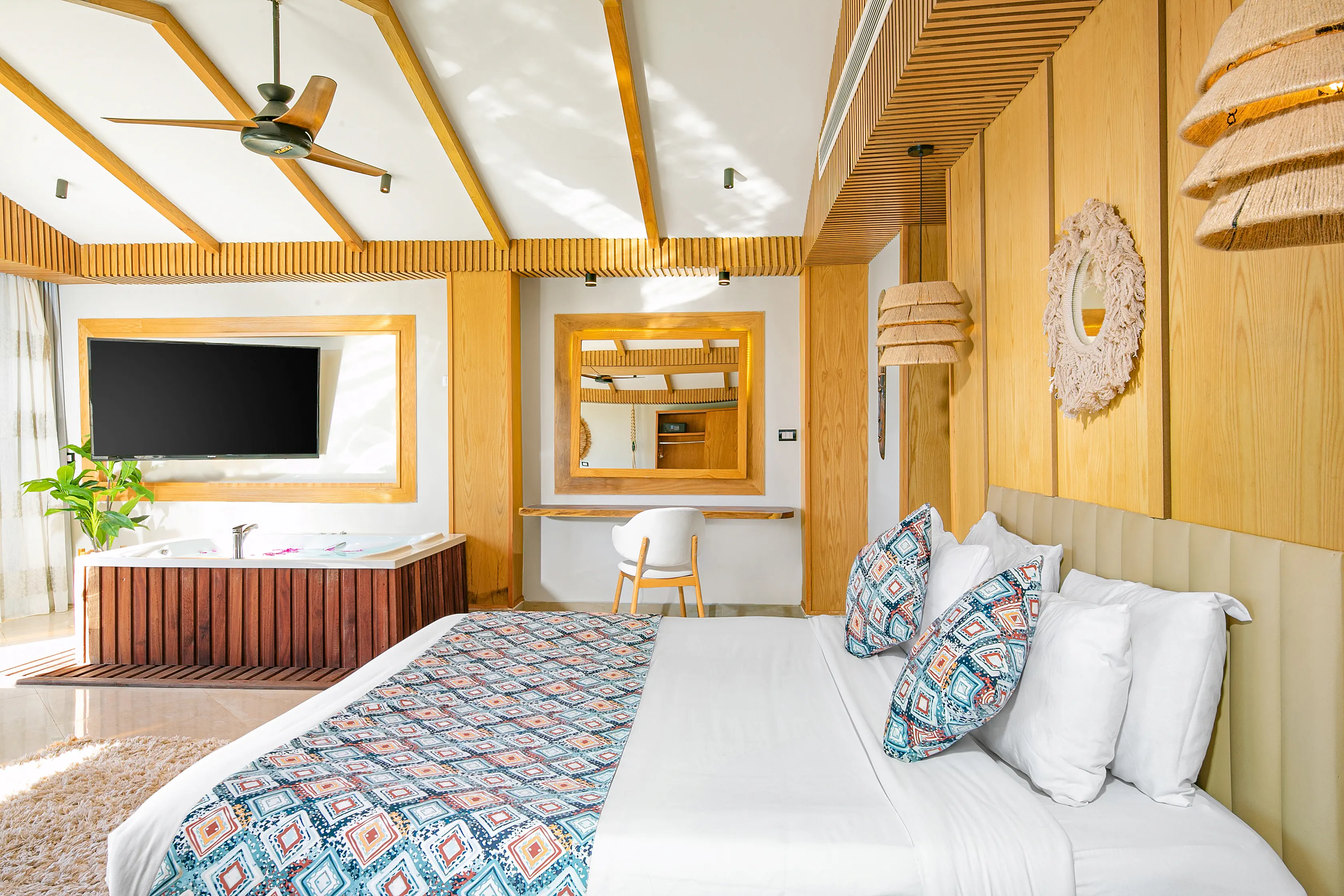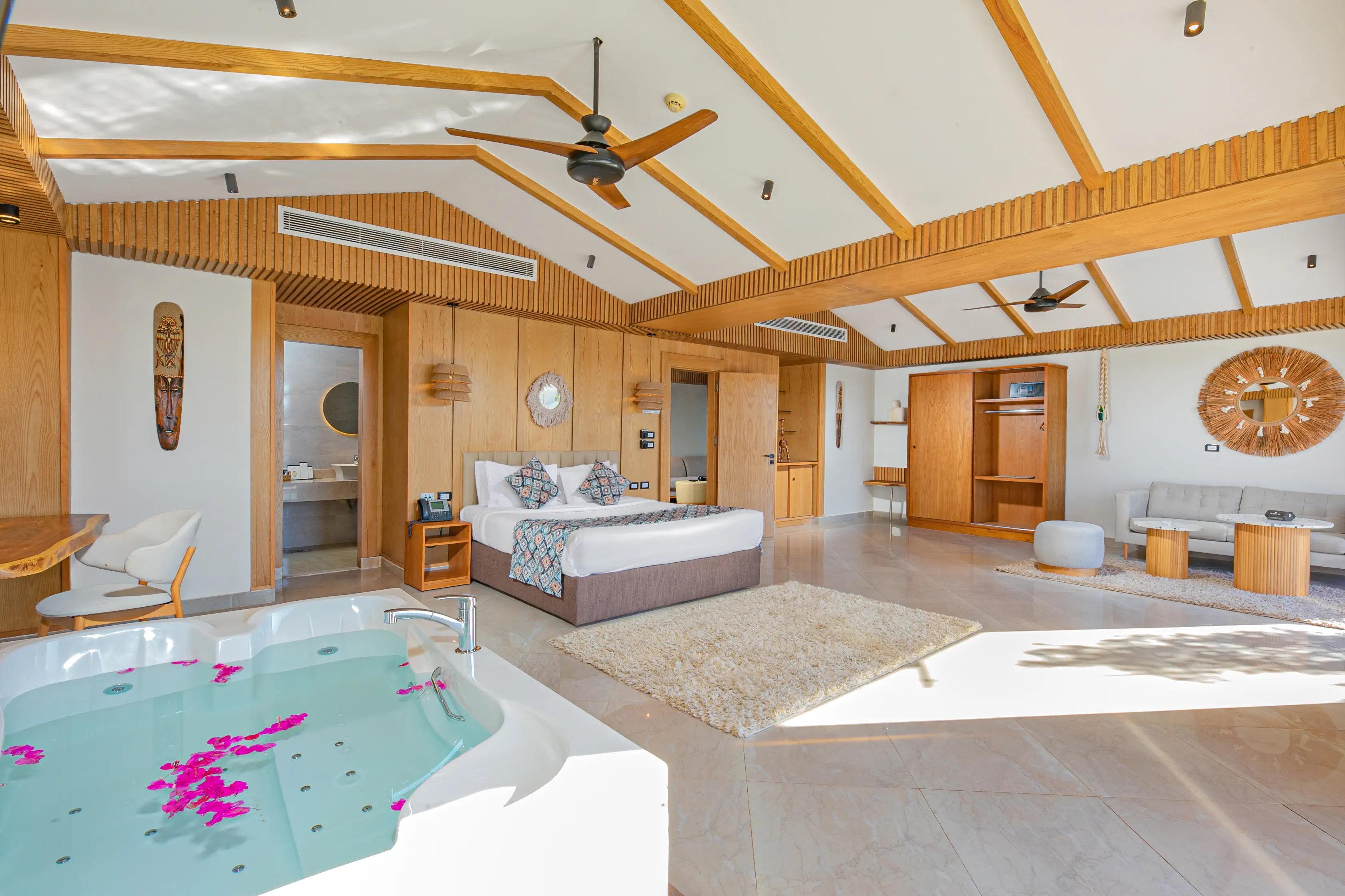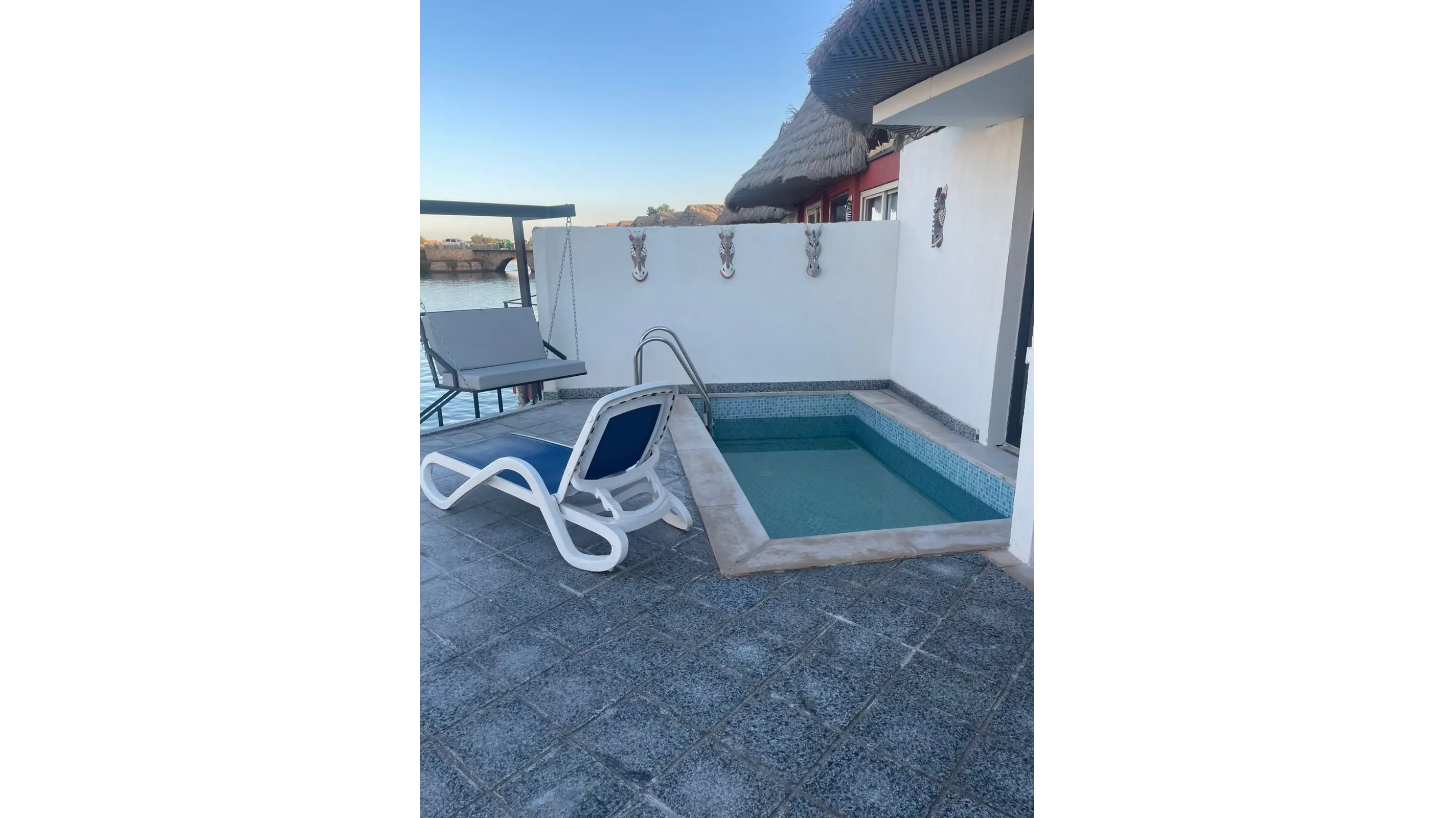 Dla max. 3 osób, Przestrzeń zewnętrzna: Taras, Kanały telewizji: Angielski, Telefon w pokoju, prysznic, Powierzchnia pokoju: ok. 45 - 47 m2, Dostawka: sofa, Rodzaj podłogi: płytki, Sprzątanie codziennie, 1 sypialnia, Maksymalna liczba osób dorosłych: 3, Maksymalna liczba dzieci: 1, Widok na lagunę, Bezpośredni dostęp do plaży, Prywatny basen, Liczba łazienek: 1, Liczba toalet: 1, Zestaw do parzenia kawy i herbaty, Klimatyzacja: Klimatyzacja indywidualna
