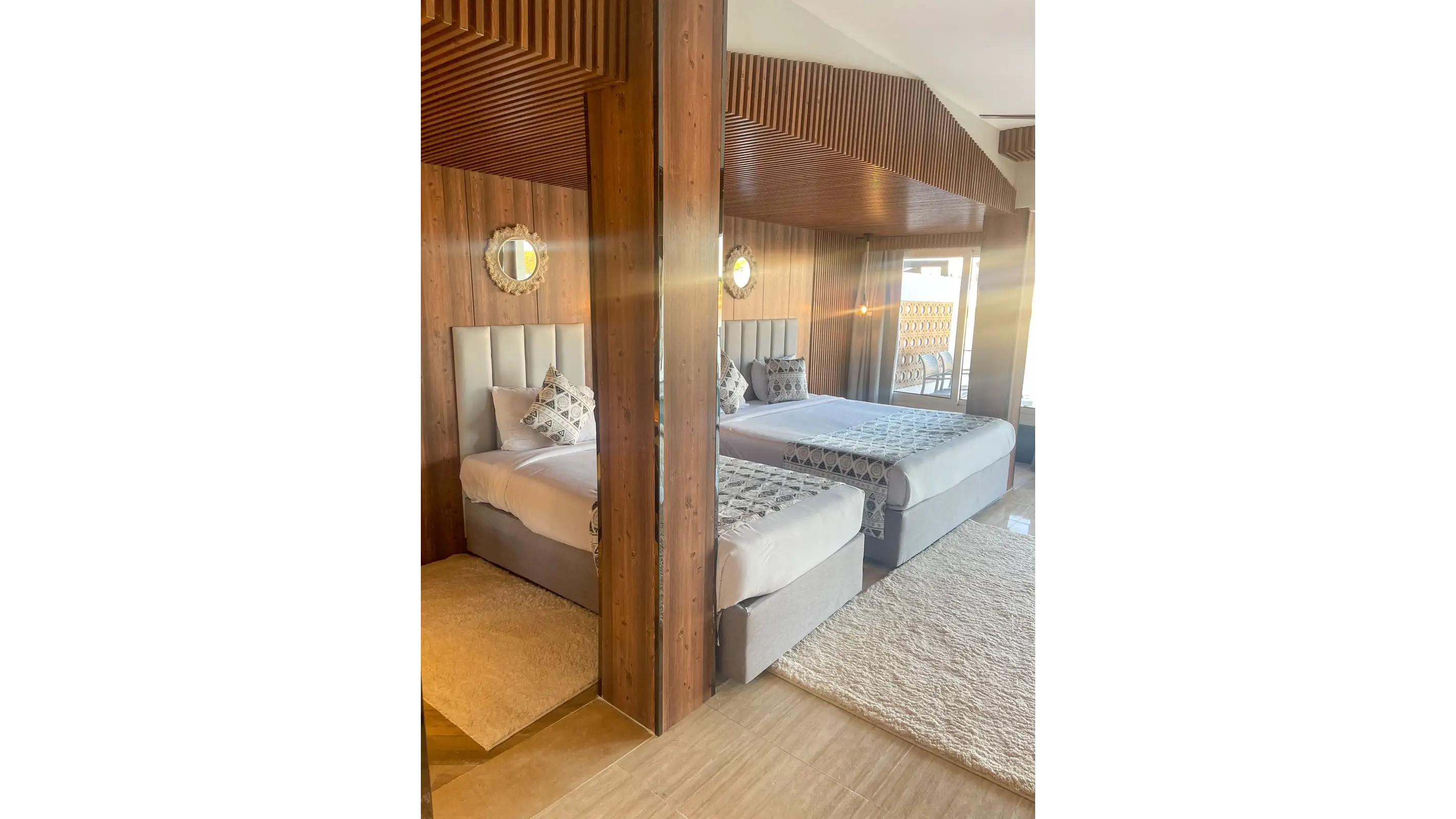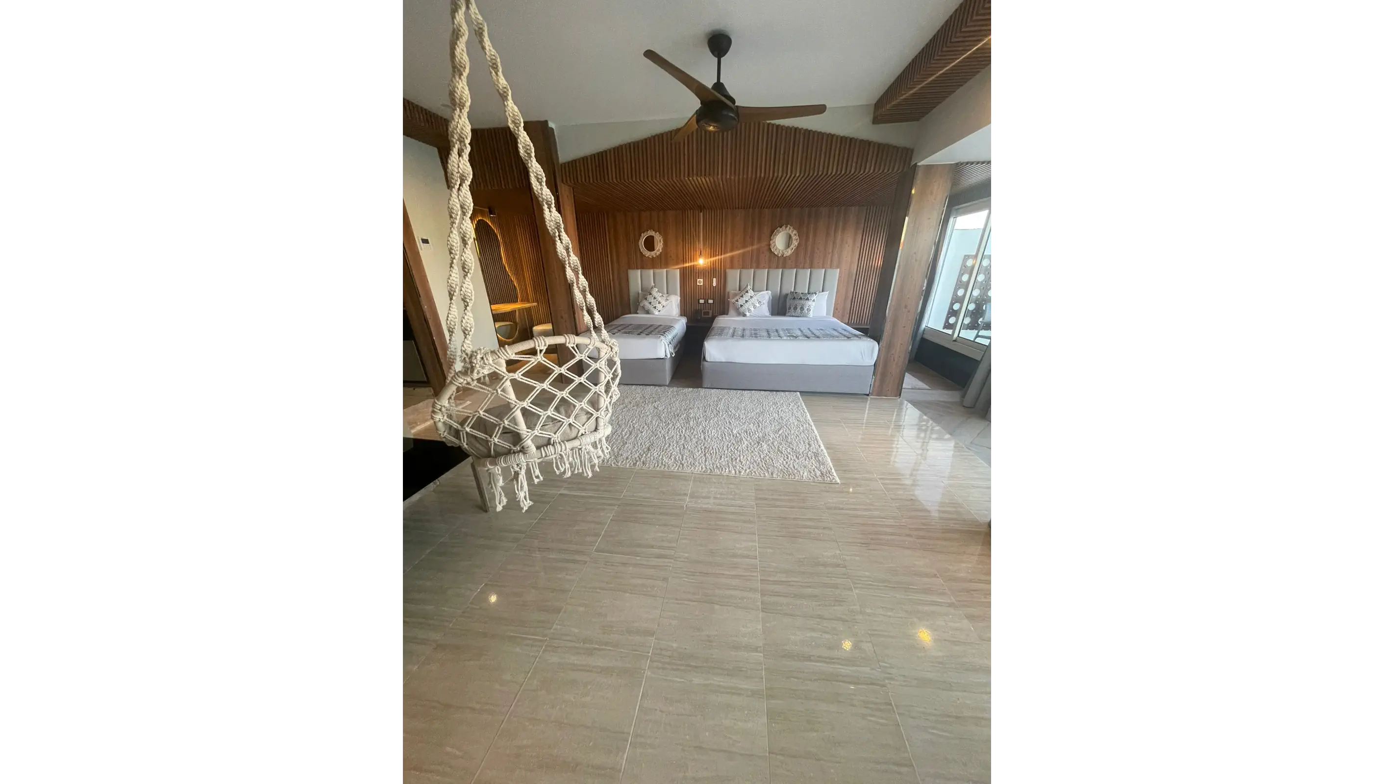 Dla max. 4 osób, Przestrzeń zewnętrzna: Taras, Kanały telewizji: Angielski, Telefon w pokoju, prysznic, Powierzchnia pokoju: ok. 55 - 58 m2, Rodzaj podłogi: płytki, Sprzątanie codziennie, 2 sypialnie, Drzwi łączące między pokojami, Maksymalna liczba osób dorosłych: 4, Maksymalna liczba dzieci: 2, Widok na lagunę, Bezpośredni dostęp do plaży, Liczba łazienek: 2, Liczba toalet: 2, Zestaw do parzenia kawy i herbaty, Klimatyzacja: Klimatyzacja indywidualna