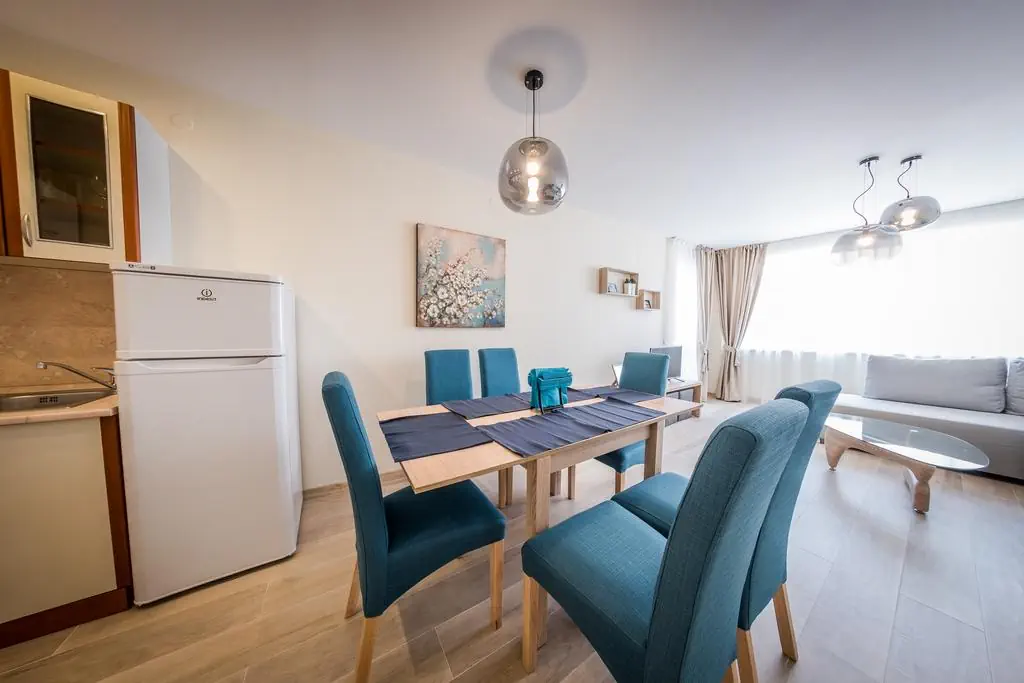 Dla max. 6 osób, Przestrzeń zewnętrzna: Balkon lub taras, wanna i prysznic , Powierzchnia pokoju: ok. 20 m2, Dostawka: sofa, Rodzaj podłogi: laminat, Sprzątanie codziennie, 2 sypialnie, Maksymalna liczba osób dorosłych: 4, Maksymalna liczba dzieci: 4, Widok niesprecyzowany , Liczba łazienek: 1, Liczba toalet: 1, Klimatyzacja: Klimatyzacja indywidualna