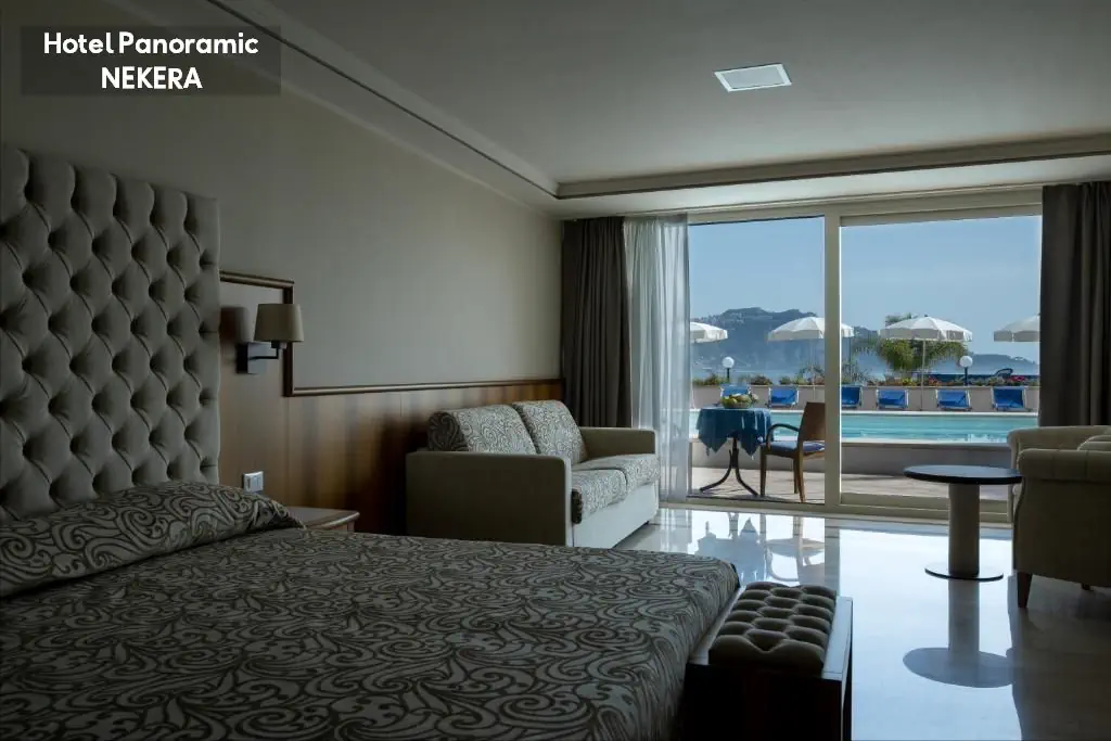 Pokój Standard: ok. 15 m2, mogący zakwaterować do dwóch osób, jedno łóżko podwójne lub dwa łóżka pojedyncze, klimatyzacja (od 15.06 do 15.09), TV, Wi-Fi, sejf, biurko, prywatna łazienka (prysznic, toaleta, bidet, umywalka, suszarka do włosów). Pokój dwuosobowy z widokiem na morze: ok. 15 m2, mogący zakwaterować do dwóch osób, widok na morze; poza tym wyposażony jak pokój Standard.