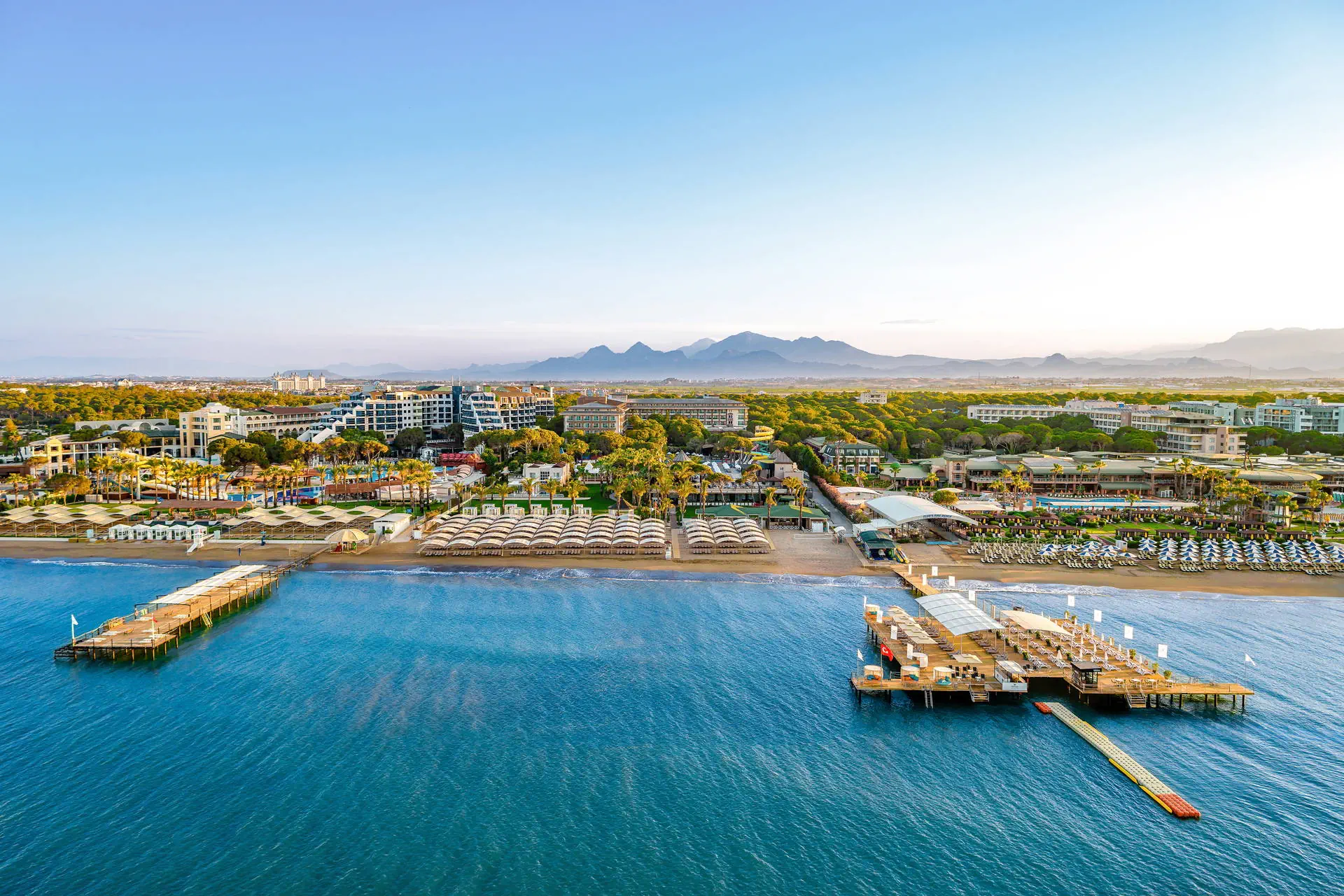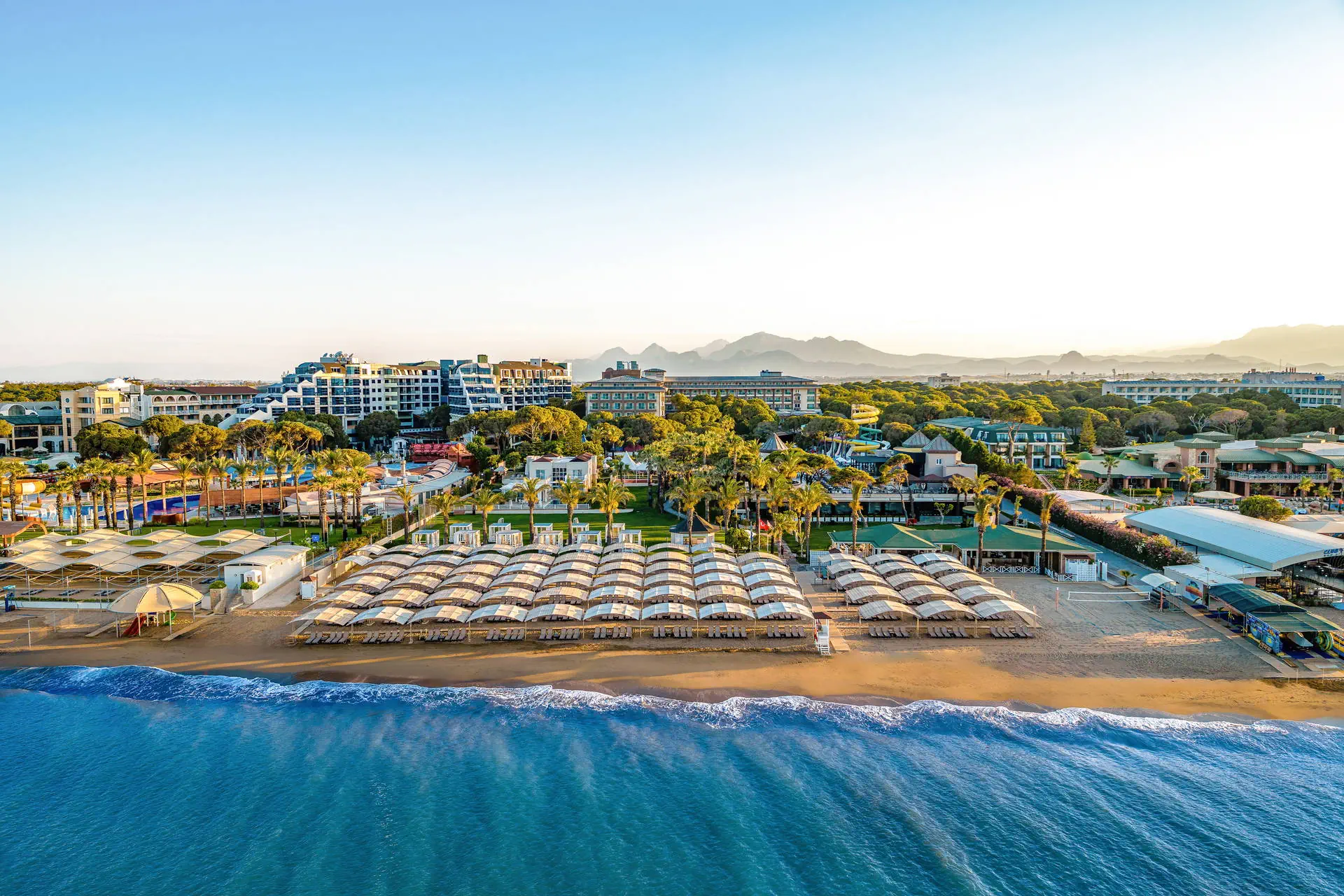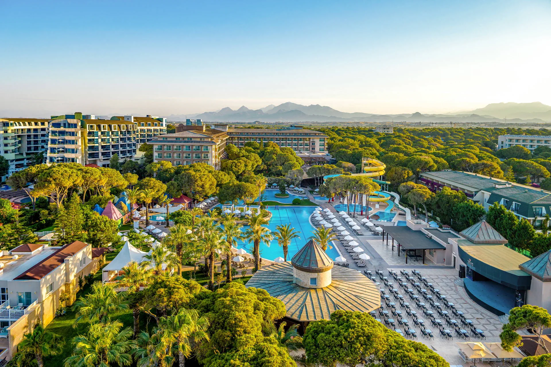 Do dyspozycji gości Recepcja 24h/7, przestronne i eleganckie lobby hotelowe. Aquapark, cztery baseny, brodzik dla dzieci (wszystkie ze słodką wodą), jacuzzi na zewnątrz, tarasy słoneczne przy basenach z bezpłatnymi leżakami i parasolami, ręczniki plażowe (bezpłatnie). Atrakcje dla dzieci: plac zabaw dla dzieci, mini klub (dla dzieci 4-12 lat i 13-17 lat). Atrakcje dla dorosłych: amfiteatr, SPA, sauna (bezpłatnie), masaże (płatne), łaźnia turecka (bezpłatnie), siłownia (bezpłatnie). Restauracje: główna ze stolikami wewnątrz i na zewnątrz; restauracje a’ la carte czynne od 1 maja: włoska, z owocami morza, meksykańska (do wyboru jedna raz na pobyt, wymagana rezerwacja), mięsna z owocami morza (płatna dodatkowo, wymagana rezerwacja); restauracje a’la carte czynne od 1 kwietnia: turecka, dalekowschodnia (do wyboru jedna raz na pobyt, wymagana rezerwacja). Bary: lobby bar, pool bar, beach bar, Martini Lounge Bar, Pasha Hookah Lounge, disco bar, od 15 maja: dock bar, PA&CO Coffee House. Pozostałe informacje: przechowalnia bagażu, taras słoneczny ze stolikami, fryzjer (płatny), mini market, stanowisko internetowe (płatne), Internet WiFi w lobby (bezpłatnie), butik, usługi medyczne, pralnia, sklep z biżuterią (płatny), parking. Internet W lobby oraz w pokojach Internet Wi-Fi – bezpłatny. Kategoria lokalna ***** Naszym zdaniem Ekskluzywny hotel z rozbudowaną infrastrukturą sportową i animacyjną oferuje wyjątkowy wypoczynek dla wymagających Gości. Rozległy teren sprzyja relaksowi i aktywnemu spędzaniu czasu. Dzięki różnorodnym udogodnieniom, obiekt jest idealnym miejscem zarówno dla rodzin z dziećmi, jak i par poszukujących komfortu i rozrywki. Plaża Plaża bezpośrednio przy hotelu. Szeroka, piaszczysta plaża z drobnym żwirkiem. Leżaki, parasole i ręczniki dostępne bezpłatnie, pawilony płatne dodatkowo. Położenie Hotel położony jest około 35 km od lotniska w Antalyi. Obiekt znajduje się około 4 km od centrum Belek oraz około 40 km od centrum Antalyi. Znajduje się bezpośrednio przy szerokiej piaszczysto-żwirkowej plażyBudynek składa się z 5-piętrowego budynku głównego oraz willi położonych w śródziemnomorskim ogrodzie. Program sportowy i animacyjny Dla każdego: siłownia, fit club, sauna, łaźnia turecka, jacuzzi, koszykówka, siatkówka, siatkówka plażowa, mini boisko do piłki nożnej, 3 korty tenisowe, rakiety i piłki do tenisa, tenis stołowy, rzutki, szachy, aerobik, animacje, wieczór turecki, muzyka na żywo. Za dodatkową opłatą: oświetlenie kortów tenisowych, lekcje tenisa, bilard, rowery wodne, kajaki, masaż, kręgle, minigolf (4 km od hotelu), jazda konna (4 km od hotelu), narty wodne, skutery wodne, spadochron, banan, lekcje pływania, golfa, trener personalny. Pozostałe informacje: surfing (wymagana licencja). Wyżywienie Rodzaje wyżywienia i posiłki: High Class All Inclusive: Śniadania: 07:00 - 10:30. Lunch: 12:30 - 14:30. Kolacja: 18:30 - 21:00. Nocne przekąski: 23:00 - 24:00. Przekąski w ciągu dnia. Lokalne napoje alkoholowe i bezalkoholowe.Mini bar: napoje bezalkoholowe i piwo uzupełniane codziennie. Restauracje: Możliwość skorzystania z wybranych restauracji raz na pobyt, wymagana rezerwacja. Restauracja mięsna z owocami morza – płatna dodatkowo. Dodatkowe usługi: Room service (płatne dodatkowo). Pozostałe informacje: All Inclusive nie zawiera: napojów importowanych, szampana francuskiego, wina i lodów. W restauracjach dostępne foteliki dla dzieci.
