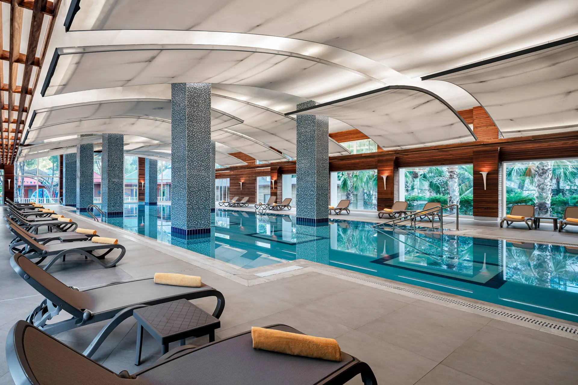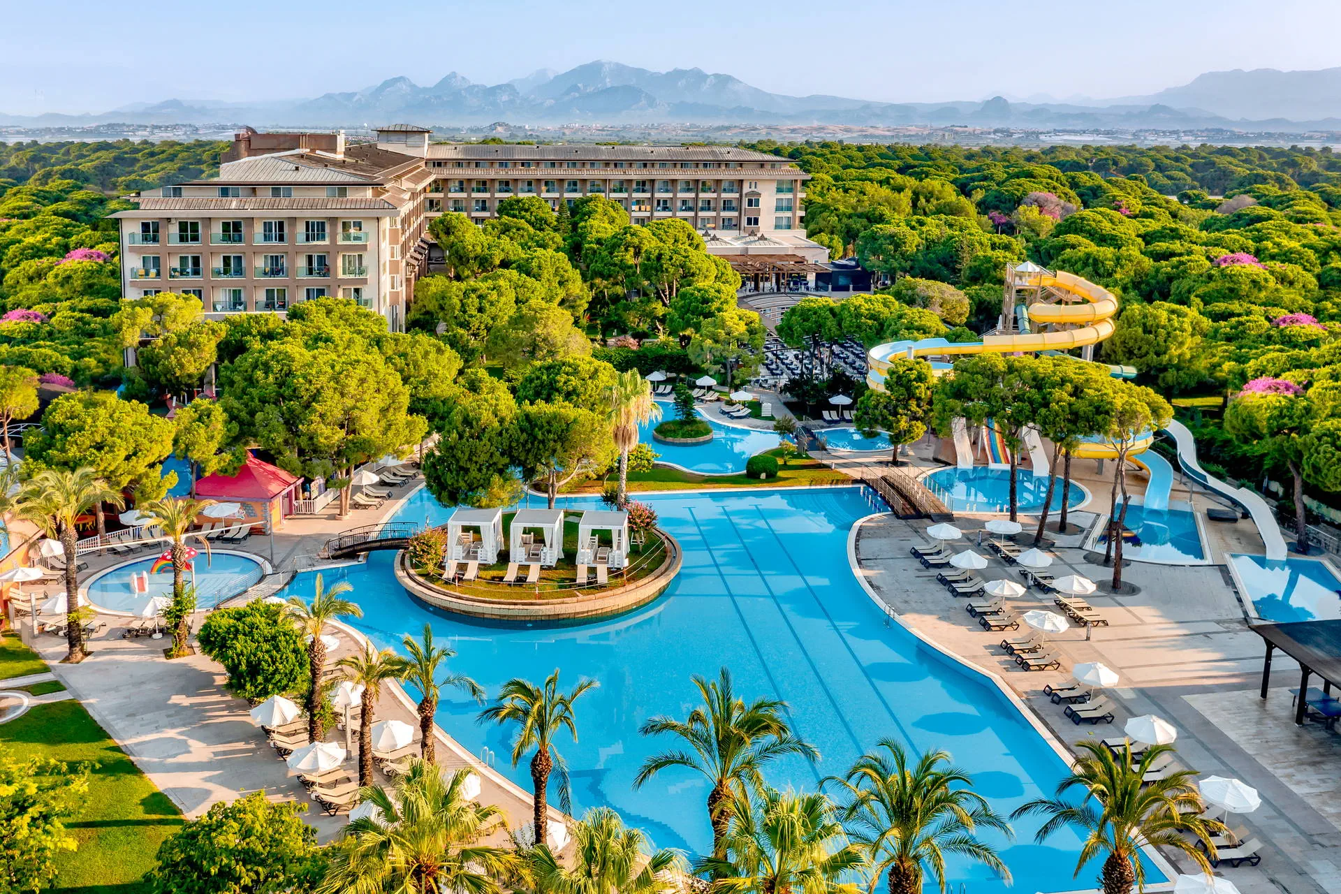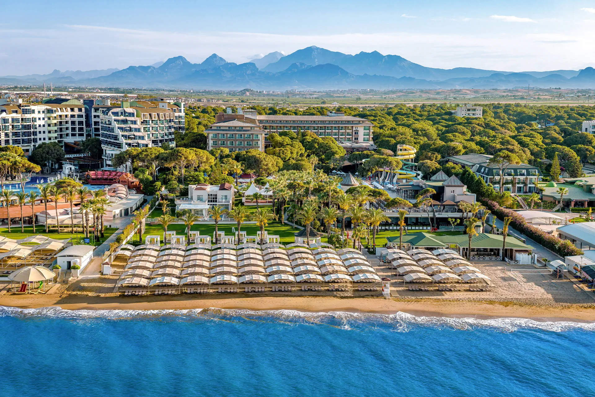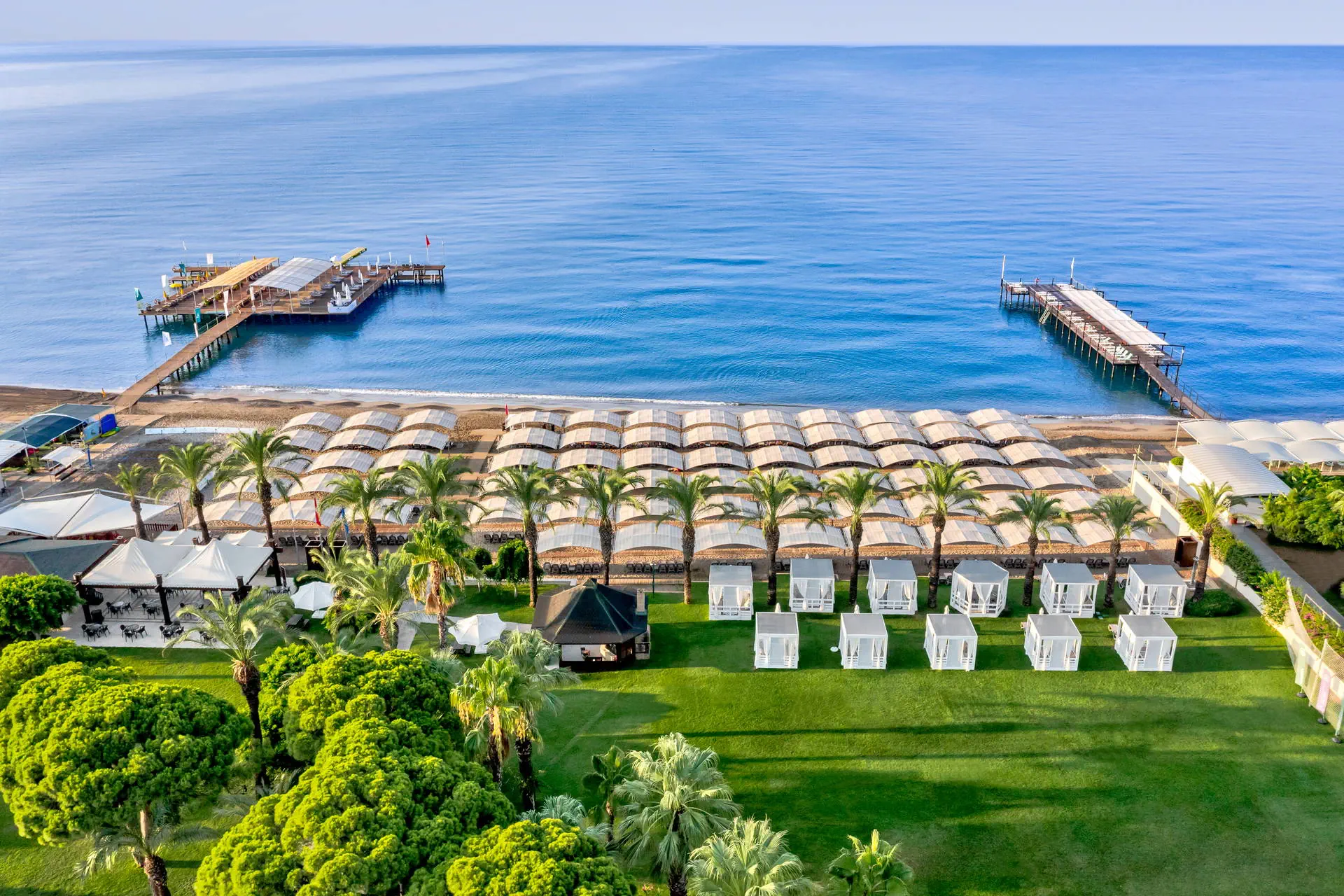 Do dyspozycji gości Recepcja 24h/7, przestronne i eleganckie lobby hotelowe. Aquapark, cztery baseny, brodzik dla dzieci (wszystkie ze słodką wodą), jacuzzi na zewnątrz, tarasy słoneczne przy basenach z bezpłatnymi leżakami i parasolami, ręczniki plażowe (bezpłatnie). Atrakcje dla dzieci: plac zabaw dla dzieci, mini klub (dla dzieci 4-12 lat i 13-17 lat). Atrakcje dla dorosłych: amfiteatr, SPA, sauna (bezpłatnie), masaże (płatne), łaźnia turecka (bezpłatnie), siłownia (bezpłatnie). Restauracje: główna ze stolikami wewnątrz i na zewnątrz; restauracje a’ la carte czynne od 1 maja: włoska, z owocami morza, meksykańska (do wyboru jedna raz na pobyt, wymagana rezerwacja), mięsna z owocami morza (płatna dodatkowo, wymagana rezerwacja); restauracje a’la carte czynne od 1 kwietnia: turecka, dalekowschodnia (do wyboru jedna raz na pobyt, wymagana rezerwacja). Bary: lobby bar, pool bar, beach bar, Martini Lounge Bar, Pasha Hookah Lounge, disco bar, od 15 maja: dock bar, PA&CO Coffee House. Pozostałe informacje: przechowalnia bagażu, taras słoneczny ze stolikami, fryzjer (płatny), mini market, stanowisko internetowe (płatne), Internet WiFi w lobby (bezpłatnie), butik, usługi medyczne, pralnia, sklep z biżuterią (płatny), parking. Internet W lobby oraz w pokojach Internet Wi-Fi – bezpłatny. Kategoria lokalna ***** Naszym zdaniem Ekskluzywny hotel z rozbudowaną infrastrukturą sportową i animacyjną oferuje wyjątkowy wypoczynek dla wymagających Gości. Rozległy teren sprzyja relaksowi i aktywnemu spędzaniu czasu. Dzięki różnorodnym udogodnieniom, obiekt jest idealnym miejscem zarówno dla rodzin z dziećmi, jak i par poszukujących komfortu i rozrywki. Plaża Plaża bezpośrednio przy hotelu. Szeroka, piaszczysta plaża z drobnym żwirkiem. Leżaki, parasole i ręczniki dostępne bezpłatnie, pawilony płatne dodatkowo. Położenie Hotel położony jest około 35 km od lotniska w Antalyi. Obiekt znajduje się około 4 km od centrum Belek oraz około 40 km od centrum Antalyi. Znajduje się bezpośrednio przy szerokiej piaszczysto-żwirkowej plażyBudynek składa się z 5-piętrowego budynku głównego oraz willi położonych w śródziemnomorskim ogrodzie. Program sportowy i animacyjny Dla każdego: siłownia, fit club, sauna, łaźnia turecka, jacuzzi, koszykówka, siatkówka, siatkówka plażowa, mini boisko do piłki nożnej, 3 korty tenisowe, rakiety i piłki do tenisa, tenis stołowy, rzutki, szachy, aerobik, animacje, wieczór turecki, muzyka na żywo. Za dodatkową opłatą: oświetlenie kortów tenisowych, lekcje tenisa, bilard, rowery wodne, kajaki, masaż, kręgle, minigolf (4 km od hotelu), jazda konna (4 km od hotelu), narty wodne, skutery wodne, spadochron, banan, lekcje pływania, golfa, trener personalny. Pozostałe informacje: surfing (wymagana licencja). Wyżywienie Rodzaje wyżywienia i posiłki: High Class All Inclusive: Śniadania: 07:00 - 10:30. Lunch: 12:30 - 14:30. Kolacja: 18:30 - 21:00. Nocne przekąski: 23:00 - 24:00. Przekąski w ciągu dnia. Lokalne napoje alkoholowe i bezalkoholowe.Mini bar: napoje bezalkoholowe i piwo uzupełniane codziennie. Restauracje: Możliwość skorzystania z wybranych restauracji raz na pobyt, wymagana rezerwacja. Restauracja mięsna z owocami morza – płatna dodatkowo. Dodatkowe usługi: Room service (płatne dodatkowo). Pozostałe informacje: All Inclusive nie zawiera: napojów importowanych, szampana francuskiego, wina i lodów. W restauracjach dostępne foteliki dla dzieci.