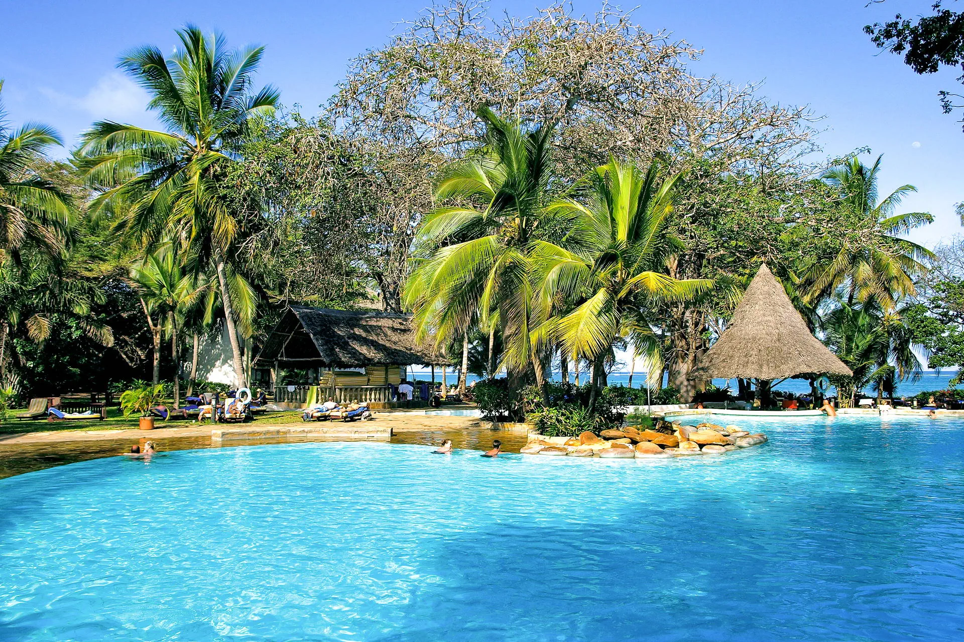 Położenie Do lotniska w Mombasie jest ok. 47 km. Hotel położony jest na południowym wybrzeżu Mombasy, otoczony zadbanym ogrodem z pięknymi palmami i zjawiskowymi, wiekowymi baobabami, z których największy ma ponad 500 lat. Obiekt zbudowany jest w lokalnym stylu swahili, składa się z kilku dwupiętrowych budynków rozmieszczonych na terenie ogrodu i przy plaży. Plaża Plaża Diani bezpośrednio przy hotelu. Piaszczysta, biała, uznawana za najpiękniejszą w okolicy. Bezpłatne leżaki wśród palm na terenie ogrodu przy plaży. Do dyspozycji gości Recepcja 24h/7, przestronne lobby. Basen zewnętrzny, brodzik dla dzieci, taras słoneczny z bezpłatnymi ręcznikami i leżakami. Restauracje: 2 restauracje: główna Baobab ze stolikami wewnątrz i na tarasie (dania kuchni lokalnej oraz międzynarodowej) oraz restauracja Bistro przy basenie serwująca śniadania, lunche, dania z grilla i przekąski. 2 bary: przy basenie (10:00-18:00) i przy plaży (18:00-24:00).Pozostałe informacje: kantor, sklep z pamiątkami, fryzjer, salon piękności (płatne dodatkowo). Wyżywienie Rodzaje wyżywienia i posiłki: All Inclusive: śniadania, lunche oraz obiadokolacje serwowane w formie bufetu w restauracji głównej. Śniadania: 07:30 - 10:00. Lunche: 12:30 - 14:30. Obiadokolacje: 19:30 - 21:30.Podwieczorek: 16:00 - 17:00. Bary: Lokalne napoje bezalkoholowe i alkoholowe dostępne w godzinach otwarcia barów: 10:00 - 24:00. Dodatkowe usługi: Raz w tygodniu dania z grilla z muzyką na żywo.Za dodatkową opłatą: dania z karty oraz importowane napoje alkoholowe. Program sportowy i animacyjny Dla każdego: Hotel prowadzi dzienny i wieczorny program animacyjny: zajęcia sportowe, siatkówka plażowa, fitness, zumba, badminton, gry i zabawy w wodzie. 2 korty tenisowe o twardej nawierzchni (brak oświetlenia, sprzęt w cenie), dyskoteka 6 razy w tyg., tenis stołowy, rzutki i bilard. Dla dzieci: plac zabaw dla dzieci. Za dodatkową opłatą: siłownia, sporty wodne, nurkowanie, rejsy łodzią ze szklanym dnem, łowienie ryb. Internet Bezpłatny Internet Wi-Fi w lobby i sali telewizyjnej. Kategoria lokalna ***+ Naszym zdaniem Hotel położony przy plaży Diani z drobnym, białym piaskiem oferuje doskonałe warunki do relaksu. Przestronne pokoje zapewniają komfort, a ogród tworzy spokojną atmosferę. Goście mogą korzystać z różnorodnych animacji oraz znakomitej kuchni, co czyni pobyt wyjątkowym. Dzięki atrakcyjnej cenie, hotel jest świetnym wyborem dla par i rodzin z dziećmi, szukających wypoczynku w pięknym otoczeniu. Strona www www.rexresorts.com