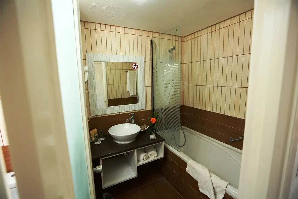 Dla max. 3 osób, Przestrzeń zewnętrzna: Balkon, Kanały telewizji: Angielski, Telefon w pokoju, wanna i prysznic , Powierzchnia pokoju: ok. 32 m2, Dostawka: łóżko standardowe, Rodzaj podłogi: płytki, Sprzątanie codziennie, 1 sypialnia, 0,1,2, Maksymalna liczba osób dorosłych: 1, Maksymalna liczba dzieci: 2, Widok na ogród, Liczba łazienek: 1, Liczba toalet: 1, Klimatyzacja: Klimatyzacja centralna, Działa w godzinach: 00:00-00:00Lipiec, Sierpień, Wrzesień